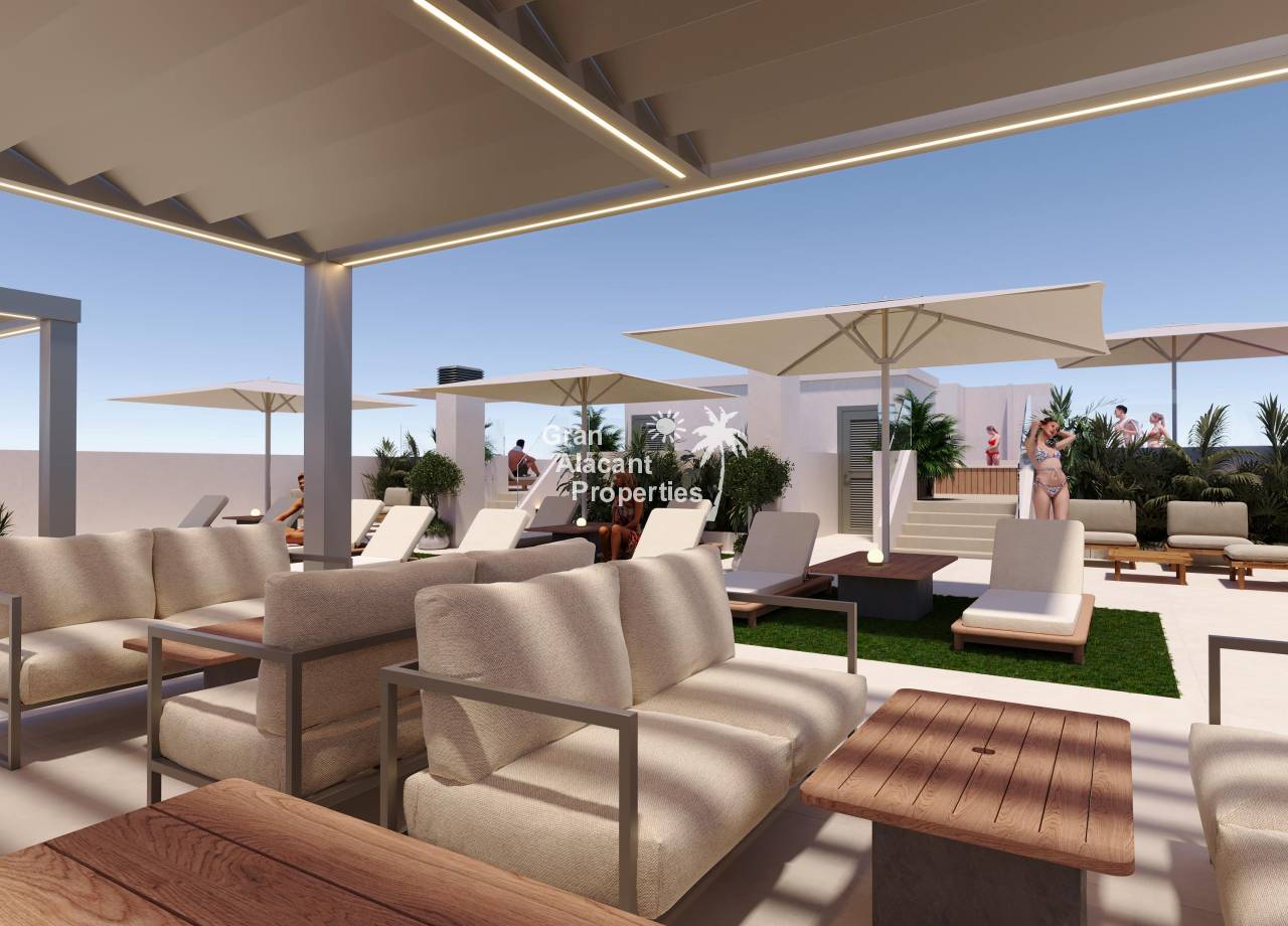 El entorno exterior de este residencial en San Miguel de Salinas está diseñado para complementar la belleza natural de la zona. Los residentes pueden disfrutar de amplias terrazas, perfectas para relajarse al aire libre y disfrutar del clima mediterráneo. Las áreas ajardinadas ofrecen un espacio verde donde se puede pasear o simplemente disfrutar de la tranquilidad del entorno. Además, la comunidad cuenta con un solárium comunitario, ideal para tomar el sol y disfrutar de las vistas panorámicas del área circundante. La ubicación estratégica de este residencial permite a los residentes disfrutar de la serenidad de la naturaleza sin renunciar a las comodidades modernas.