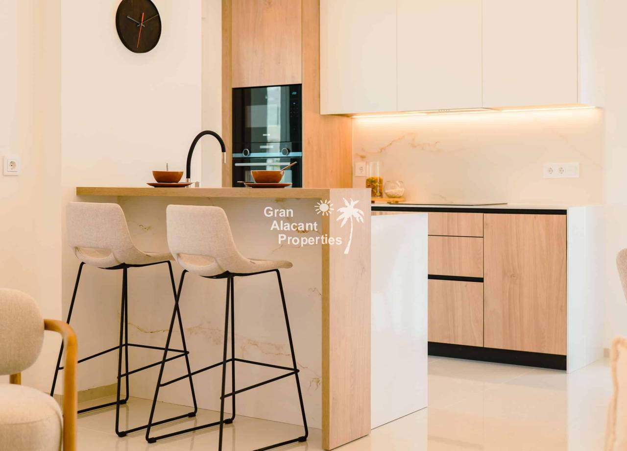 El interior de los bungalows está diseñado con atención al detalle, incorporando características modernas y prácticas. Los suelos de gres porcelánico aportan un acabado elegante y duradero, mientras que las persianas eléctricas y los electrodomésticos integrados facilitan la vida diaria. Los armarios empotrados ofrecen un almacenamiento eficiente, y el jacuzzi proporciona un toque de lujo y relajación. Con una distribución que incluye dos dormitorios y dos baños, cada espacio está optimizado para el confort y la privacidad.