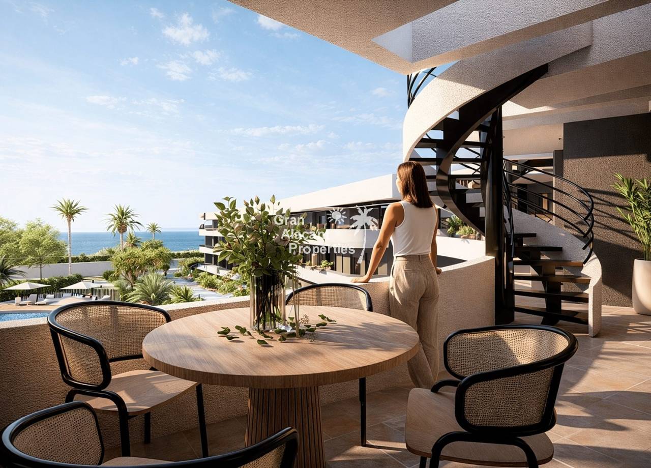 Los exteriores de estas viviendas están pensados para maximizar el disfrute del entorno natural. Cada propiedad cuenta con una terraza privada, ideal para relajarse al aire libre y disfrutar de las vistas al mar. Además, los áticos disponen de un solárium, proporcionando un espacio adicional para tomar el sol o celebrar reuniones al aire libre. La comunidad también ofrece zonas ajardinadas, perfectas para pasear y disfrutar de la naturaleza sin salir de casa. La proximidad al mar, a solo 700 metros, permite disfrutar de actividades acuáticas y de la playa en cualquier momento.
