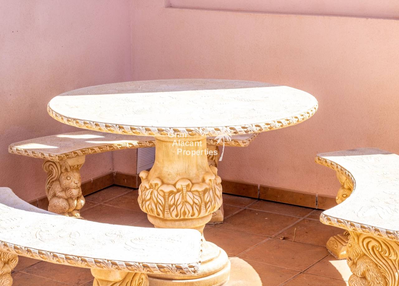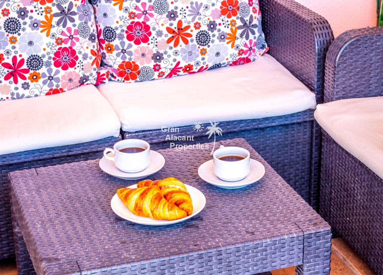 Situado en la Costa Blanca, Gran Alacant es una animada comunidad costera con supermercados, bancos, tiendas, club de bolos, parque canino, bares, mercadillo mensual, rutas de senderismo y ciclismo, cafeterías, restaurantes, biblioteca internacional, mercado semanal y mucho más: todo lo que necesitas y muchas opciones para disfrutar. El Aeropuerto de Alicante (ALC), con decenas de vuelos diarios al resto de España, Reino Unido y el norte de Europa, está a solo 10 minutos en coche. La ciudad de Alicante, con su conexión de alta velocidad (AVE, Ouigo, Iryo) a Madrid, puerto deportivo, casino, universidad, hospitales, museos, el impresionante Castillo de Santa Bárbara y una amplia oferta comercial y gastronómica, se encuentra a solo 14 kilómetros. También hay servicio regular de autobús a Alicante y al cercano puerto pesquero de Santa Pola, que cuenta con Club Náutico y es un referente para deportes acuáticos como vela, paddle surf, kitesurf, windsurf o buceo. Desde Santa Pola salen ferris diarios a la isla de Tabarca, la isla habitada más pequeña de España. La histórica ciudad de Elche, con su fascinante herencia romana y musulmana, también está muy cerca y merece una visita. Todo está a tu alcance, lo que convierte a Gran Alacant en un lugar excelente para vivir o disfrutar de vacaciones.