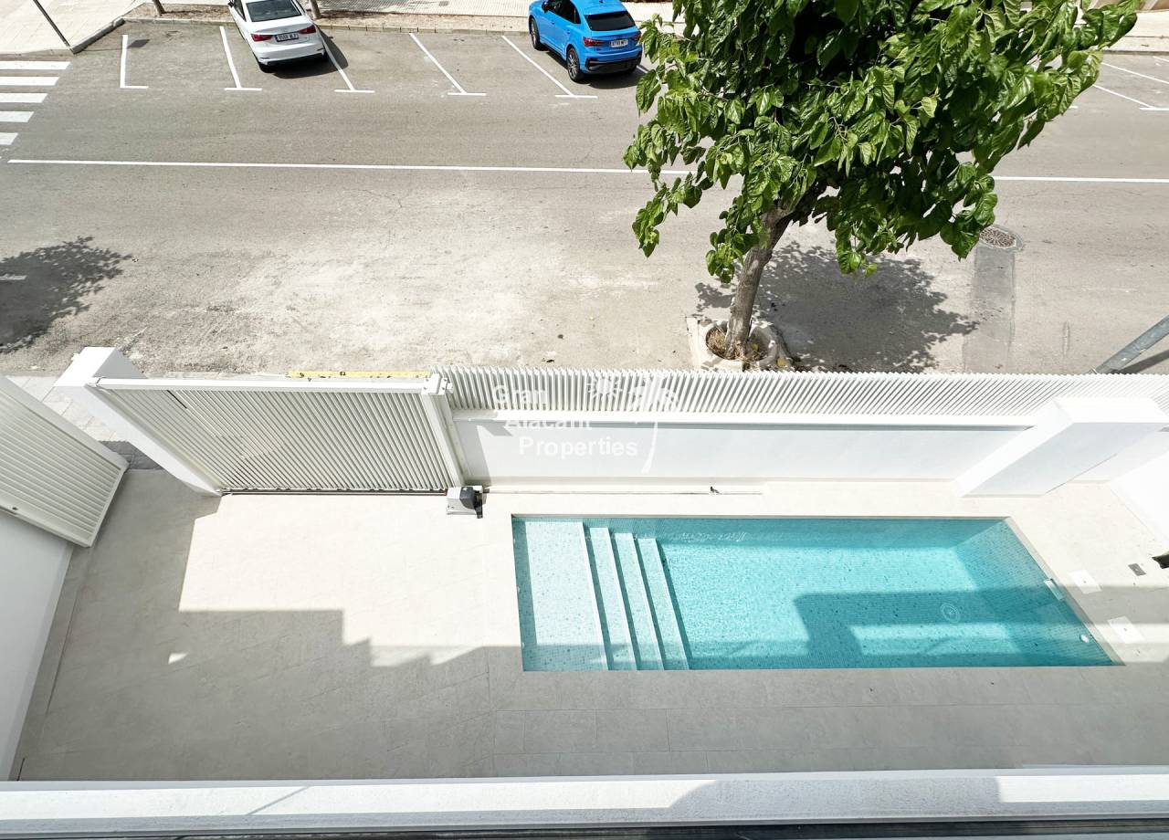 El exterior de estas viviendas independientes está cuidadosamente diseñado para ofrecer un espacio de relax y disfrute al aire libre. Cada propiedad cuenta con un jardín privado que proporciona un entorno verde y tranquilo. Además, las viviendas disponen de una terraza y un solárium, perfectos para disfrutar del clima mediterráneo y las vistas al entorno. La presencia de una pérgola añade un toque de elegancia y funcionalidad, permitiendo disfrutar del exterior en cualquier momento del día. La piscina privada es un elemento destacado, ofreciendo un espacio exclusivo para el ocio y el descanso.