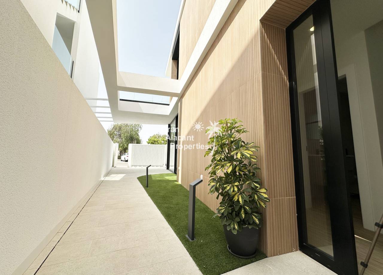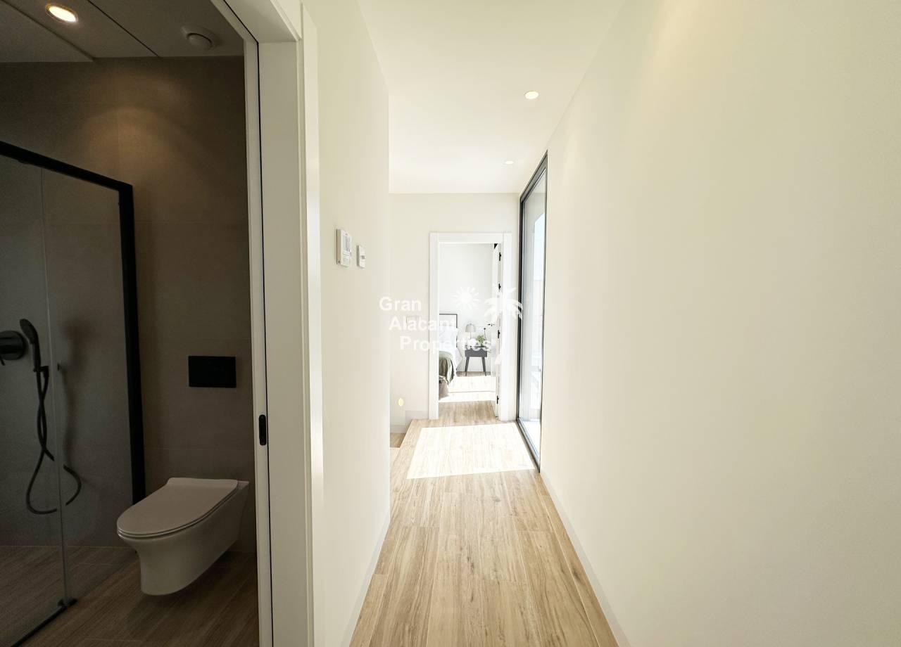 El interior de estas viviendas independientes está pensado para ofrecer el máximo confort y funcionalidad. Con tres dormitorios y tres baños, cada propiedad está equipada con aire acondicionado y electrodomésticos, asegurando un ambiente confortable durante todo el año. Los suelos de cerámica aportan un toque moderno y son fáciles de mantener. Las persianas eléctricas y el videoportero añaden comodidad y seguridad. Los armarios empotrados ofrecen un amplio espacio de almacenamiento, optimizando el uso del espacio interior.