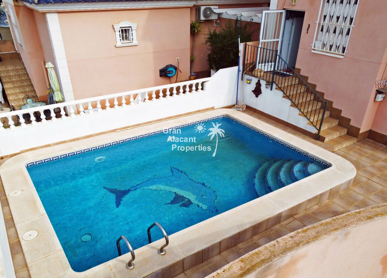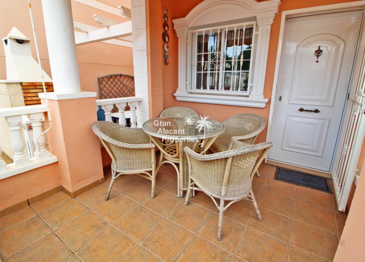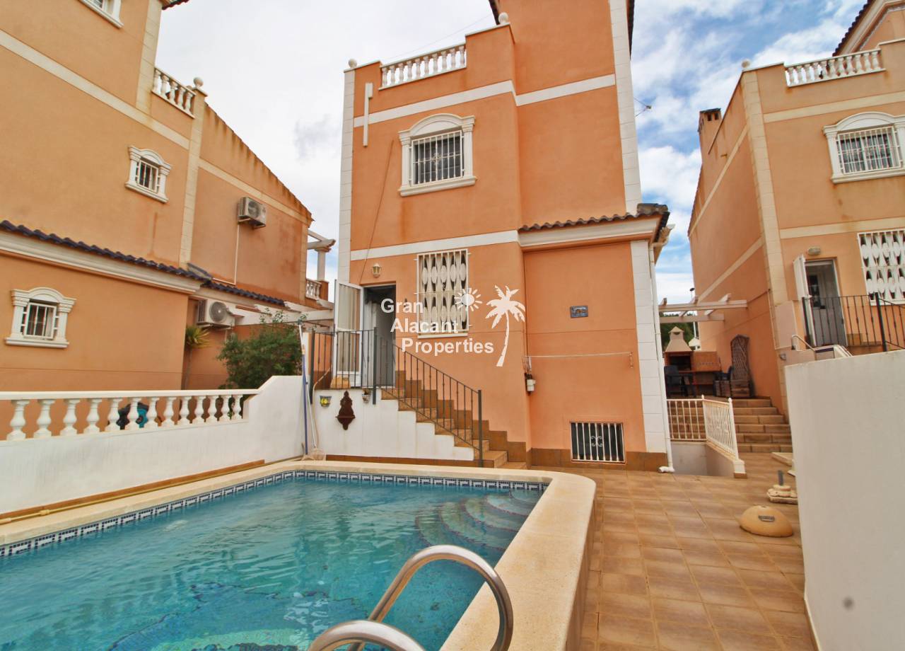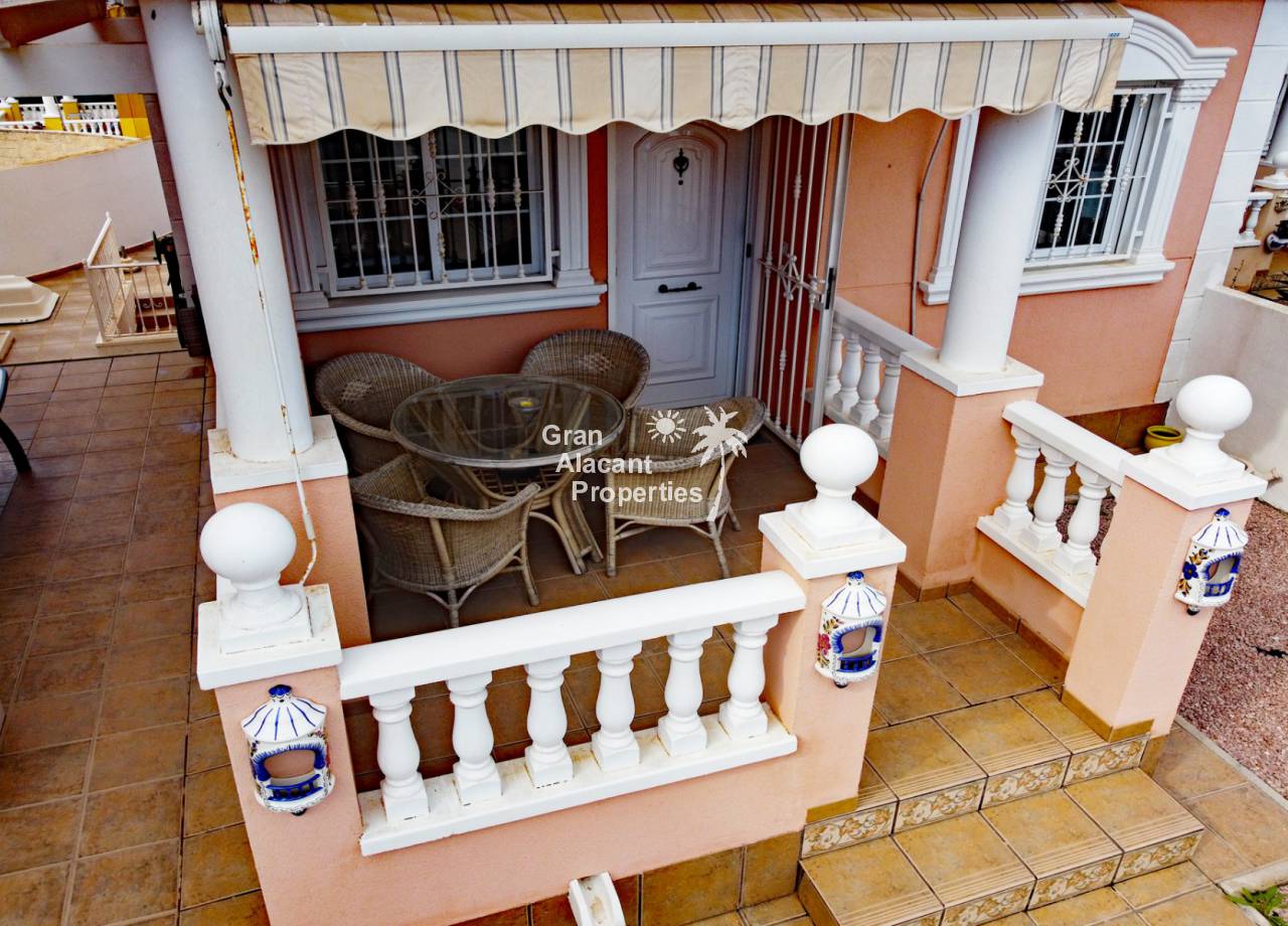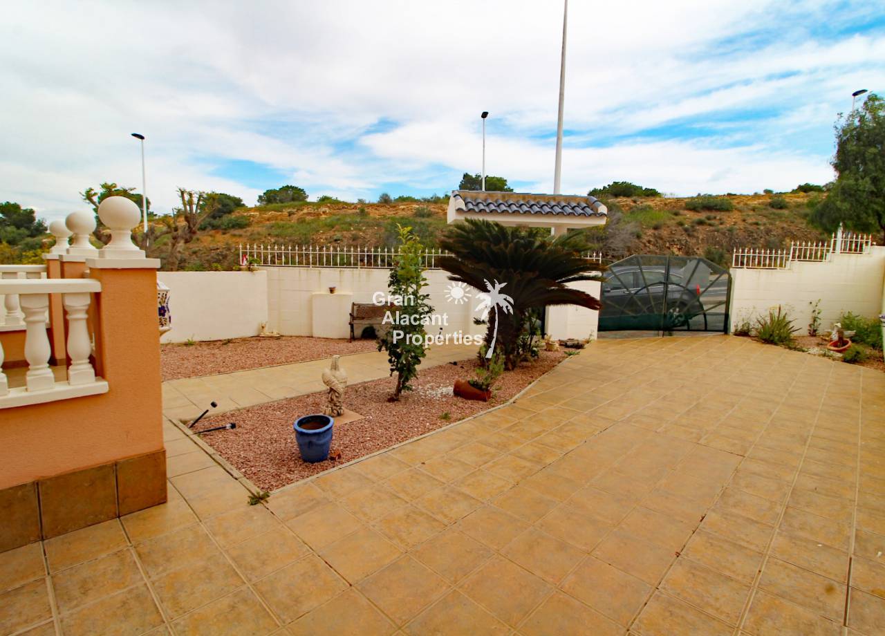 Villa independiente bien presentada ubicada en la codiciada comunidad de Puerto Marino en Gran Alacant en la soleada Costa Blanca de España. Esta villa cuenta con 3 habitaciones dobles con aire acondicionado y armarios empotrados (1 en suite), 2 baños y un aseo de invitados, salón comedor con aire acondicionado y chimenea abierta, un gran jardín de bajo mantenimiento (parte delantera, lateral y trasera de la casa). ) con una piscina privada en el lado sur de la casa, un porche delantero cubierto, un balcón en el dormitorio principal, un solárium soleado con excelentes vistas al campo y una cocina independiente con lavadero. Hay doble acristalamiento junto con sombrillas (toldos), un sótano para almacenamiento, rejas de seguridad, ventiladores de techo, aire acondicionado. La casa está construida con un buen estándar y viene con muchas características agradables. Se vende amueblado y equipado, por lo que está listo para entrar a vivir y empezar a vivir el sueño.