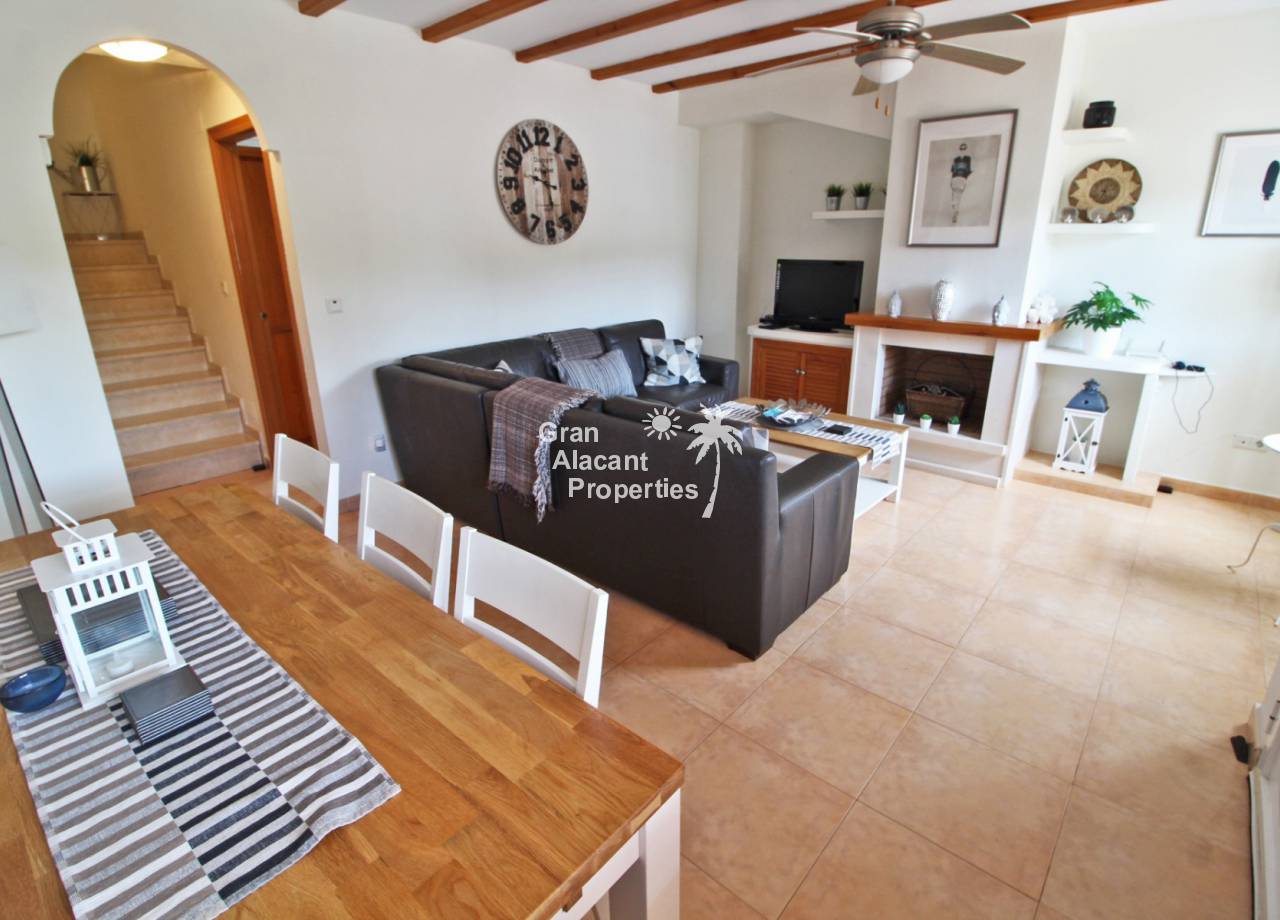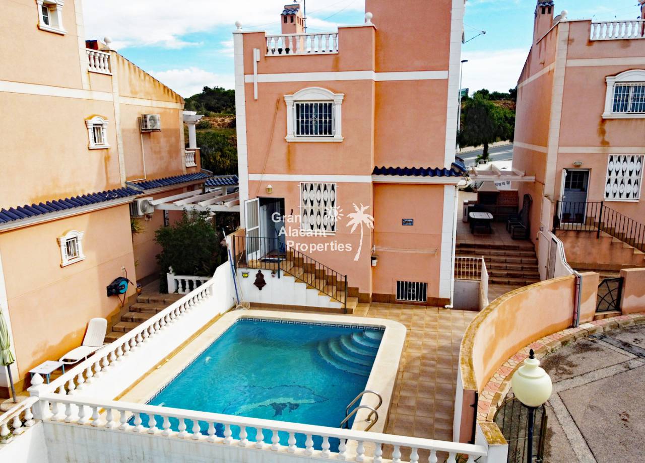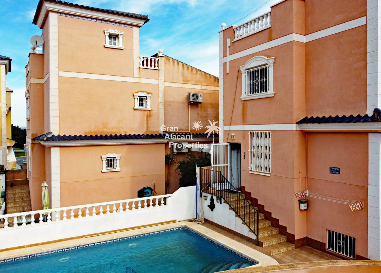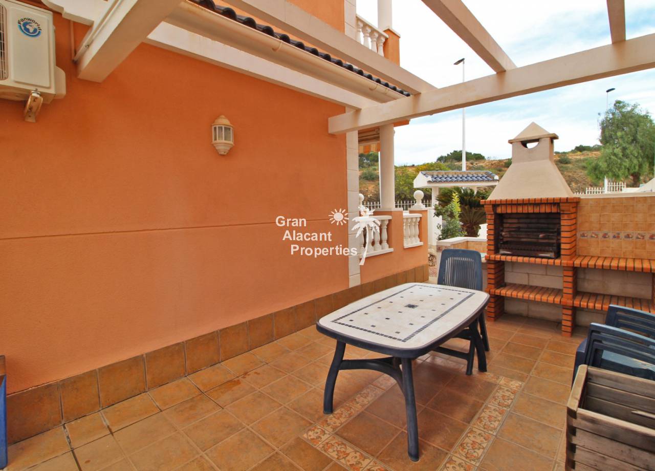 Villa independiente bien presentada ubicada en la codiciada comunidad de Puerto Marino en Gran Alacant en la soleada Costa Blanca de España. Esta villa cuenta con 3 habitaciones dobles con aire acondicionado y armarios empotrados (1 en suite), 2 baños y un aseo de invitados, salón comedor con aire acondicionado y chimenea abierta, un gran jardín de bajo mantenimiento (parte delantera, lateral y trasera de la casa). ) con una piscina privada en el lado sur de la casa, un porche delantero cubierto, un balcón en el dormitorio principal, un solárium soleado con excelentes vistas al campo y una cocina independiente con lavadero. Hay doble acristalamiento junto con sombrillas (toldos), un sótano para almacenamiento, rejas de seguridad, ventiladores de techo, aire acondicionado. La casa está construida con un buen estándar y viene con muchas características agradables. Se vende amueblado y equipado, por lo que está listo para entrar a vivir y empezar a vivir el sueño.