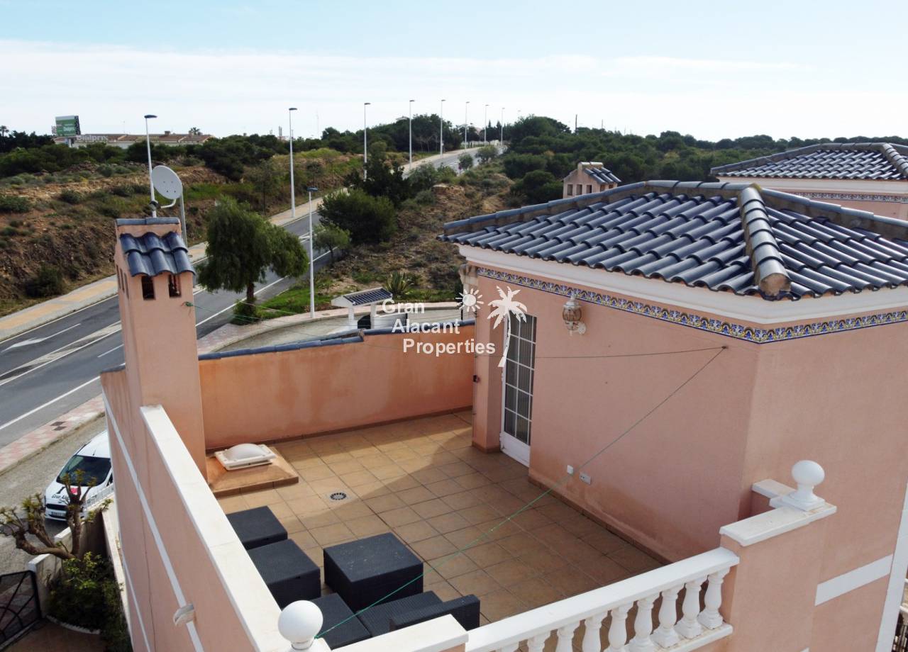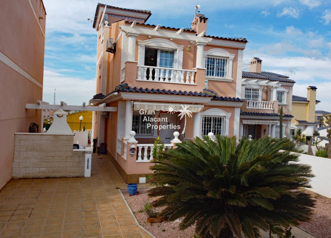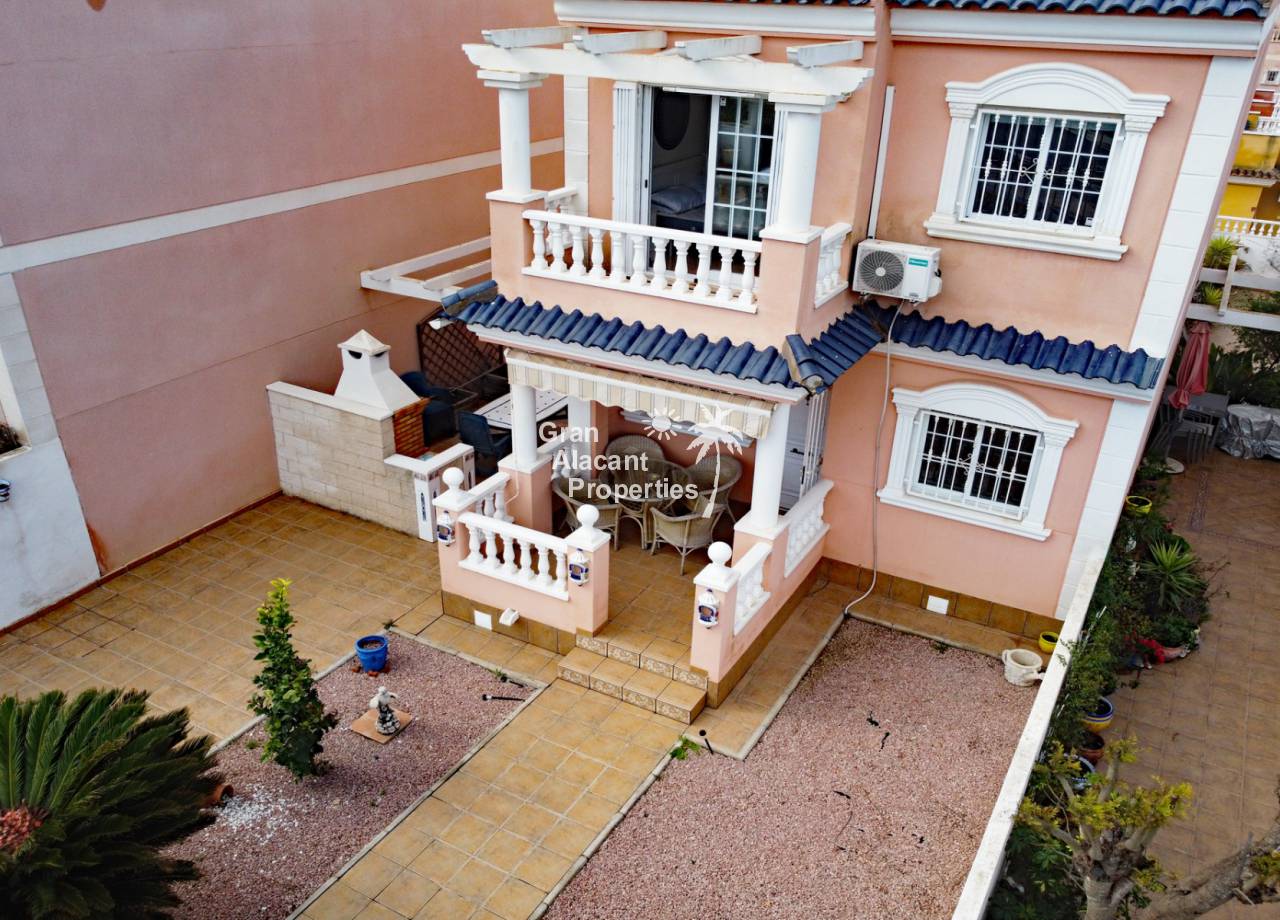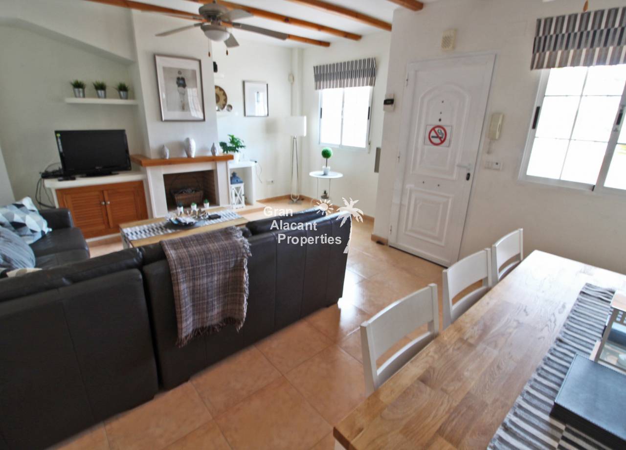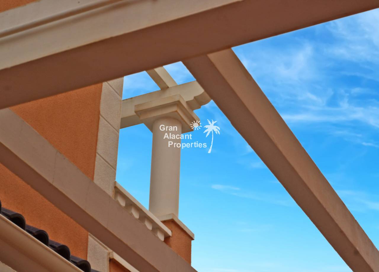 Villa independiente bien presentada ubicada en la codiciada comunidad de Puerto Marino en Gran Alacant en la soleada Costa Blanca de España. Esta villa cuenta con 3 habitaciones dobles con aire acondicionado y armarios empotrados (1 en suite), 2 baños y un aseo de invitados, salón comedor con aire acondicionado y chimenea abierta, un gran jardín de bajo mantenimiento (parte delantera, lateral y trasera de la casa). ) con una piscina privada en el lado sur de la casa, un porche delantero cubierto, un balcón en el dormitorio principal, un solárium soleado con excelentes vistas al campo y una cocina independiente con lavadero. Hay doble acristalamiento junto con sombrillas (toldos), un sótano para almacenamiento, rejas de seguridad, ventiladores de techo, aire acondicionado. La casa está construida con un buen estándar y viene con muchas características agradables. Se vende amueblado y equipado, por lo que está listo para entrar a vivir y empezar a vivir el sueño.