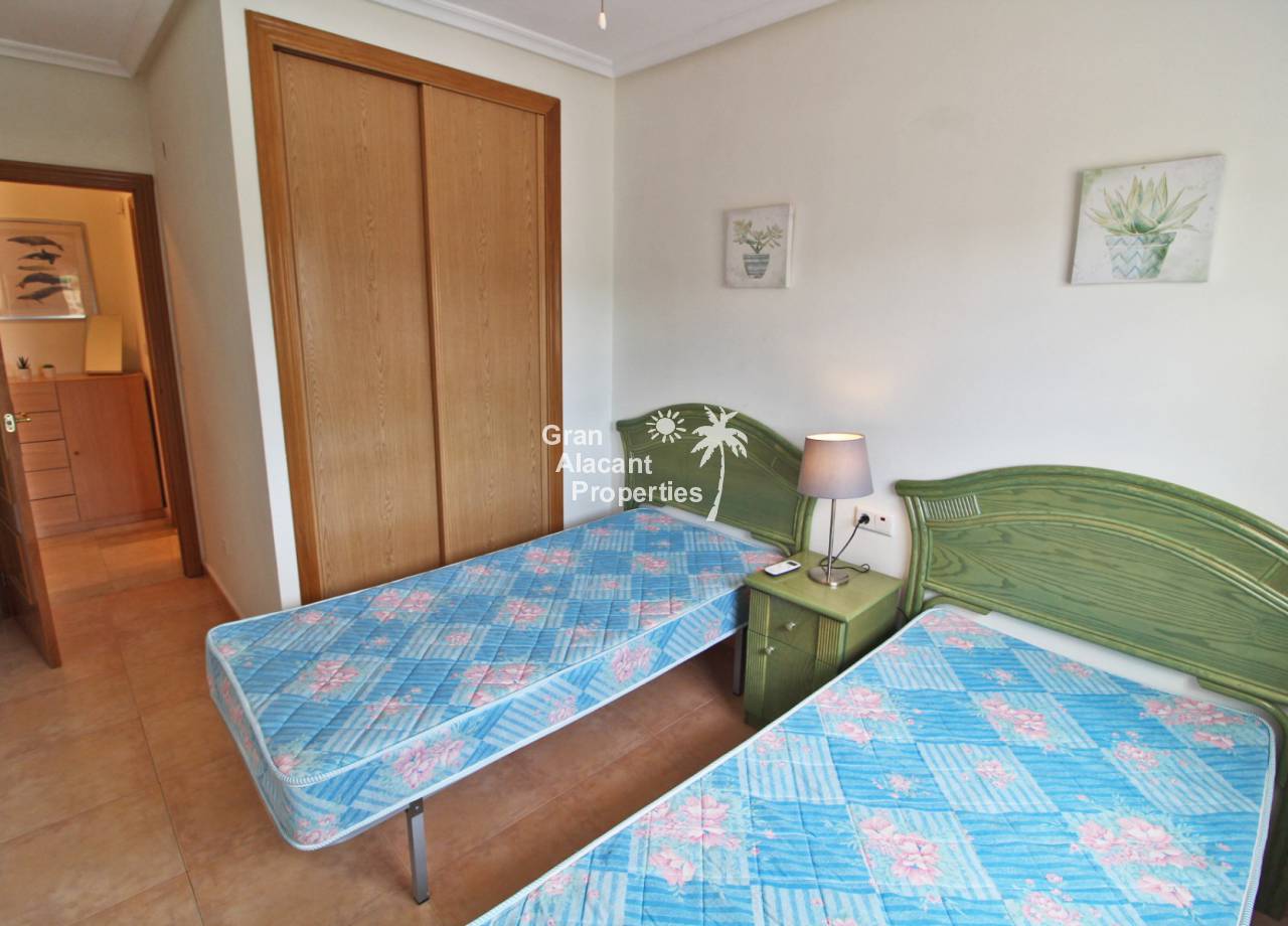Esta propiedad tiene una ubicación inmejorable en Puerto Marino en el Bajo Gran Alacant. El principal centro comercial Gran Alacant Centro Comercial con un supermercado Mercadona, muchas tiendas, bares y restaurantes está a solo unos minutos a pie. También hay un LIDL recientemente reformado y un Consum muy cerca. Un poco más adelante, encontrará la iglesia local, un parque para perros, varios supermercados, bancos, dentistas y mucho más. Los amantes de la naturaleza y los observadores de aves adorarán el parque natural Clot del Galvany, que ofrece acres de humedales vírgenes para explorar, así como las ruinas de los búnkeres de la Guerra Civil. Las hermosas playas de arena de Carabassi y Los Arenales están a 30 minutos a pie o puede aprovechar el transporte público fácilmente disponible que incluye un autobús de circulación y un tren turístico. En el centro comercial, también encontrará servicio de autobús a Alicante y Santa Pola, así como una parada de taxis.
