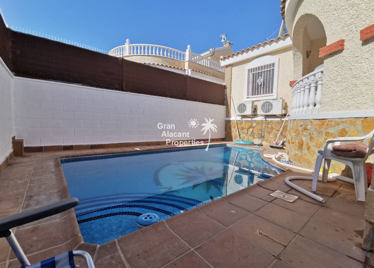 En el exterior, el jardín de bajo mantenimiento (244 m²) ofrece la opción de estacionamiento fuera de la carretera si es necesario y mucho espacio para el entretenimiento o simplemente para disfrutar del sol español. Lo mejor de todo es que hay una piscina privada perfecta para refrescarse en esos calurosos días de verano. Construida en 2006, esta villa cuenta con muchos, muchos extras que incluyen rejas de seguridad, TV satelitte, mosquiteros en las ventanas, amplio espacio de almacenamiento y estacionamiento fuera de la carretera.