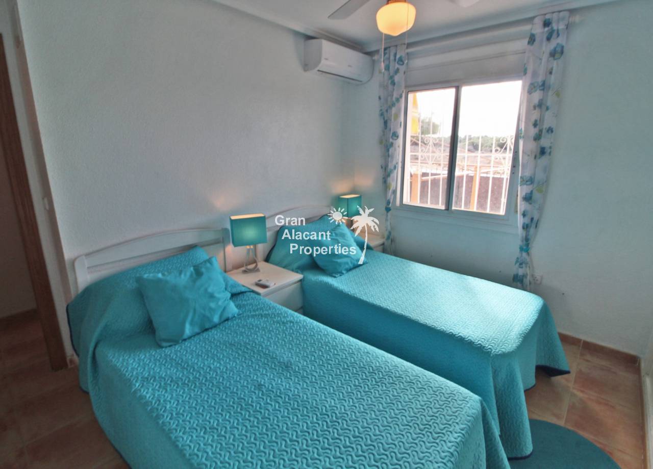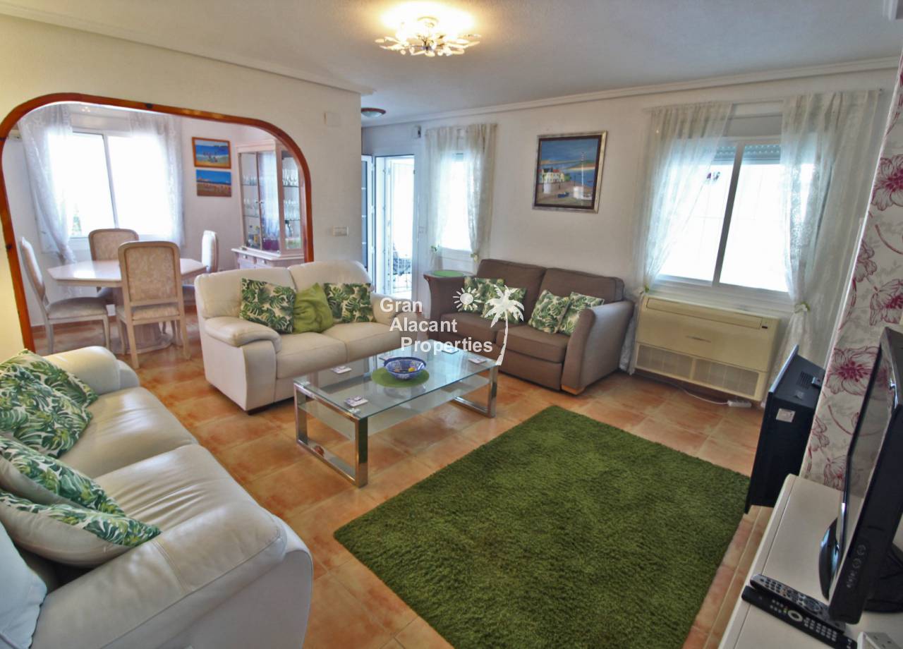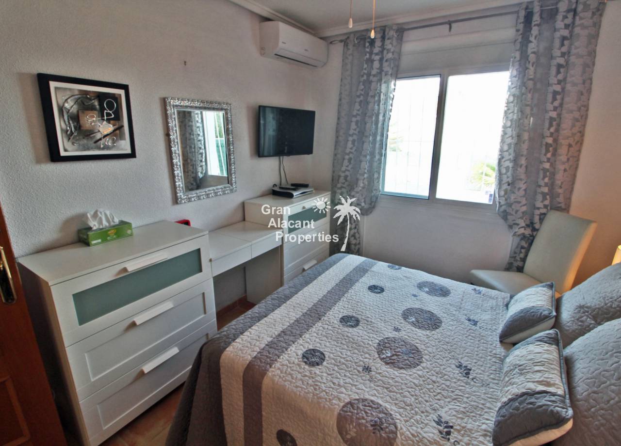 Ubicada en el codiciado barrio de Monte y Mar de Gran Alacant, en la soleada Costa Blanca de España, esta villa adosada orientada al sur está bien situada y cuenta con una piscina privada y excelentes vistas.