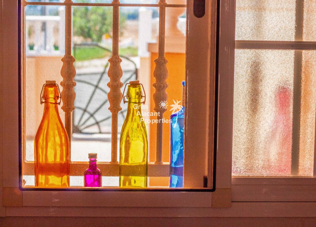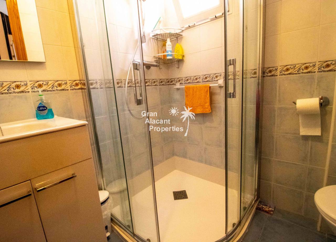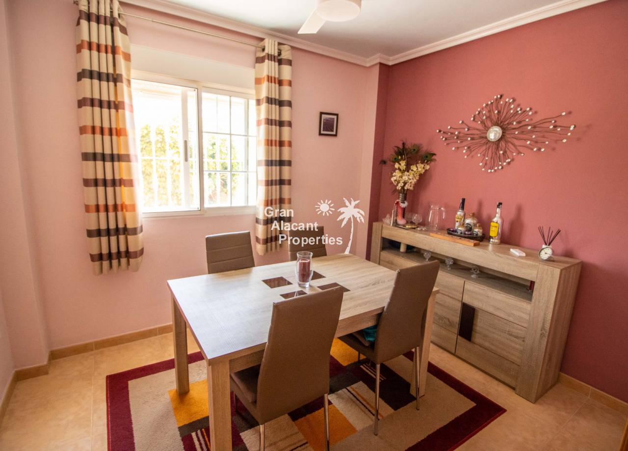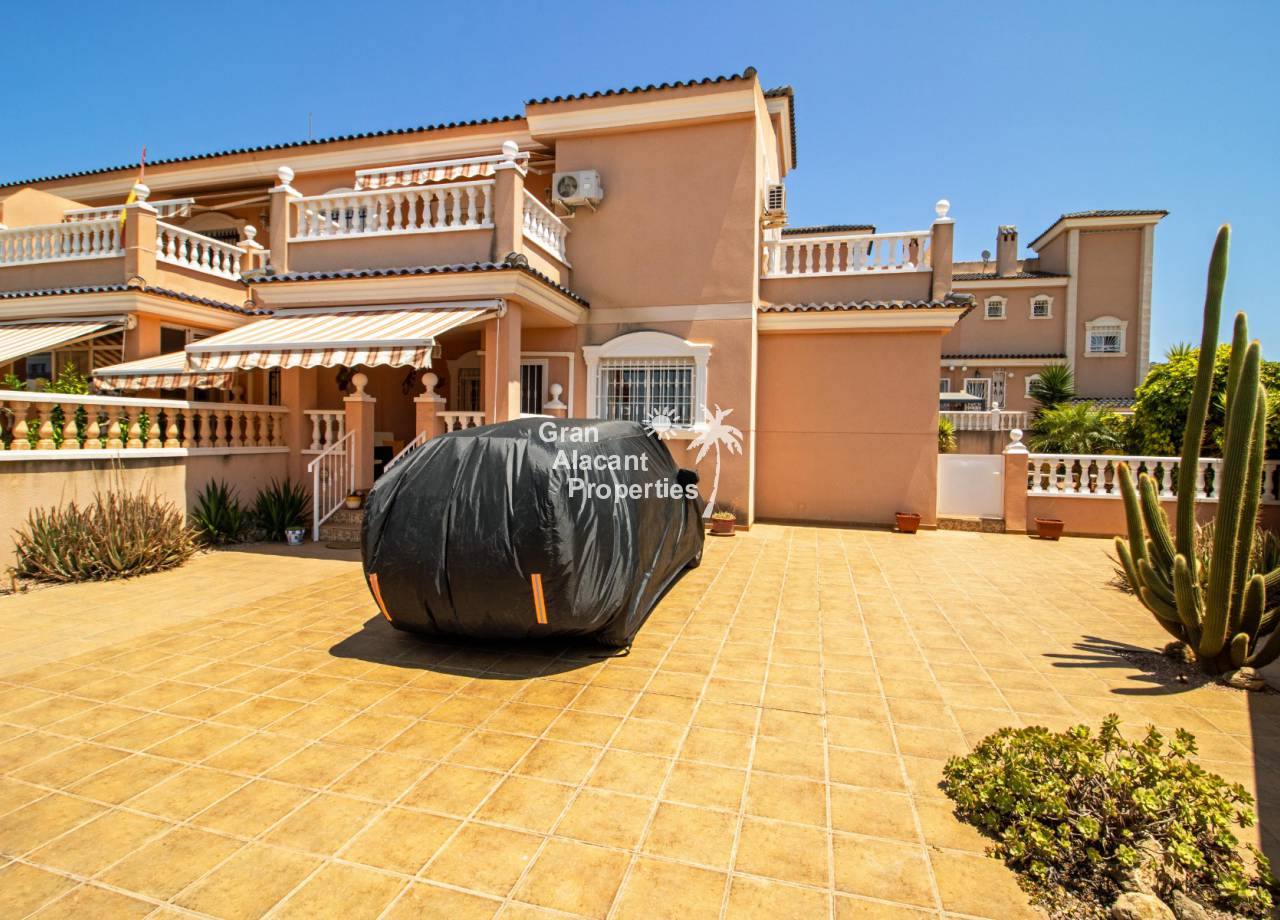 Casa semi adosada bien presentada con orientación suroeste ubicada en la codiciada comunidad de Puerto Marino en Gran Alacant en la soleada Costa Blanca de España. Esta casa cuenta con 3 habitaciones dobles (1 habitación en la planta baja que actualmente se usa como comedor), 1 baño en suite y 2 baños familiares, una sala de estar y comedor combinados, un gran jardín de bajo mantenimiento (frente, costado y parte trasera de la casa) con espacio para una alberca privada en el costado de la casa en caso de que el nuevo propietario decida instalar una, un asador, un porche delantero techado, un balcón en el dormitorio principal, un segundo balcón y una cocina independiente con lavadero. Hay doble acristalamiento, toldos, aire acondicionado frío y calor (x 3 máquinas), rejas de seguridad, ventiladores de techo y mosquiteros. La casa está construida con un buen estándar y viene con muchas características agradables. También hay acceso a 2 piscinas comunitarias y una zona de juegos para niños. La casa se vende amueblada y equipada, lista para entrar a vivir y empezar a vivir el sueño.
