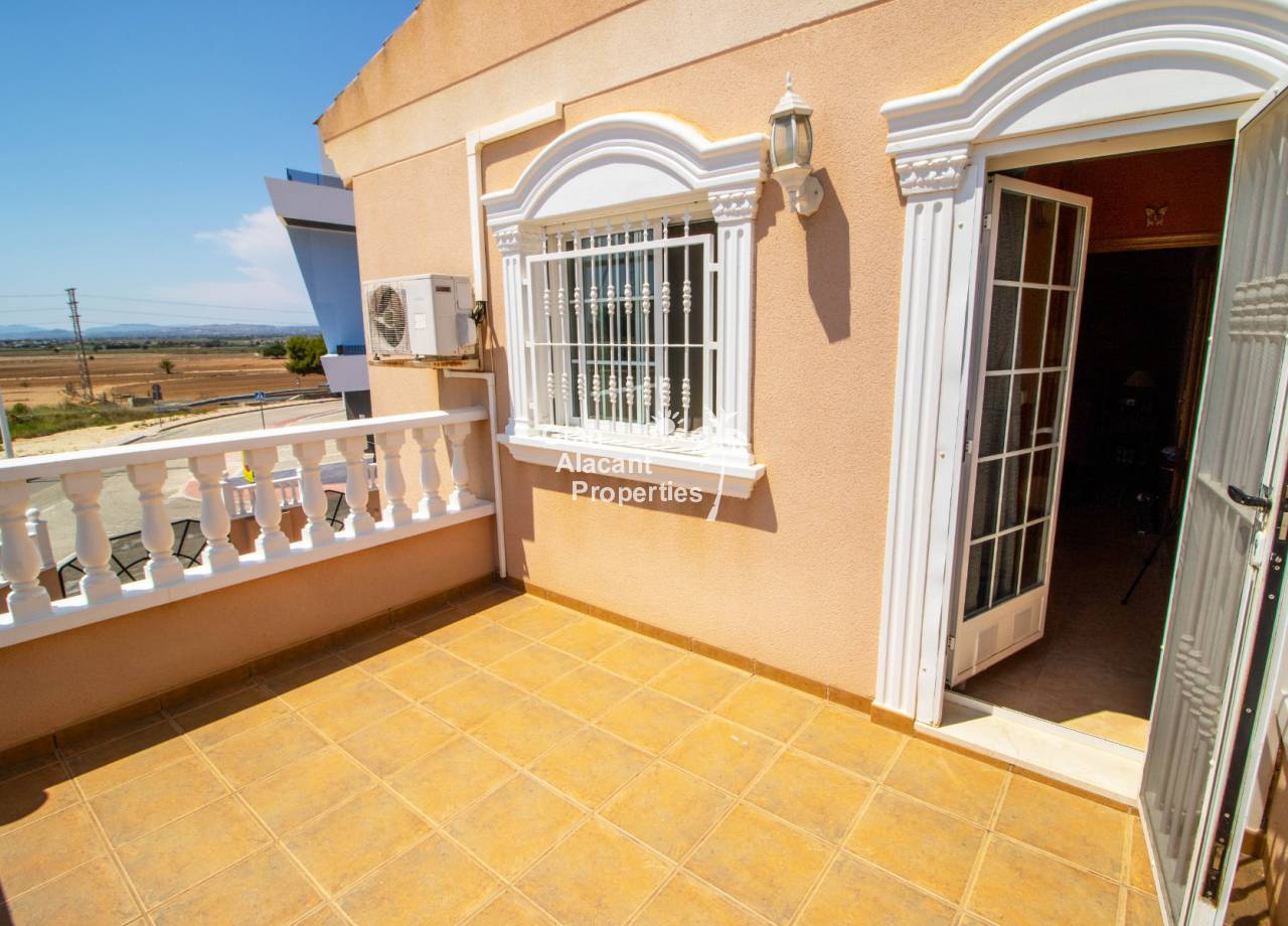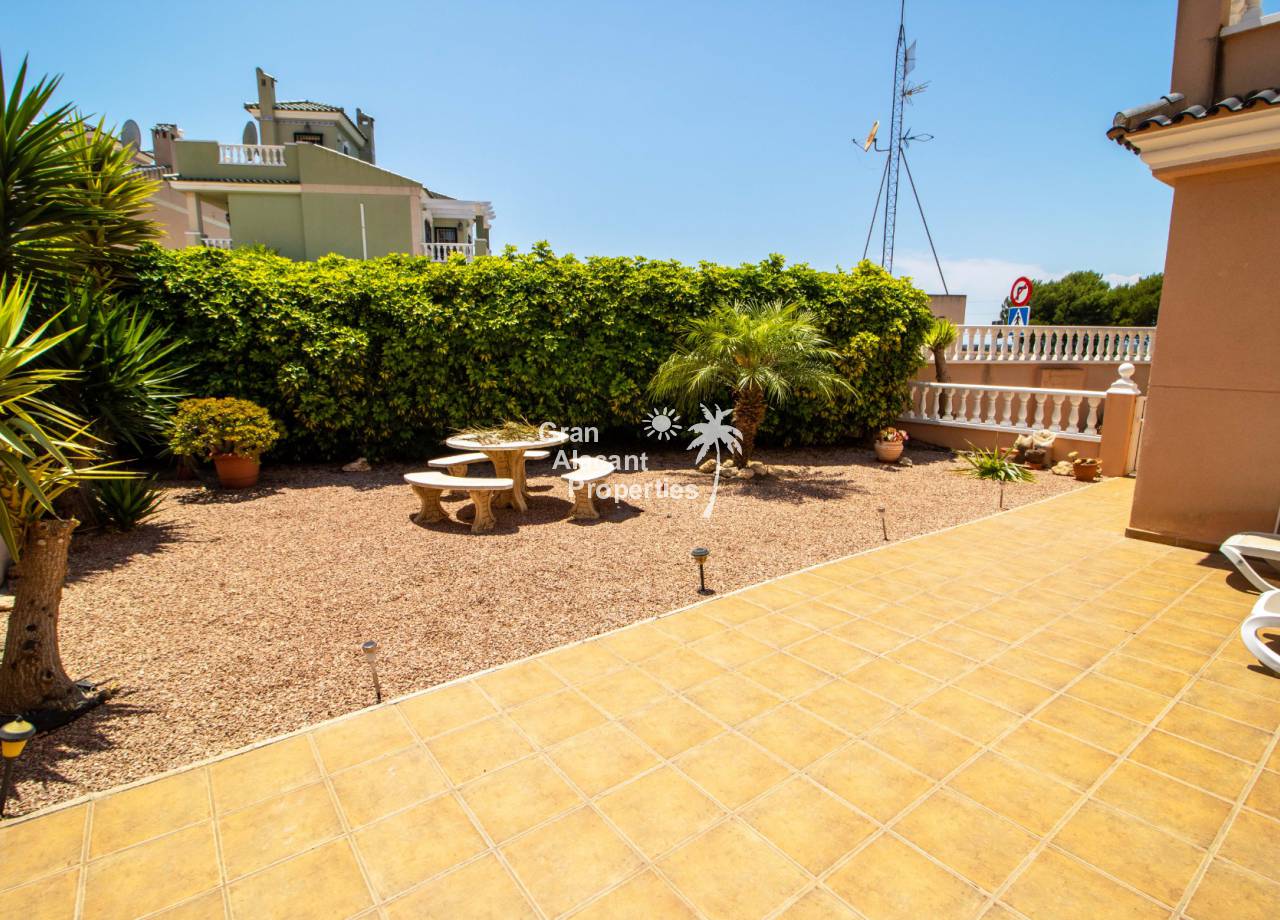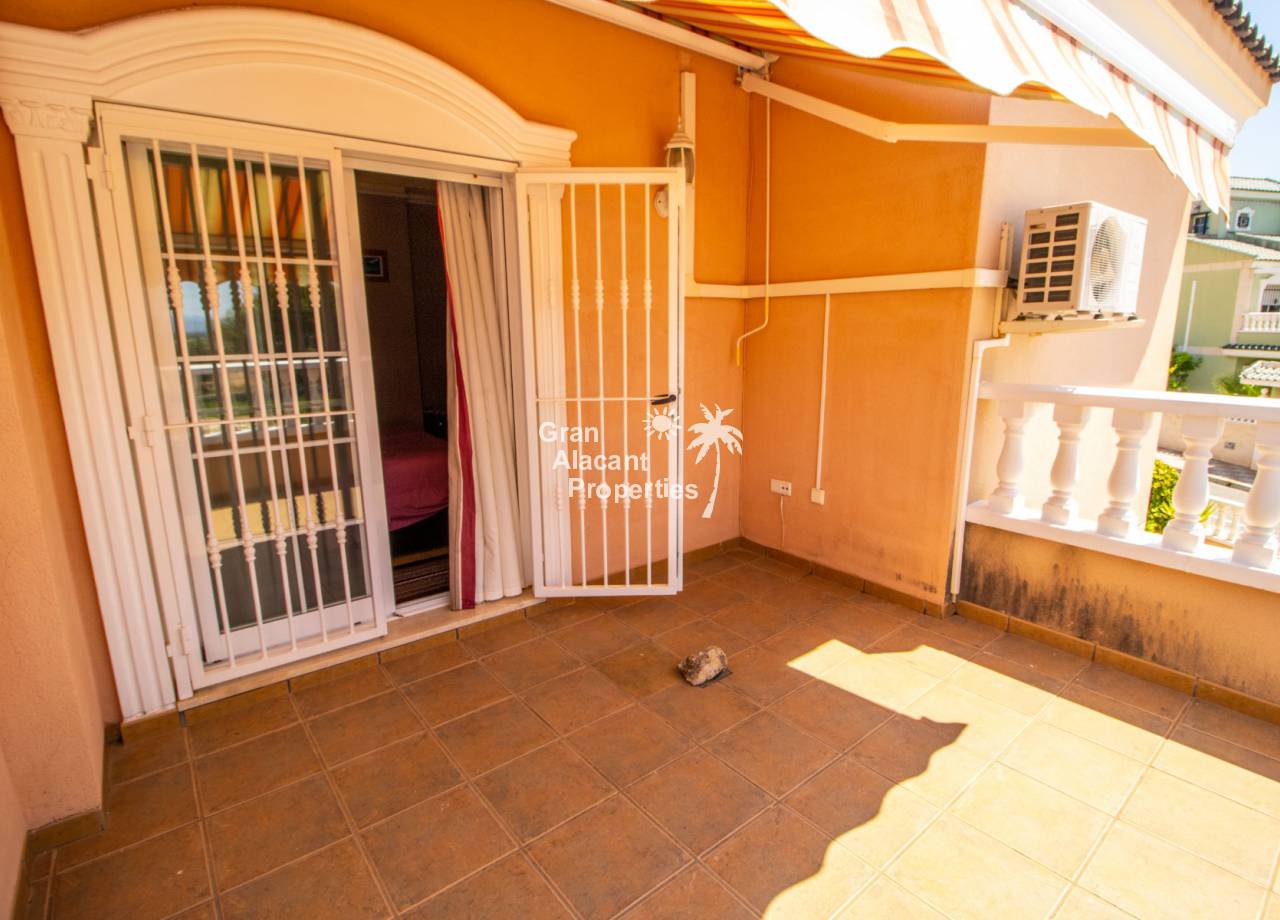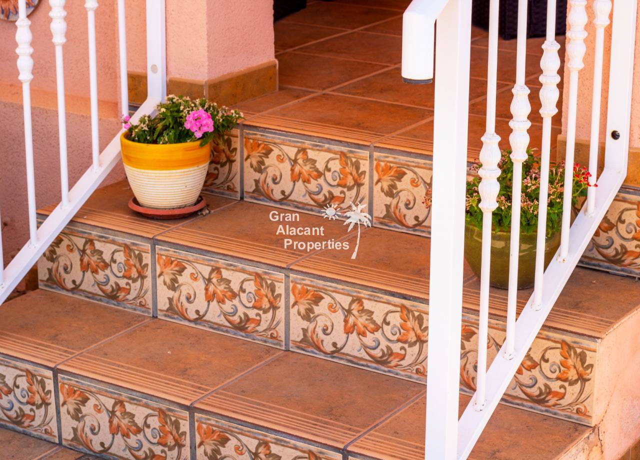 Casa semi adosada bien presentada con orientación suroeste ubicada en la codiciada comunidad de Puerto Marino en Gran Alacant en la soleada Costa Blanca de España. Esta casa cuenta con 3 habitaciones dobles (1 habitación en la planta baja que actualmente se usa como comedor), 1 baño en suite y 2 baños familiares, una sala de estar y comedor combinados, un gran jardín de bajo mantenimiento (frente, costado y parte trasera de la casa) con espacio para una alberca privada en el costado de la casa en caso de que el nuevo propietario decida instalar una, un asador, un porche delantero techado, un balcón en el dormitorio principal, un segundo balcón y una cocina independiente con lavadero. Hay doble acristalamiento, toldos, aire acondicionado frío y calor (x 3 máquinas), rejas de seguridad, ventiladores de techo y mosquiteros. La casa está construida con un buen estándar y viene con muchas características agradables. También hay acceso a 2 piscinas comunitarias y una zona de juegos para niños. La casa se vende amueblada y equipada, lista para entrar a vivir y empezar a vivir el sueño.