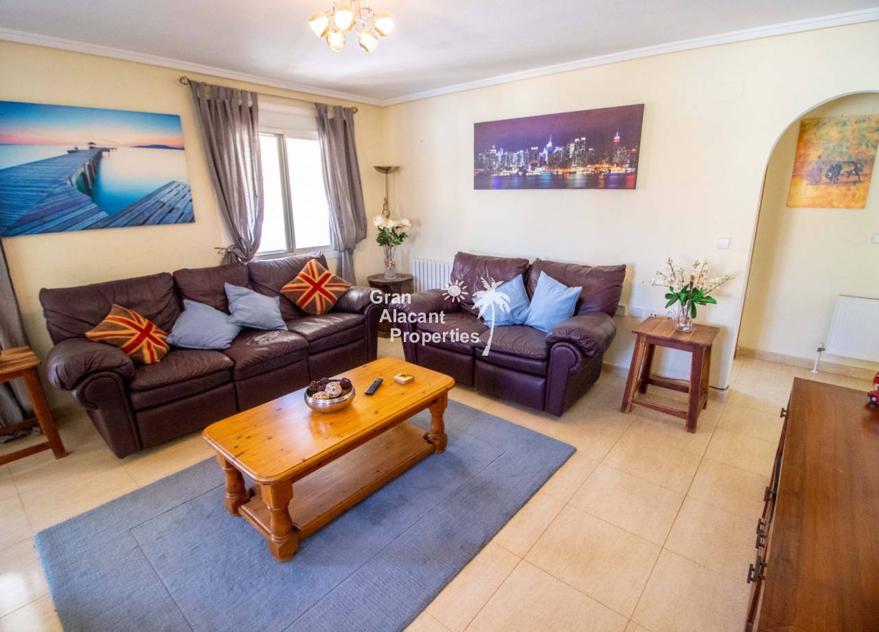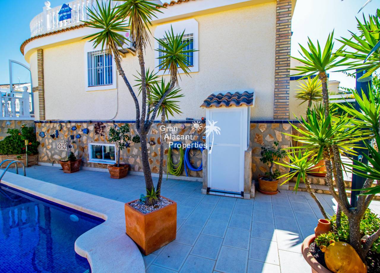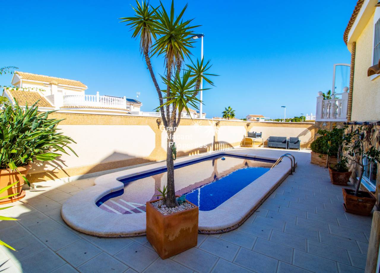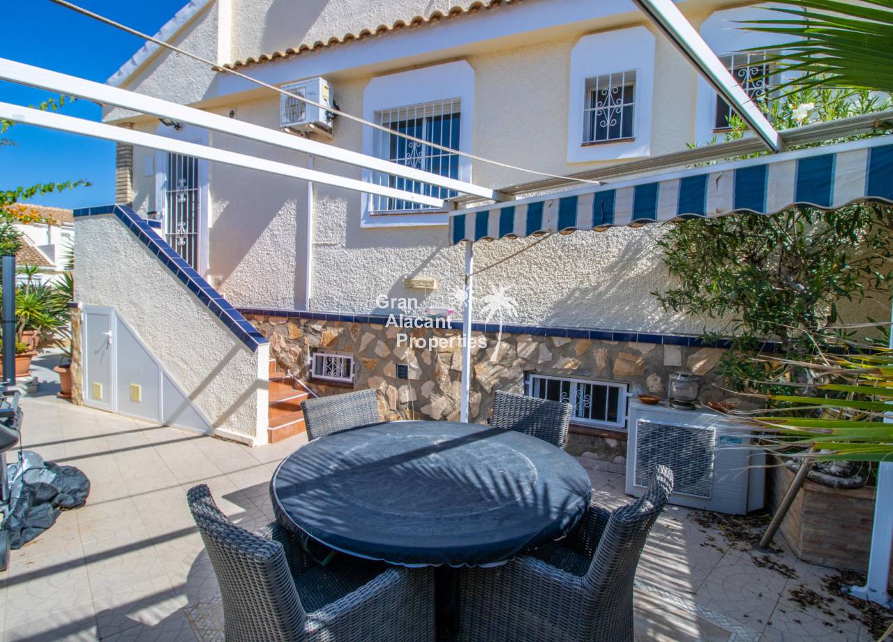 Gran Alacant Properties se complacen en ofrecer esta villa independiente de estilo "Bellavista" ubicada en una parcela de esquina con piscina privada, sótano y garaje en Gran Alacant con impresionantes vistas de Alicante, el campo y el Mediterráneo.