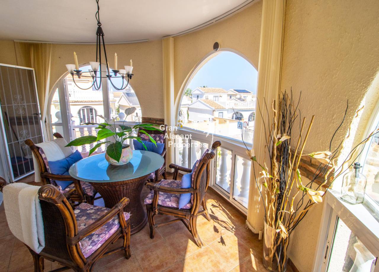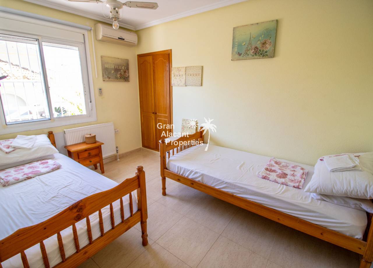 Esta villa tiene una ubicación inmejorable en el Bajo Gran Alacant cerca de uno de los principales centros comerciales, la Plaza Mayor. Supermercados, restaurantes, bancos, bares, tiendas, transporte público, el parque para perros y otros servicios se encuentran a poca distancia, al igual que el colegio local, CEIP Vicenta Ruso, y la iglesia local, Santiago Apóstol. Los amantes de la naturaleza y los observadores de aves estarán felices de saber que el Clot del Galvany también está cerca y ofrece acres de humedales vírgenes para explorar, así como ruinas de búnkeres de la Guerra Civil. Cerca hay paradas de autobús y tren turístico que ofrecen una forma económica de moverse por la zona. Las hermosas playas de arena de Los Arenales y Carabassi están a unos 25 minutos a pie o 5 minutos en coche.