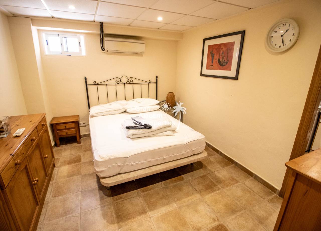 En la planta baja, esta villa de estilo "Bellavista" cuenta con una generosa sala de estar de planta abierta, una práctica cocina estilo galera con acceso directo al jardín trasero y al área de la piscina, un dormitorio en suite, un baño familiar, un segundo dormitorio doble más un porche cubierto acristalado que ofrece un respiro del calor del día y hermosas vistas. Arriba, hay un dormitorio en suite con baño, armario empotrado y acceso directo a un gran solárium con vistas panorámicas a la montaña, al campo y al mar. Hay aire acondicionado en todas partes (frío y calor), calefacción central (gas ciudad), doble acristalamiento, mosquiteras y rejas de seguridad.