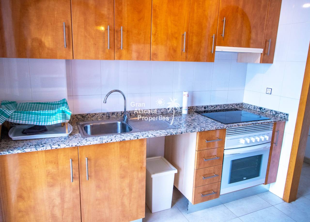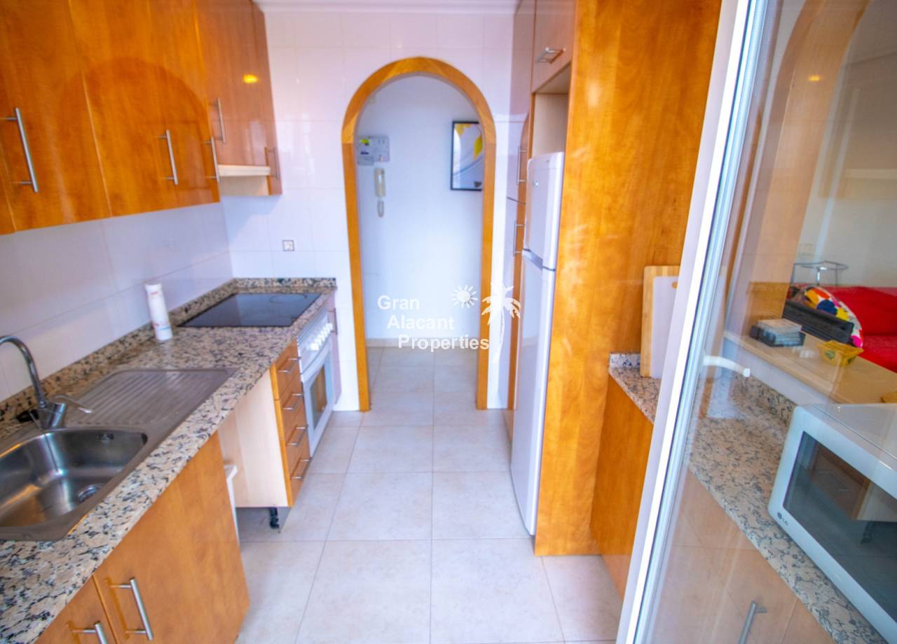 ¡EN VENTA! Descubre este encantador apartamento de 57 m² en la tranquila zona de Riopark, en Muchamiel. La sala de estar y comedor de concepto abierto se extiende hacia la terraza de 25 m², perfecta para recibir a invitados o relajarte mientras disfrutas de las vistas pacíficas al campo, jardines comunitarios y el mar Mediterráneo. La cocina en forma de pasillo cuenta con una encimera de granito, una torre despensa y una ventana que comunica con el salón. Con acceso directo a la terraza a través de una puerta acristalada, la cocina también tiene espacio para un lavavajillas. Ofreciendo dos amplios dormitorios dobles con armarios empotrados y grandes ventanales que llenan las habitaciones de luz natural, esta vivienda está diseñada para vivir cómodamente. El baño está bien equipado con una ducha a ras de suelo, bidé, inodoro, lavabo, y un práctico armario que alberga la lavadora y el calentador de agua, mientras que una ventana proporciona excelente luz y ventilación.