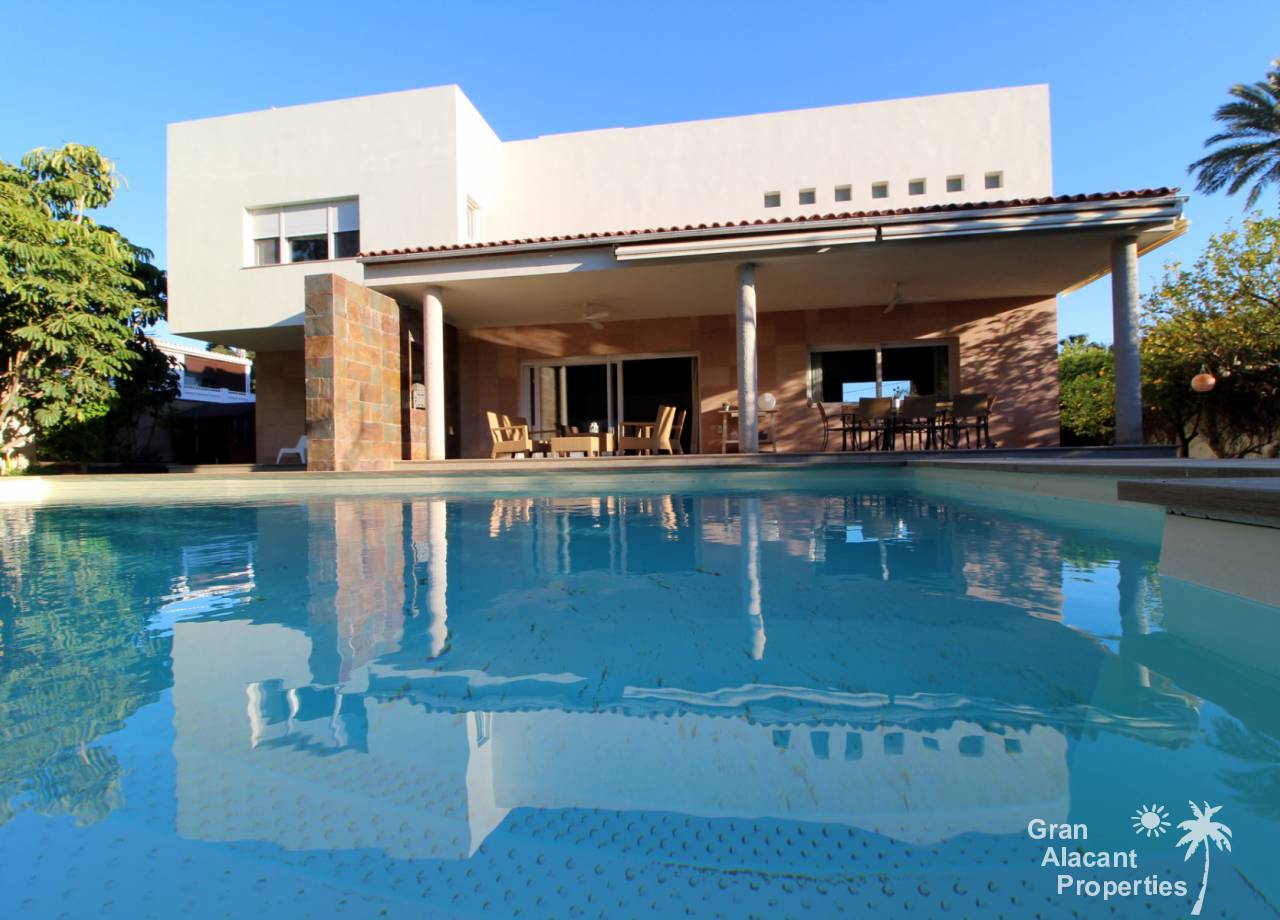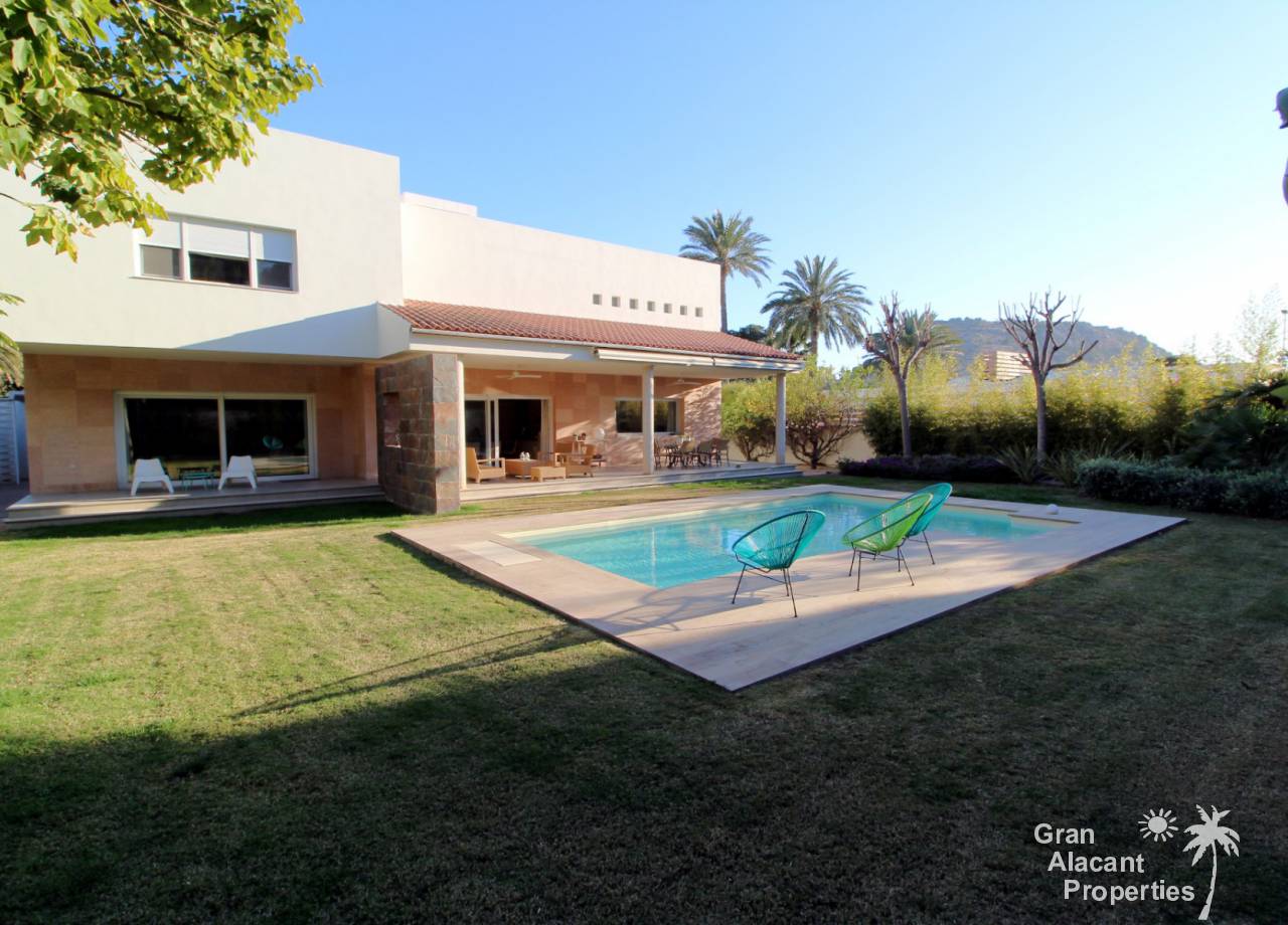 Esta es una oportunidad única de adquirir una villa de lujo a medida y lista para llaves, con piscina ubicada a solo 800 m de la playa, en una zona tranquila y céntrica de la ciudad de Alicante.