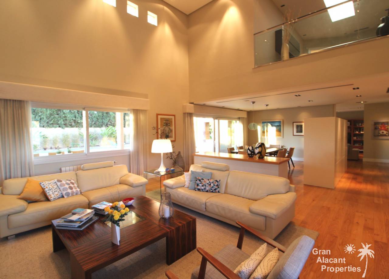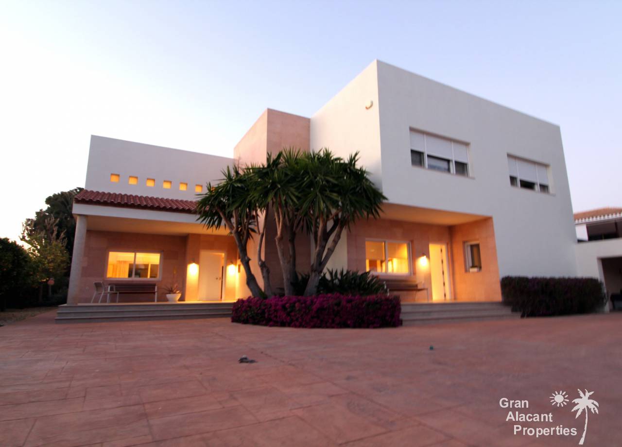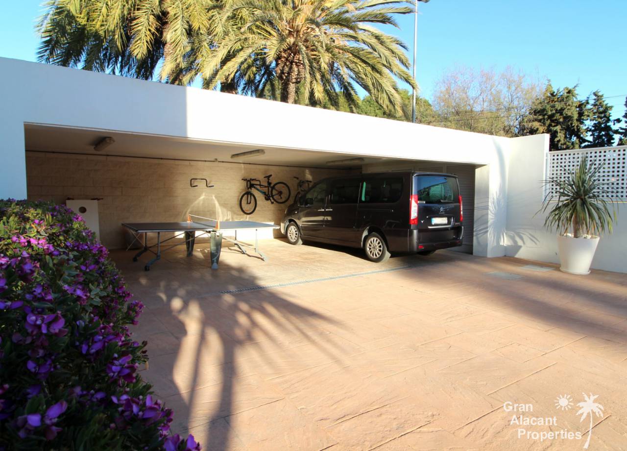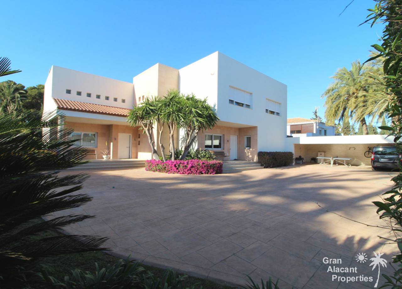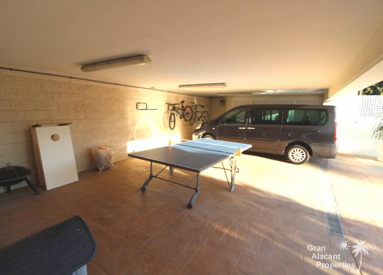 Construida en 2003, esta villa única lo tiene todo y está completamente amueblada y equipada, así que está lista para mudarse y disfrutar. La casa tiene 465 m² construidos y se asienta en una parcela madura de 1.255 m² en un área conocida como L´Albufereta, Alicante. Al ingresar a la propiedad a través de las puertas de seguridad eléctricas con control remoto, hay un estacionamiento cubierto para 3 automóviles de buen tamaño y otro estacionamiento para 10 más fácilmente en el camino de entrada. Ingrese a la casa a través de una terraza cubierta a un salón de doble altura con chimenea y un comedor separado con vistas a la piscina. Hay una sala de estar adicional, una cocina grande con electrodomésticos de calidad, un comedor separado con acceso al exterior, un dormitorio en suite, un baño, un cuarto de almacenamiento y una lavandería / lavadero también con acceso a los jardines. También hay una terraza cubierta de longitud completa a lo largo de la parte posterior de la casa con vistas a la piscina privada y los jardines.