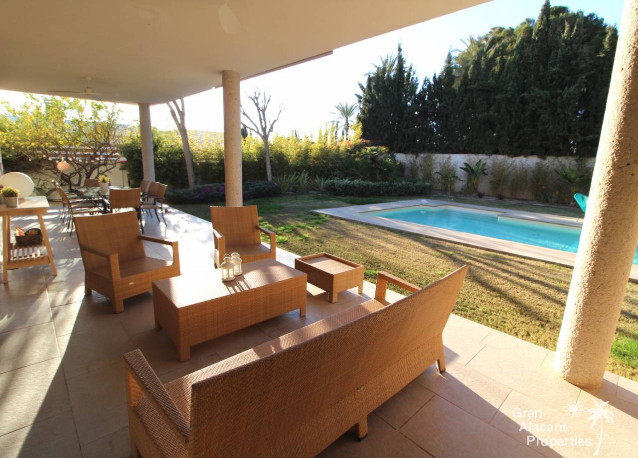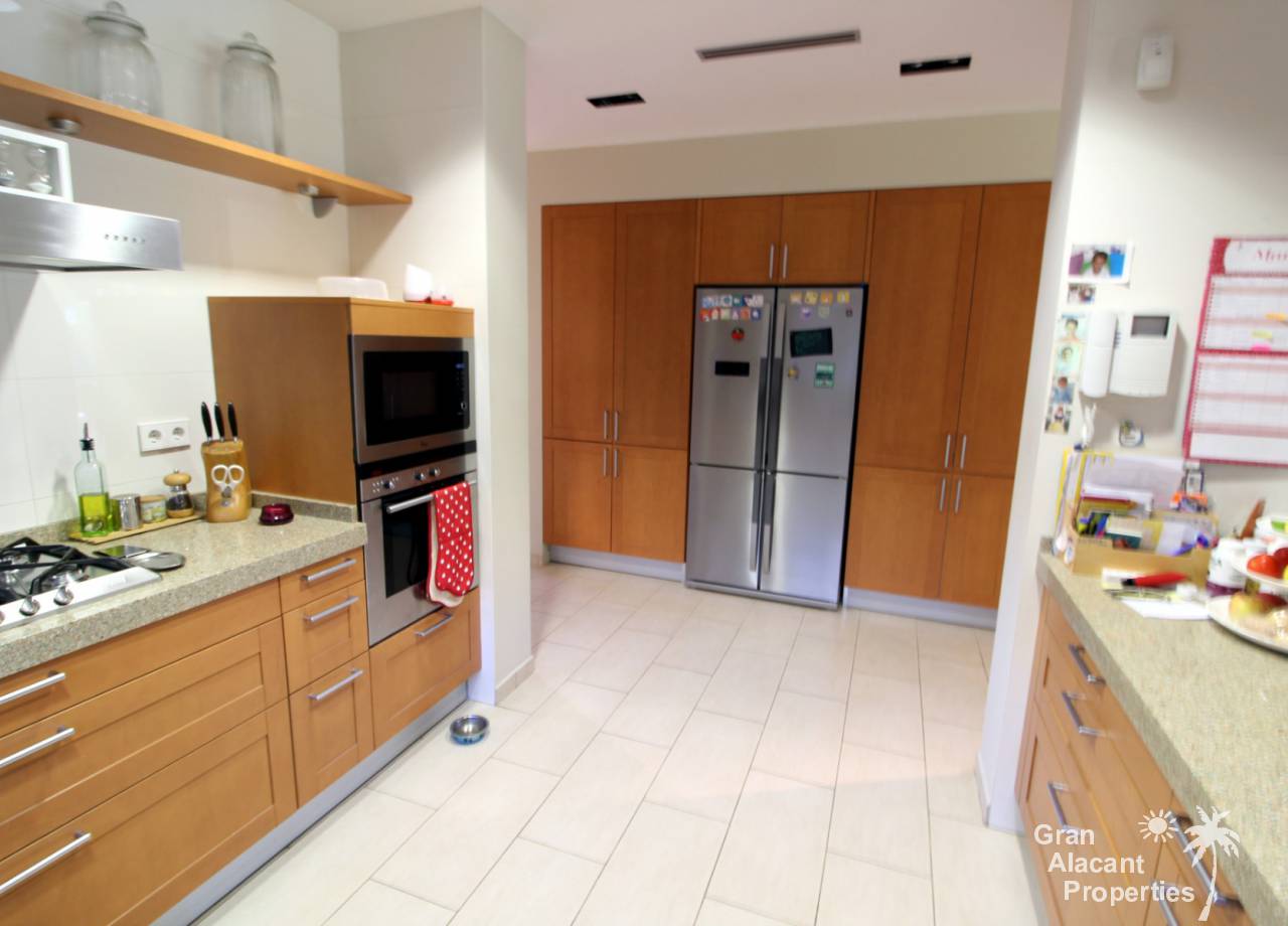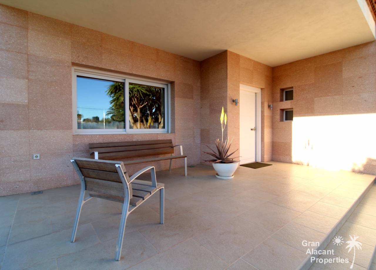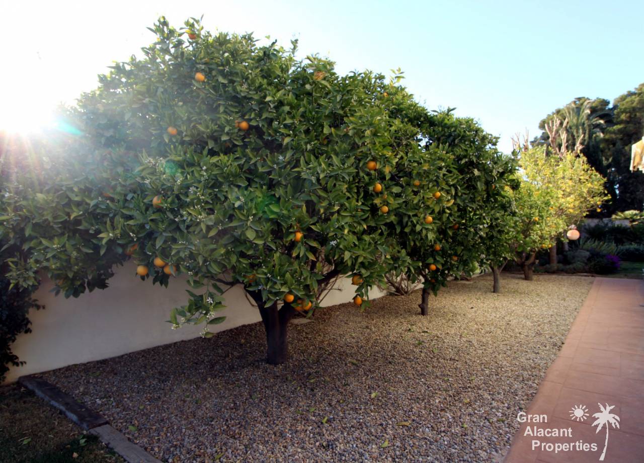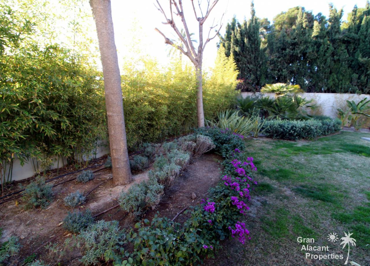 Todos los accesorios y accesorios son de una calidad muy alta, hay un lavadero exterior que contiene el sistema de calefacción y un sistema de purificación de agua. La casa tiene varias dependencias que ofrecen un montón de almacenamiento. La piscina es de 8 x 4 y los jardines tienen césped, varias flores, árboles frutales y palmeras y un sistema de riego para mantenerlos a todos sanos. Esto realmente es una casa bien pensada con todo lo más simple posible para los propietarios. Es una excelente casa familiar y también un gran lugar para entretener, realmente debe ser vista para apreciarla y la ubicación, aunque tranquila, es central, lo que significa un fácil acceso a la playa y a la ciudad con todas las instalaciones que Alicante tiene para ofrecer. El aeropuerto está a solo 20 minutos en coche.