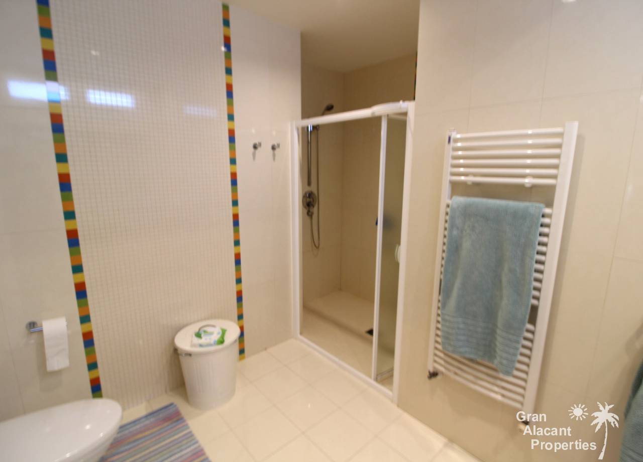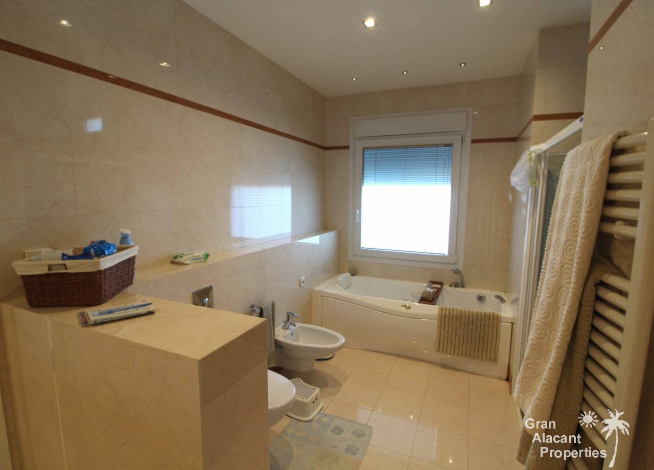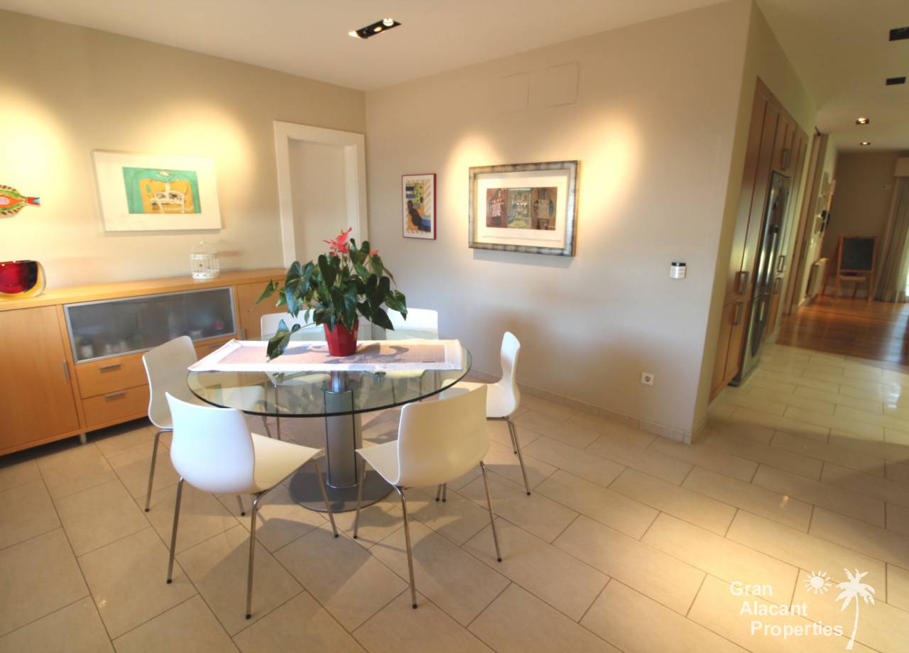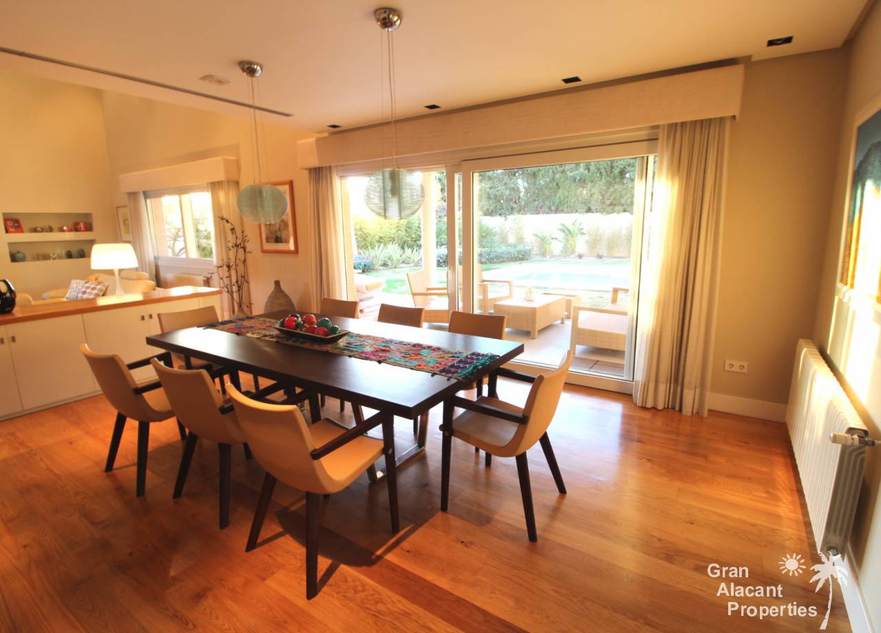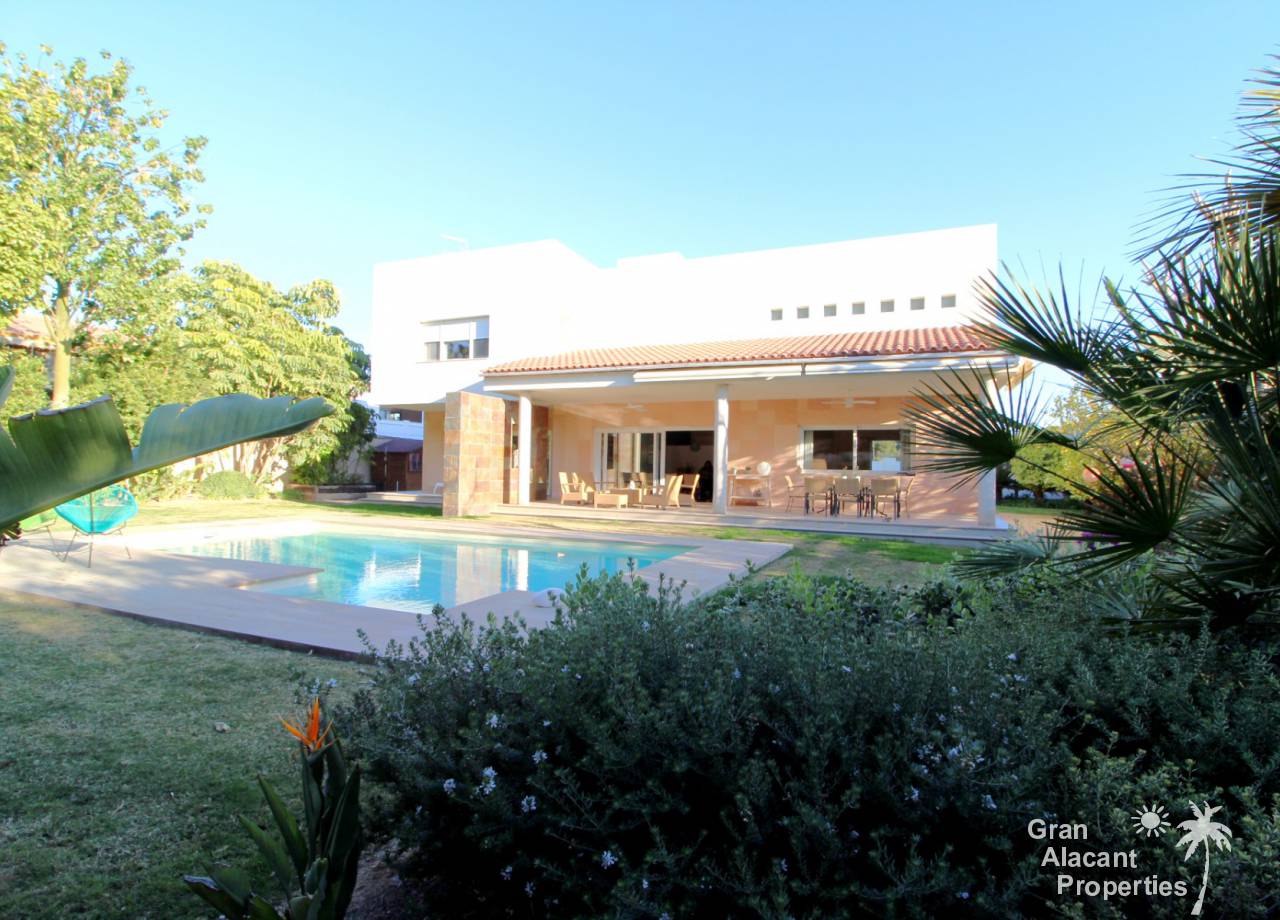 Todos los accesorios y accesorios son de una calidad muy alta, hay un lavadero exterior que contiene el sistema de calefacción y un sistema de purificación de agua. La casa tiene varias dependencias que ofrecen un montón de almacenamiento. La piscina es de 8 x 4 y los jardines tienen césped, varias flores, árboles frutales y palmeras y un sistema de riego para mantenerlos a todos sanos. Esto realmente es una casa bien pensada con todo lo más simple posible para los propietarios. Es una excelente casa familiar y también un gran lugar para entretener, realmente debe ser vista para apreciarla y la ubicación, aunque tranquila, es central, lo que significa un fácil acceso a la playa y a la ciudad con todas las instalaciones que Alicante tiene para ofrecer. El aeropuerto está a solo 20 minutos en coche.