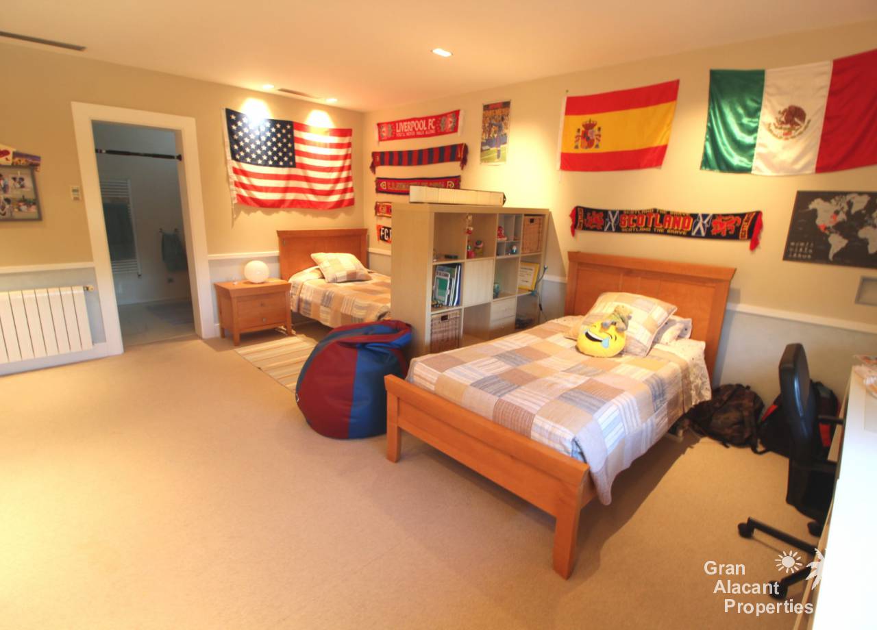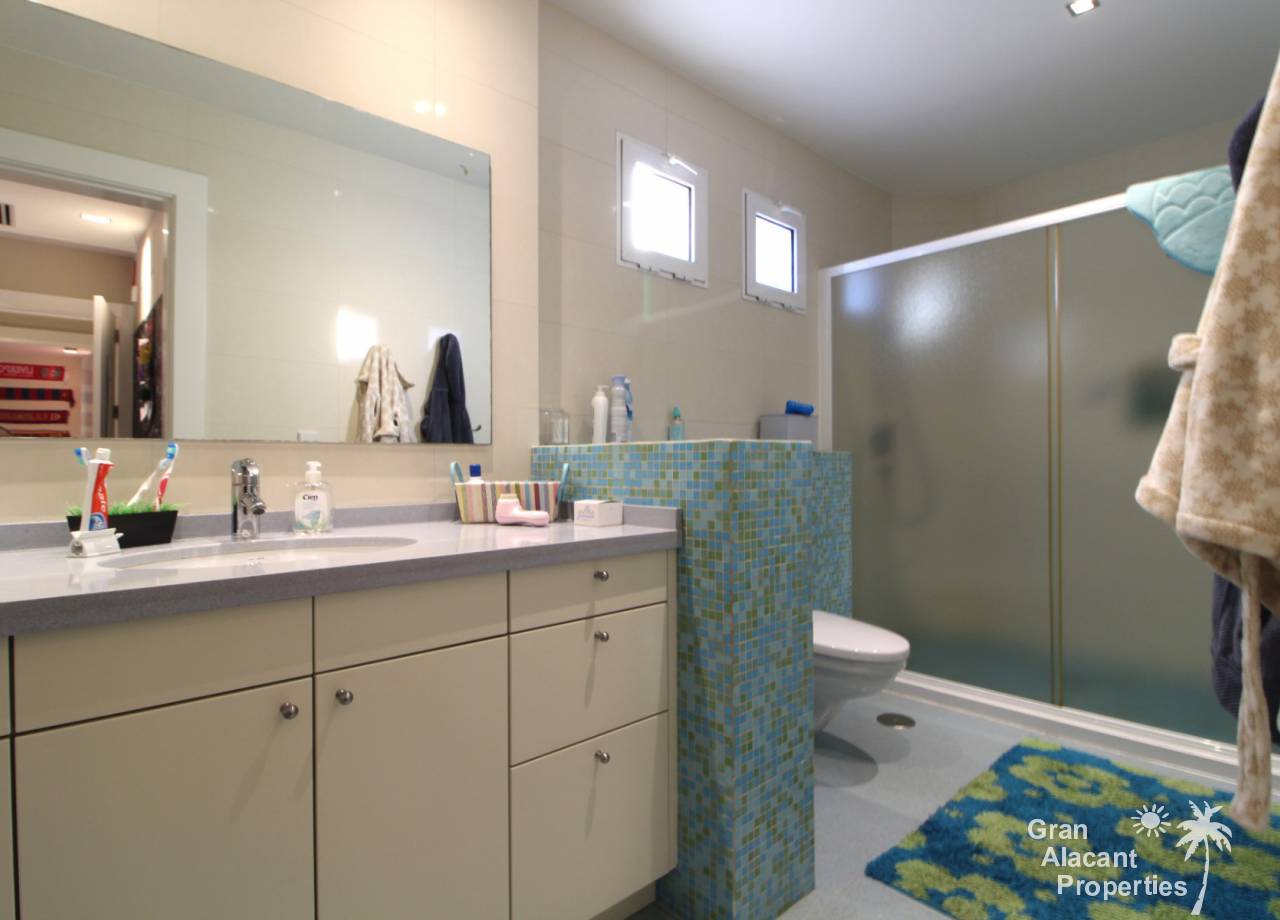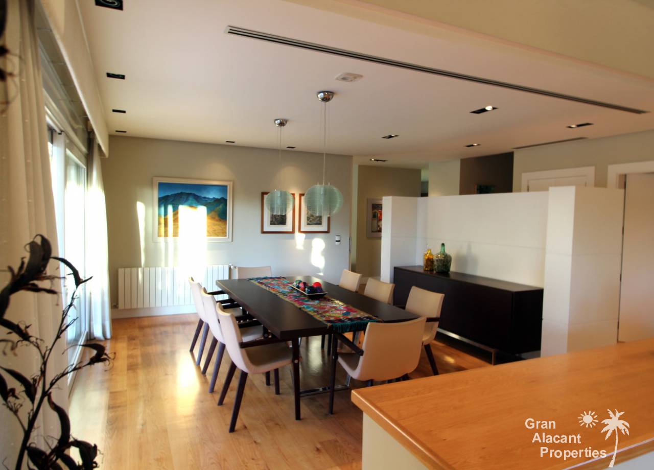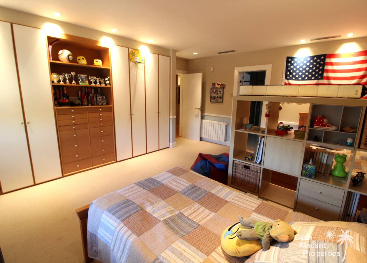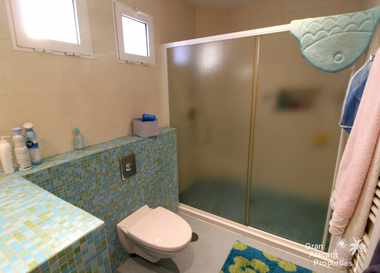 Todos los accesorios y accesorios son de una calidad muy alta, hay un lavadero exterior que contiene el sistema de calefacción y un sistema de purificación de agua. La casa tiene varias dependencias que ofrecen un montón de almacenamiento. La piscina es de 8 x 4 y los jardines tienen césped, varias flores, árboles frutales y palmeras y un sistema de riego para mantenerlos a todos sanos. Esto realmente es una casa bien pensada con todo lo más simple posible para los propietarios. Es una excelente casa familiar y también un gran lugar para entretener, realmente debe ser vista para apreciarla y la ubicación, aunque tranquila, es central, lo que significa un fácil acceso a la playa y a la ciudad con todas las instalaciones que Alicante tiene para ofrecer. El aeropuerto está a solo 20 minutos en coche.
