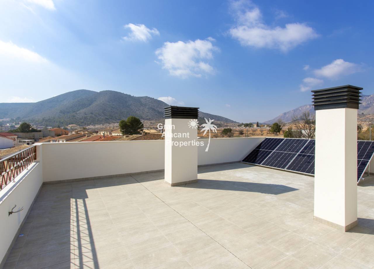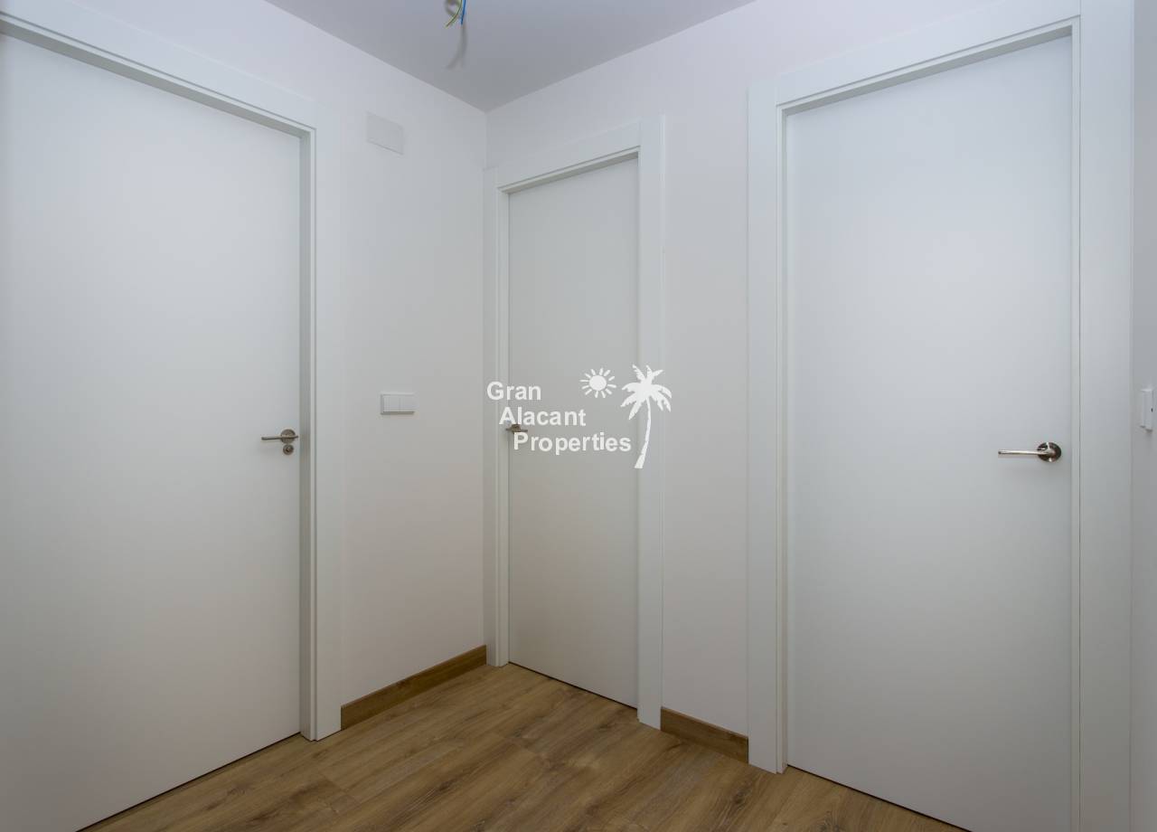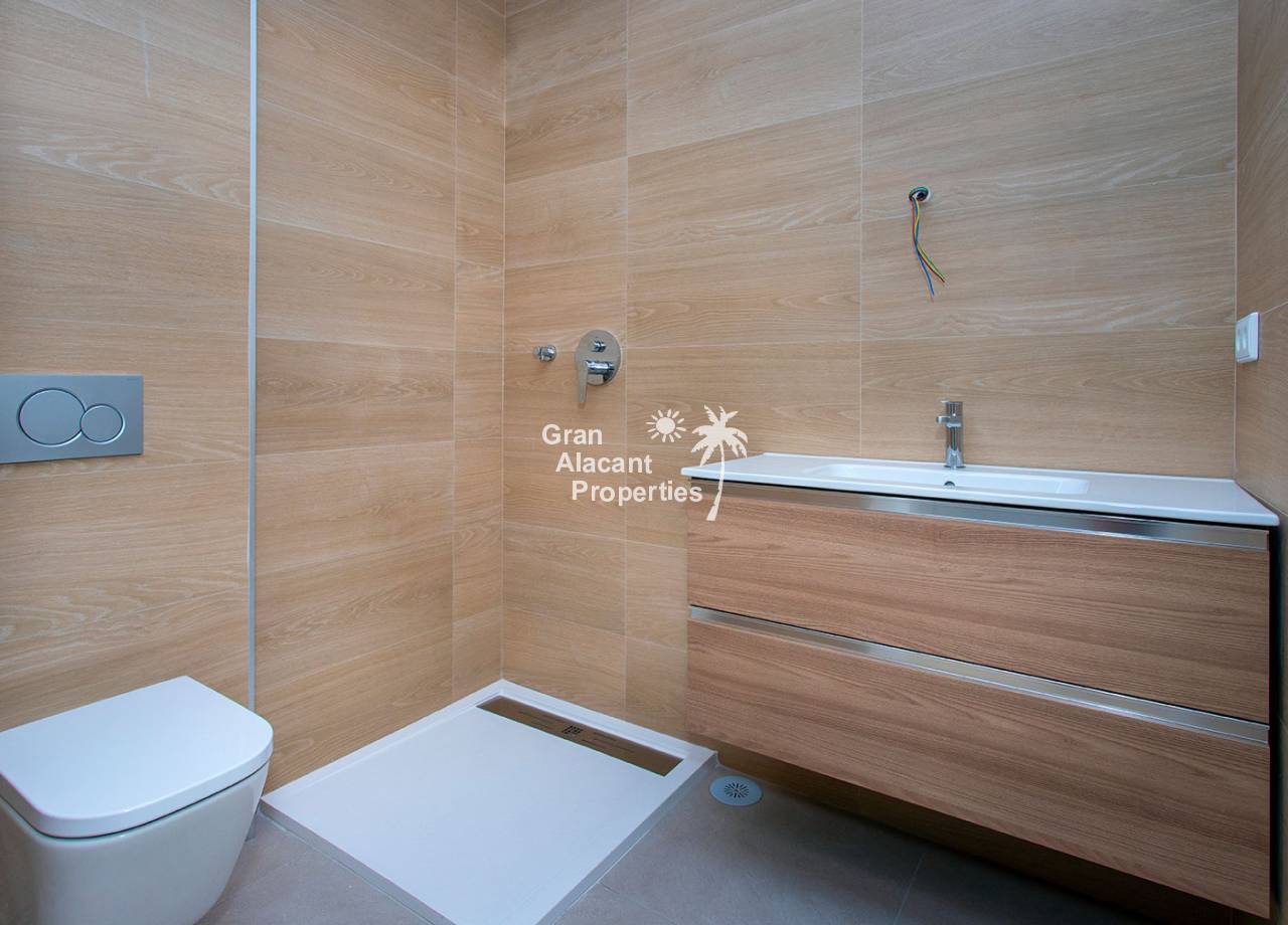 The properties are available on the ground floor with front and rear terrace/garden and on the top floor with terrace and private solarium, the first floor properties have photovoltaic panels on the roof for energy saving. The kitchens are fully fitted and finished with granite or synthetic agglomerate worktops (silestone or simular) and the bathrooms are finished with high quality sanitary ware and taps with built-in cistern. These homes have pre-installation for ducted air conditioning with heat pump, forced ventilation with heat recovery, aerothermal system for domestic hot water, the most modern thermal and acoustic insulation, aluminium exterior carpentry with thermal bridge break and shutters.