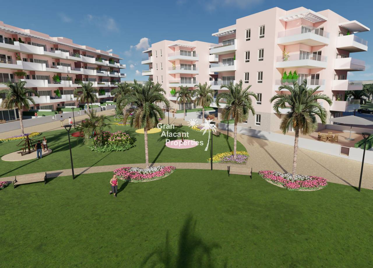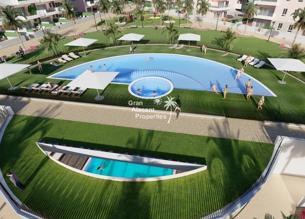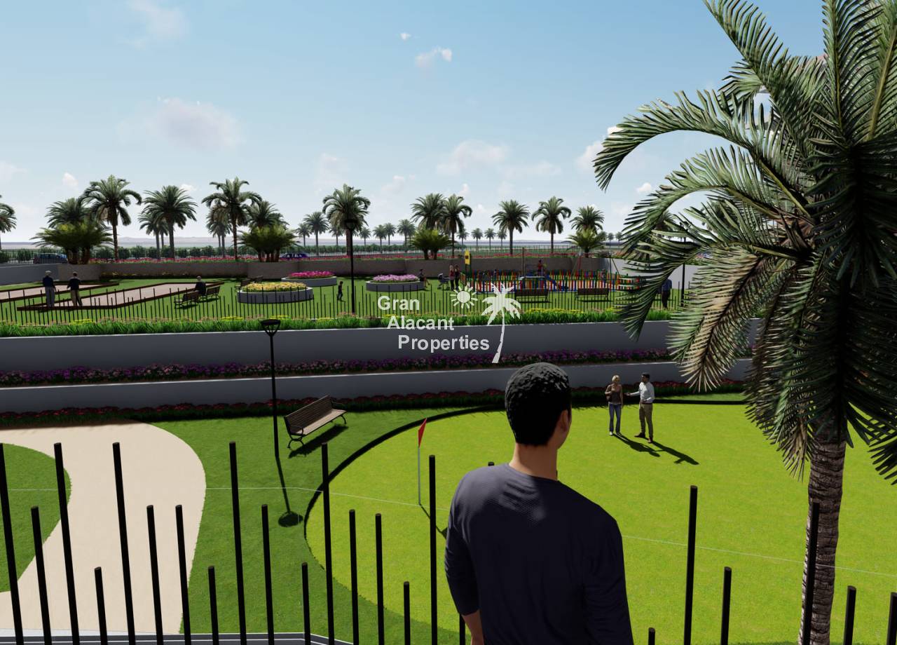 This new development prides itself on offering exceptional communal spaces. Residents will be able to relax in the large summer swimming pool or enjoy the heated spa. Children will have fun in the playground, while sports enthusiasts will find a fitness area with bio-health machines and a Putting Green Golf to improve their swing. All of this is set within a gated complex surrounded by lush green areas, providing the perfect environment for everyone to enjoy to the full.
