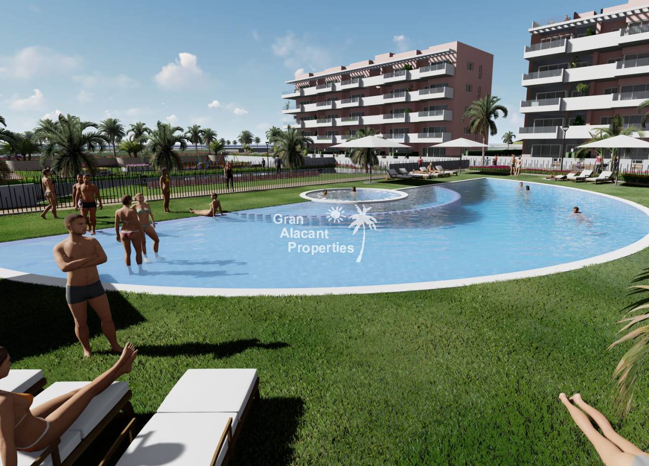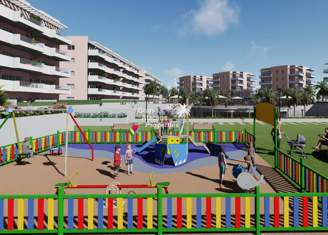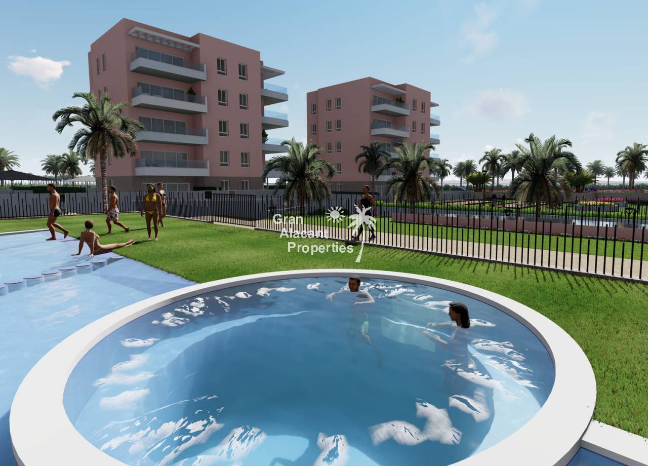 This new development prides itself on offering exceptional communal spaces. Residents will be able to relax in the large summer swimming pool or enjoy the heated spa. Children will have fun in the playground, while sports enthusiasts will find a fitness area with bio-health machines and a Putting Green Golf to improve their swing. All of this is set within a gated complex surrounded by lush green areas, providing the perfect environment for everyone to enjoy to the full.