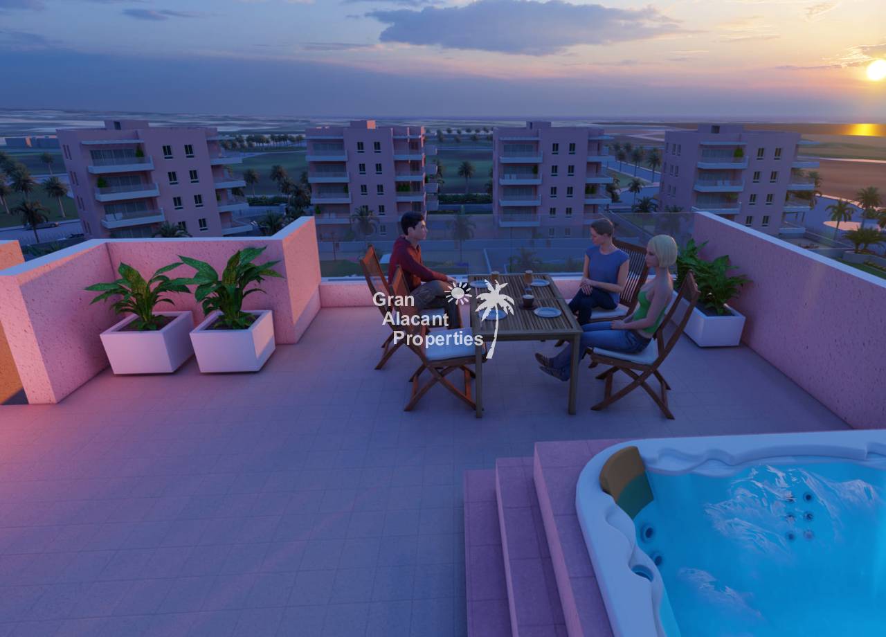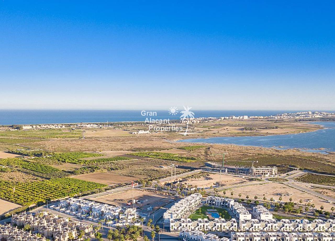 The urbanization El Raso in Guardamar del Segura, Alicante, offers a residential complex of 175 properties with 3 bedrooms and 2 bathrooms. All of these homes have large terraces ideal for enjoying the Mediterranean climate. This charming town, bathed by the blue waters of the Mediterranean, offers more than 11 km of fine sandy beaches and an extensive dune forest of 800 hectares, characterised by pine, eucalyptus and palm trees. All this creates a unique environment that invites you to live and enjoy this beautiful place.