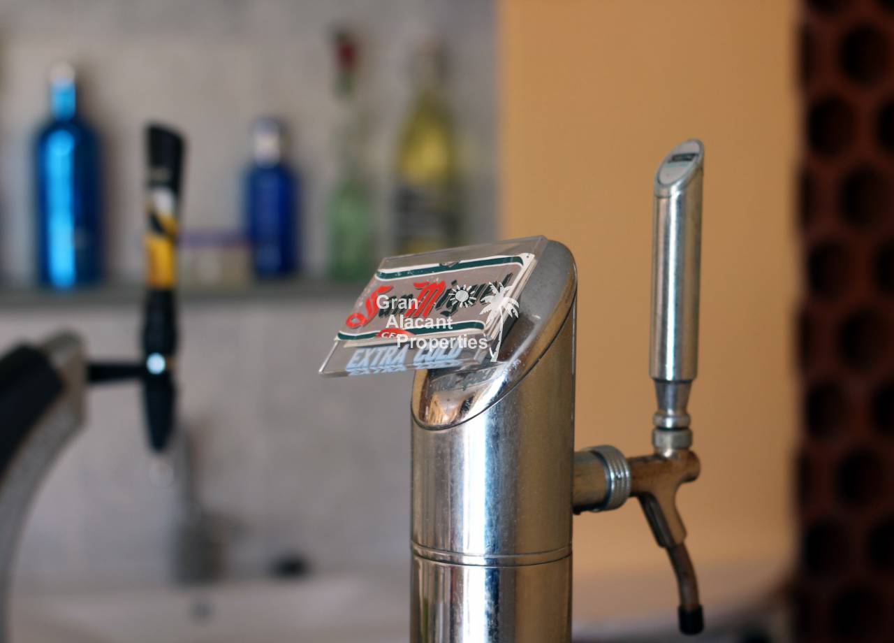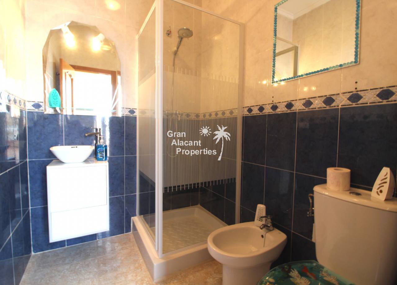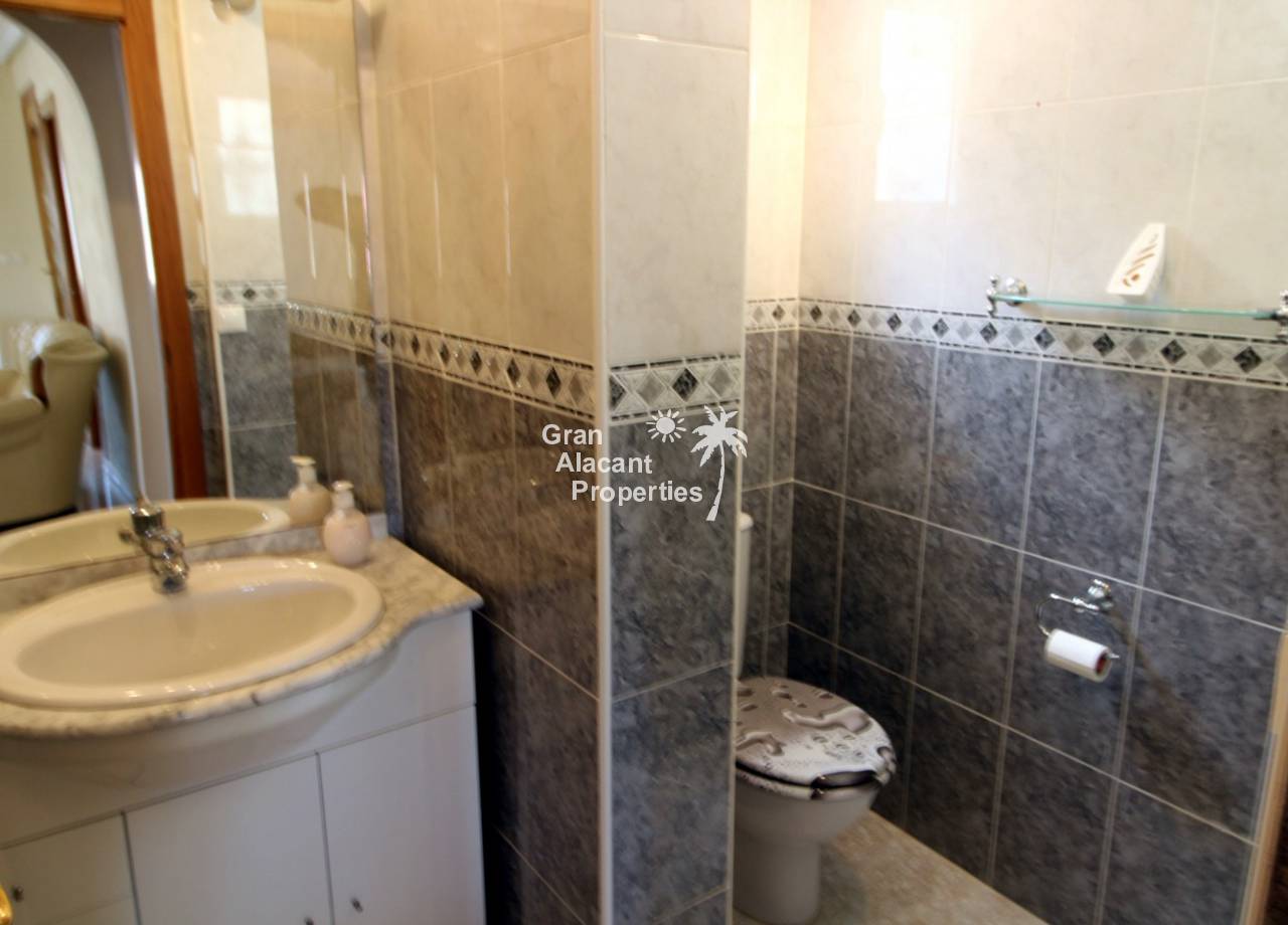 Outside, the low maintenance mature garden (410 m²) offers off road parking, plenty of space for entertaining or enjoying the Spanish sunshine. Best of all is the designer private swimming pool with seperate jacuzzi and waterfall perfect for cooling off on hot summer days. There is a large curved front covered bar area complete with satellite TV, beer pumps, pool table and dart board, perfect for hosting parties or just enjoying yourself. Upstairs, there is another large solarium with views over the garden and pool. There is also storage and a WC so that you do not have to go into the house to use the facilities when in the garden or pool.