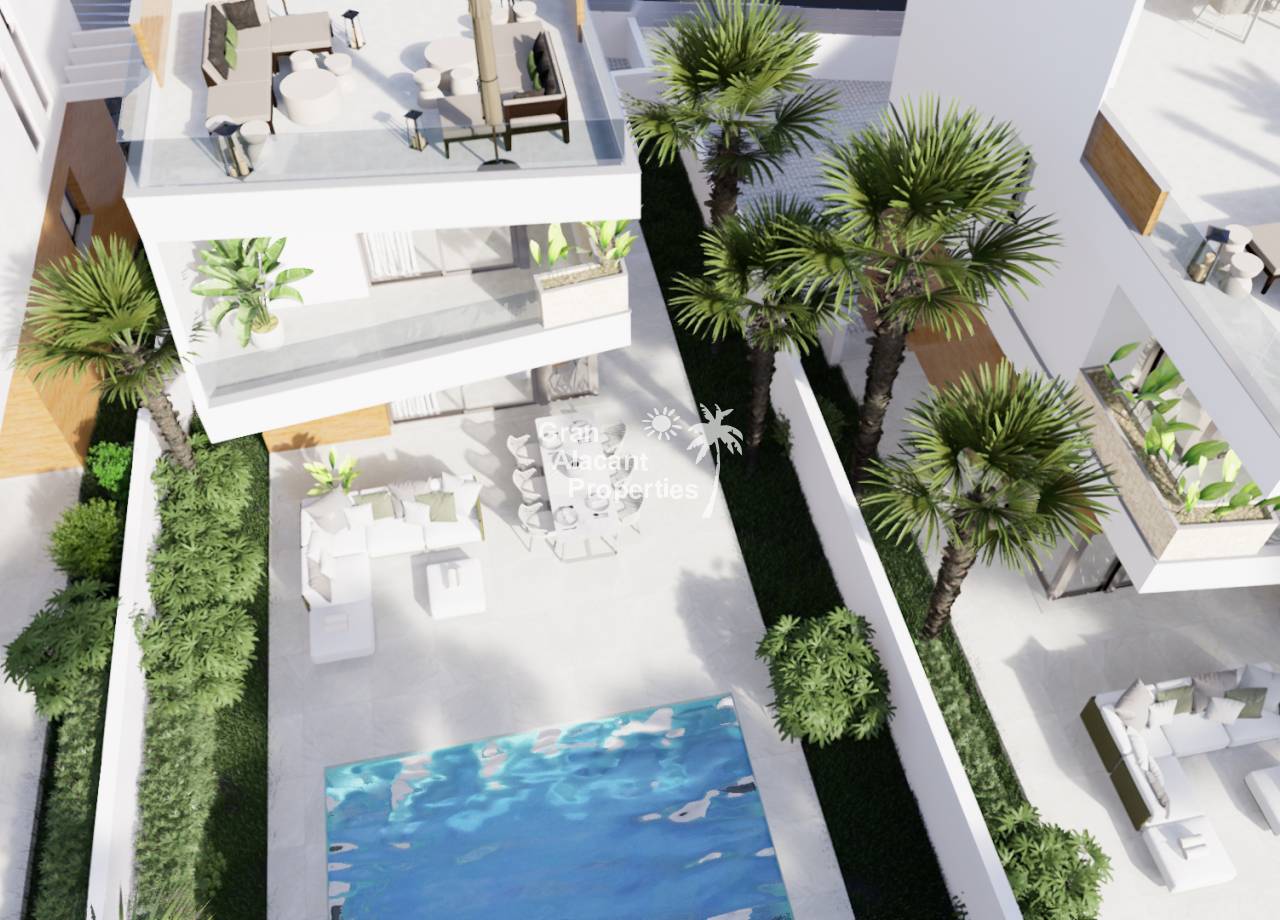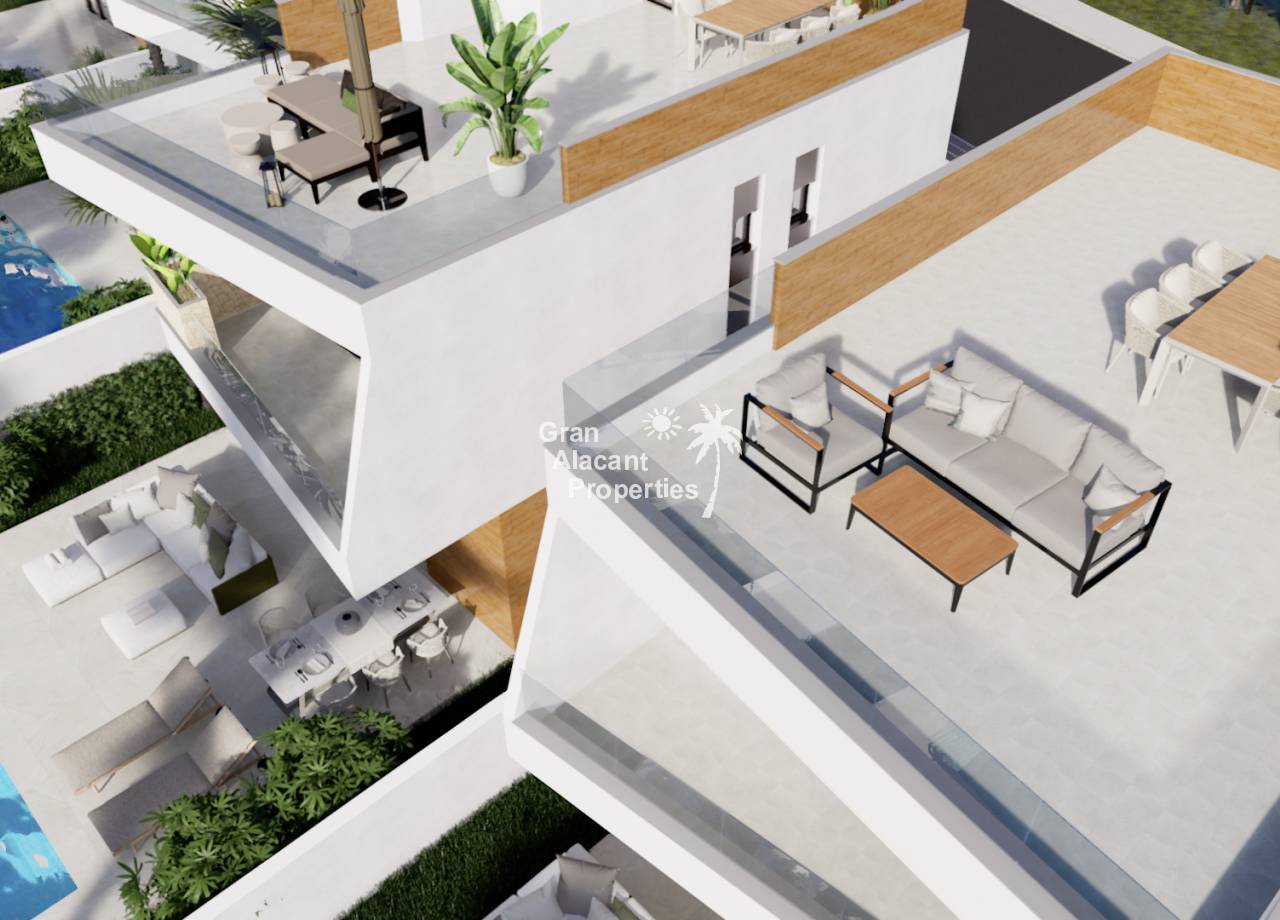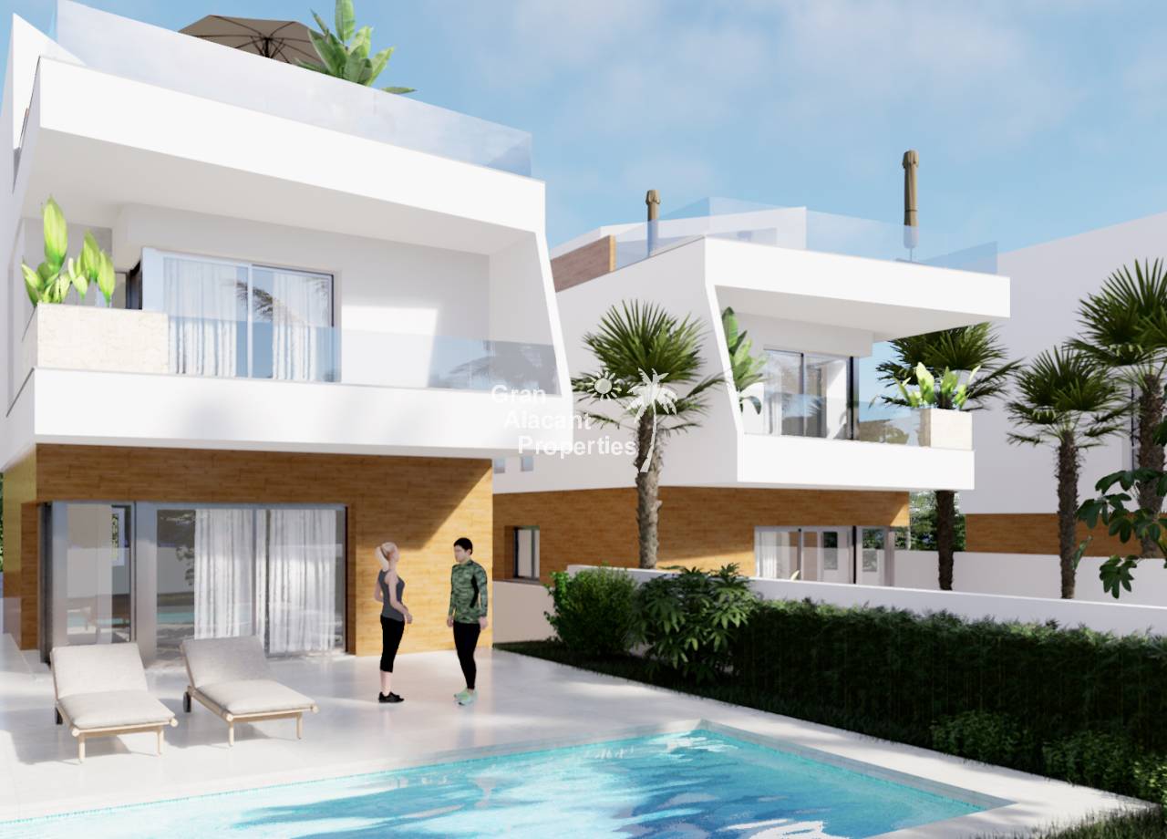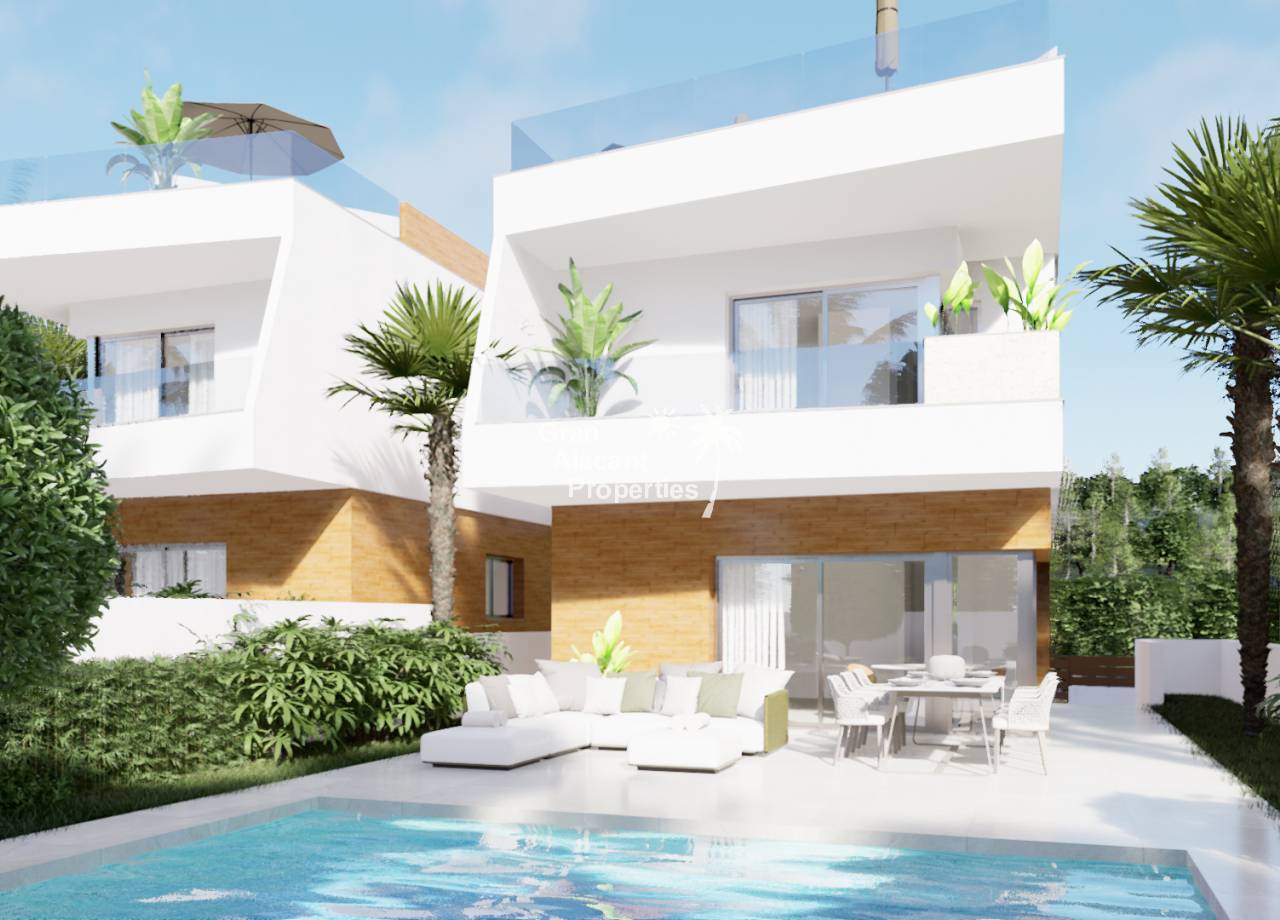 Introducing the exclusive new development in Pilar de la Horadada, consisting of 6 luxury villas situated frontline to the Lo Romero golf course and just minutes from the nearest beaches. Each villa offers 3 bedrooms and 3 bathrooms, plus a private plot including swimming pool, parking space, terrace with solarium and summer kitchen. These villas have been designed to offer a luxurious lifestyle in a peaceful and natural environment. Pilar de la Horadada, located on the Costa Blanca, is a typical Spanish village with all necessary amenities as well as an excellent network of cycle paths and walking trails. With easy access to the airports of Corvera (Murcia) and Alicante, these properties are ideal for both residential and investment purposes.