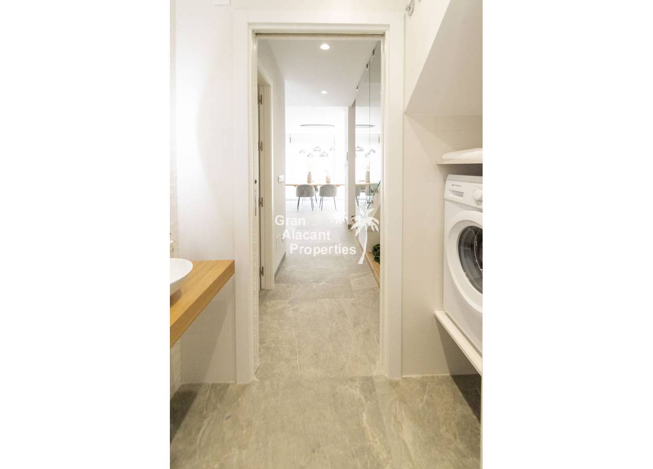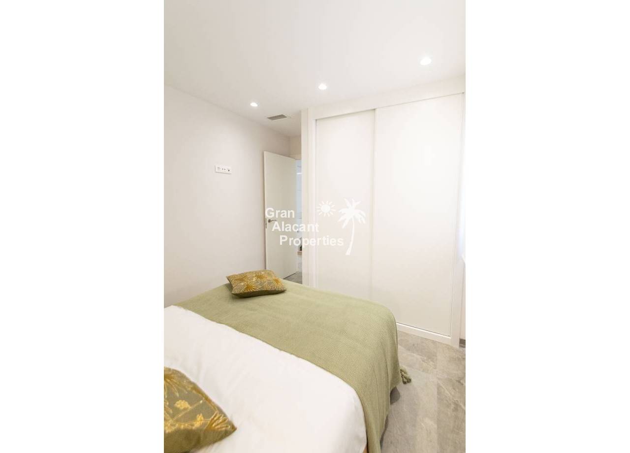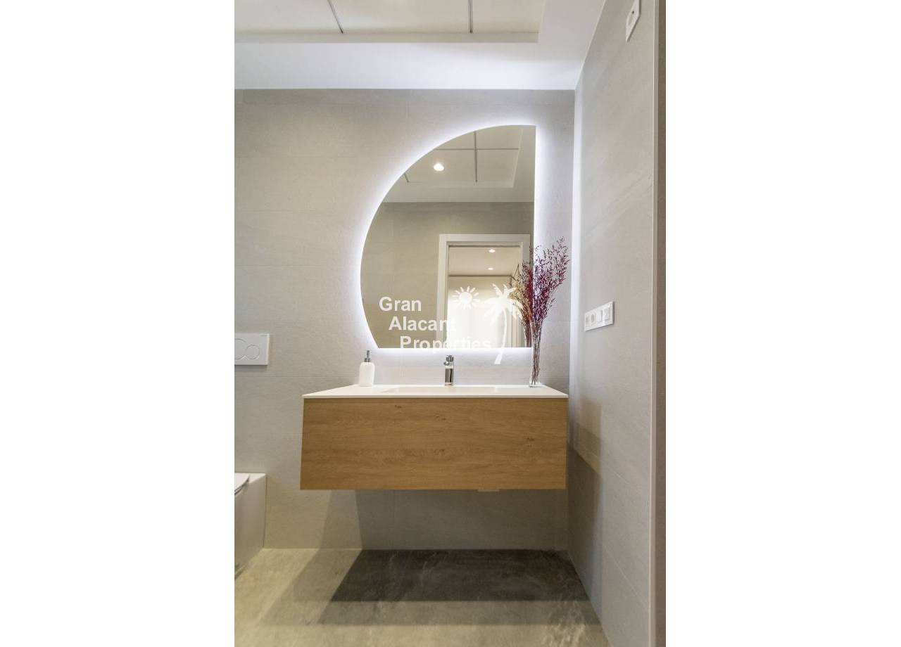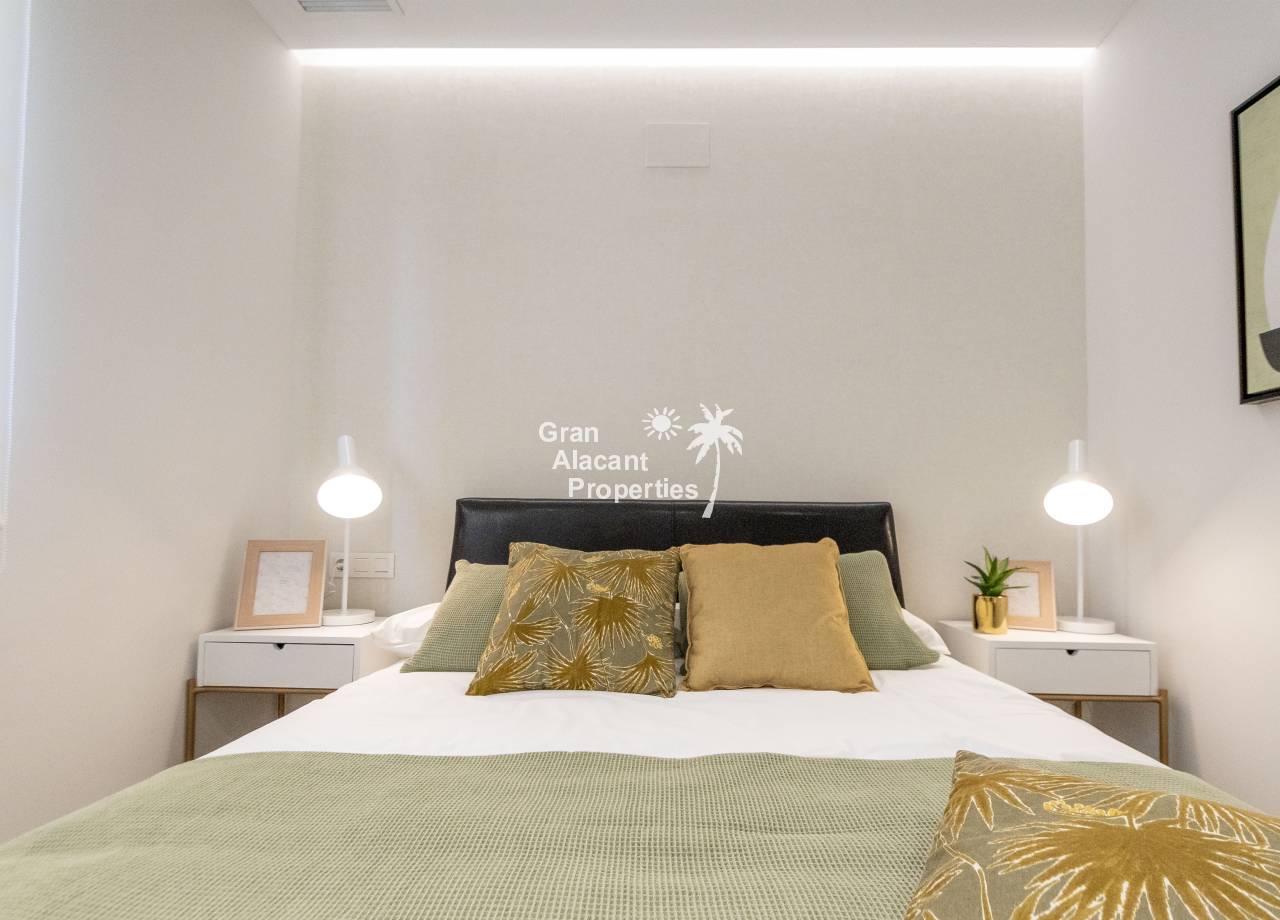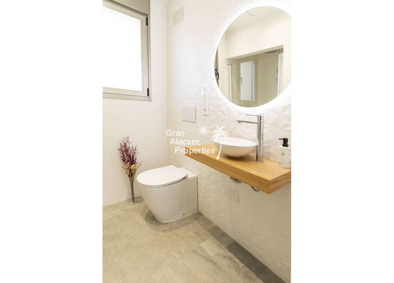 The interior of the new build villas in Pilar de la Horadada is designed to offer bright, modern and comfortable spaces. With a constructed area of 127 m² and 105 m² usable area, each villa has 3 double bedrooms and 3 complete bathrooms, equipped with high quality finishes. The open plan kitchen, integrated with the living room, is designed to be functional and elegant, facilitating daily living and entertaining. The large windows let in plenty of natural light, creating a cosy atmosphere and connecting the interior with the exterior. Built-in wardrobes provide ample storage space, while pre-installation for air conditioning ensures a comfortable environment all year round. Every detail has been carefully considered to offer a home that combines style and functionality.