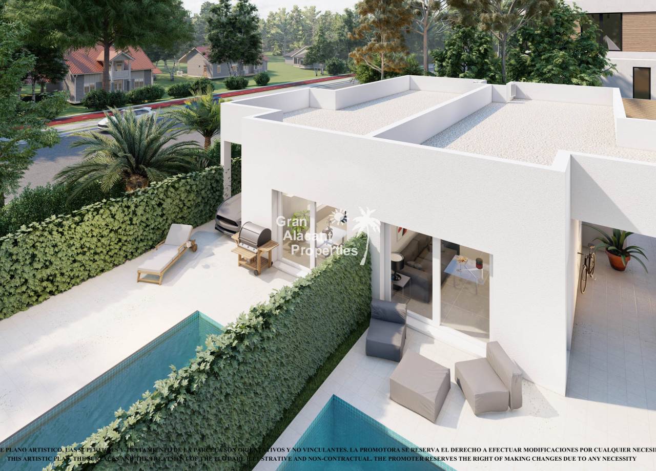 Located in the popular area of Los Alcazares on the Costa Calida. Here well planned and modern townhouses and villas are built in various models. There are residences in five different models, with two or three bedrooms and two bathrooms. In addition to this, there are spacious plots and beautiful patios and/or terraces.
