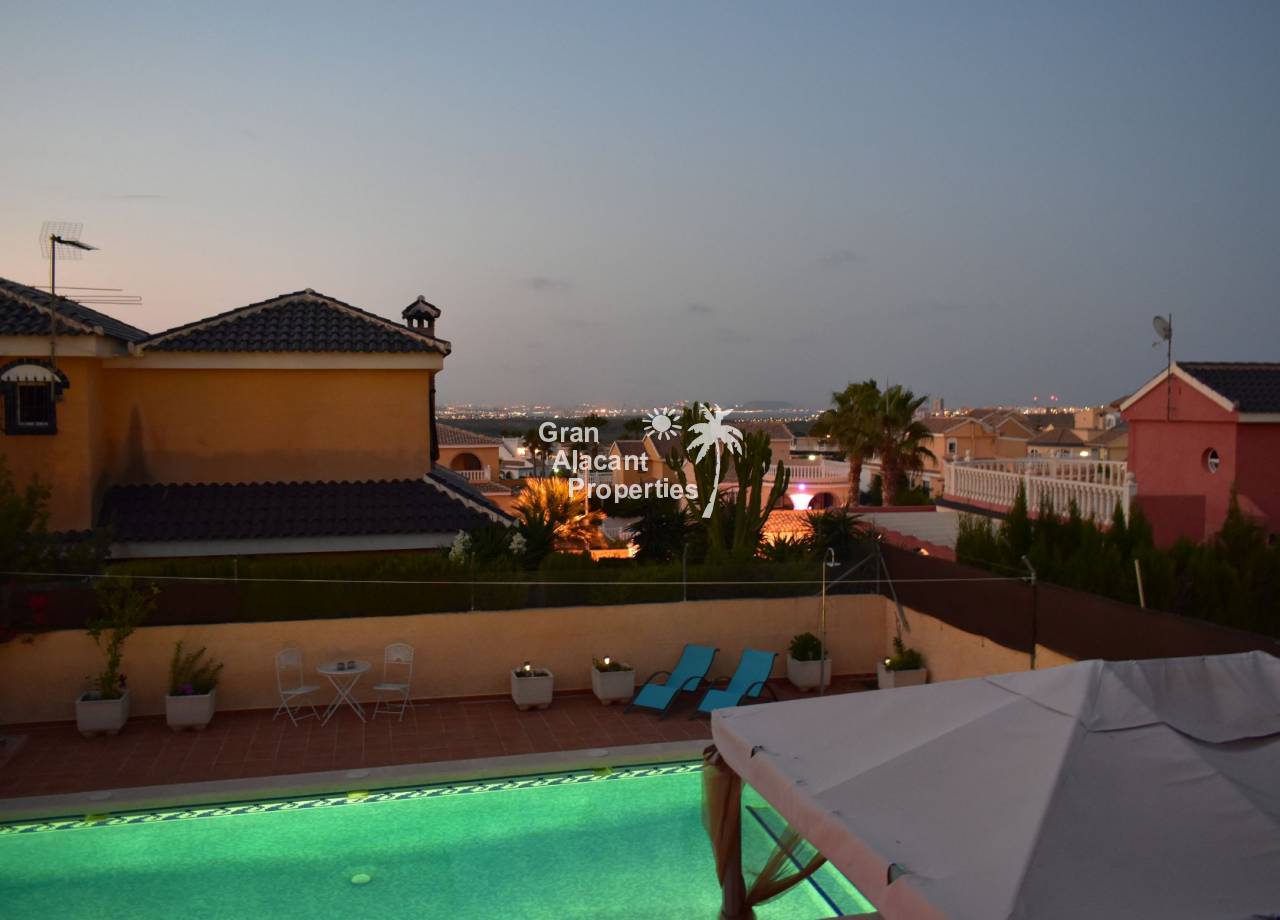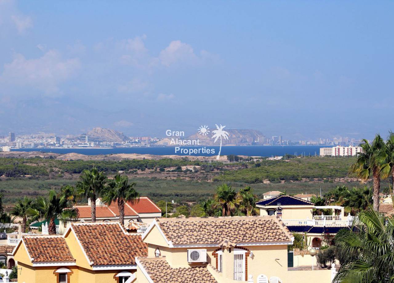 Beautifully modernized villa with pool in Gran Alacant with amazing views of Alicante, the countryside and the Mediterranean. We have sold hundreds of properties in Gran Alacant over our 12+ years of being in business and believe us when we say this 5 bedroom house is truly something special. The entire property has been updated with great care by the current owners bringing it up to a very high standard.