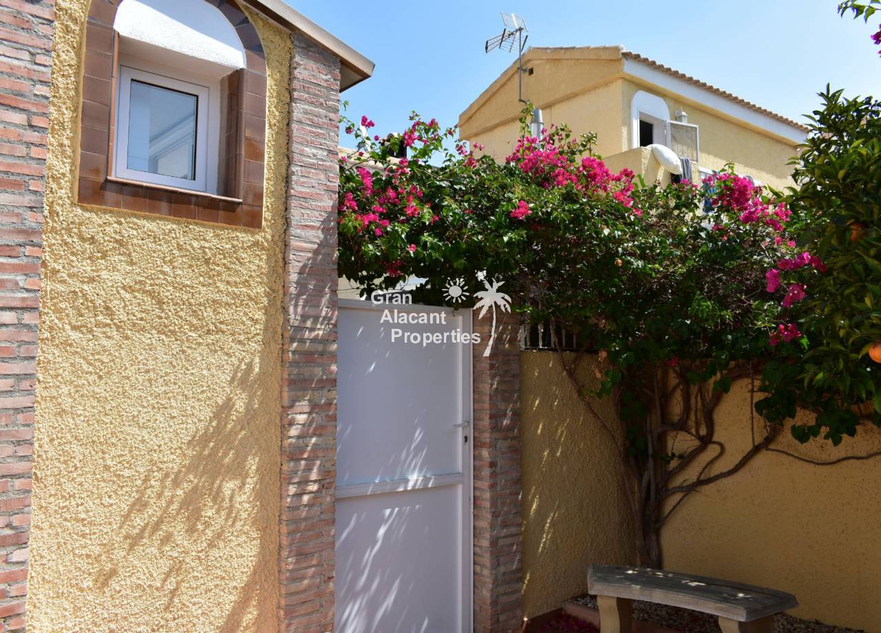 This villa has an unbeatable location in Lower Gran Alacant near one of the main commercial centers, Plaza Mayor. Supermarkets, restaurants, banks, bars, shops, public transportation, the dog park, and other services are within walking distance as is the local school, CEIP Vicenta Ruso, and the local church, Santiago Apostol. Nature lovers and bird watchers will be happy to know the Clot del Galvany is also close by offering acres of unspoiled wetlands to explore as well as ruins of Civil War bunkers. There are stops for the bus and tourist train close by offering an inexpensive way to get around the area. The beautiful sandy beaches of Los Arenales and Carabassi are about 25 minutes away on foot or 5 minutes away by car.