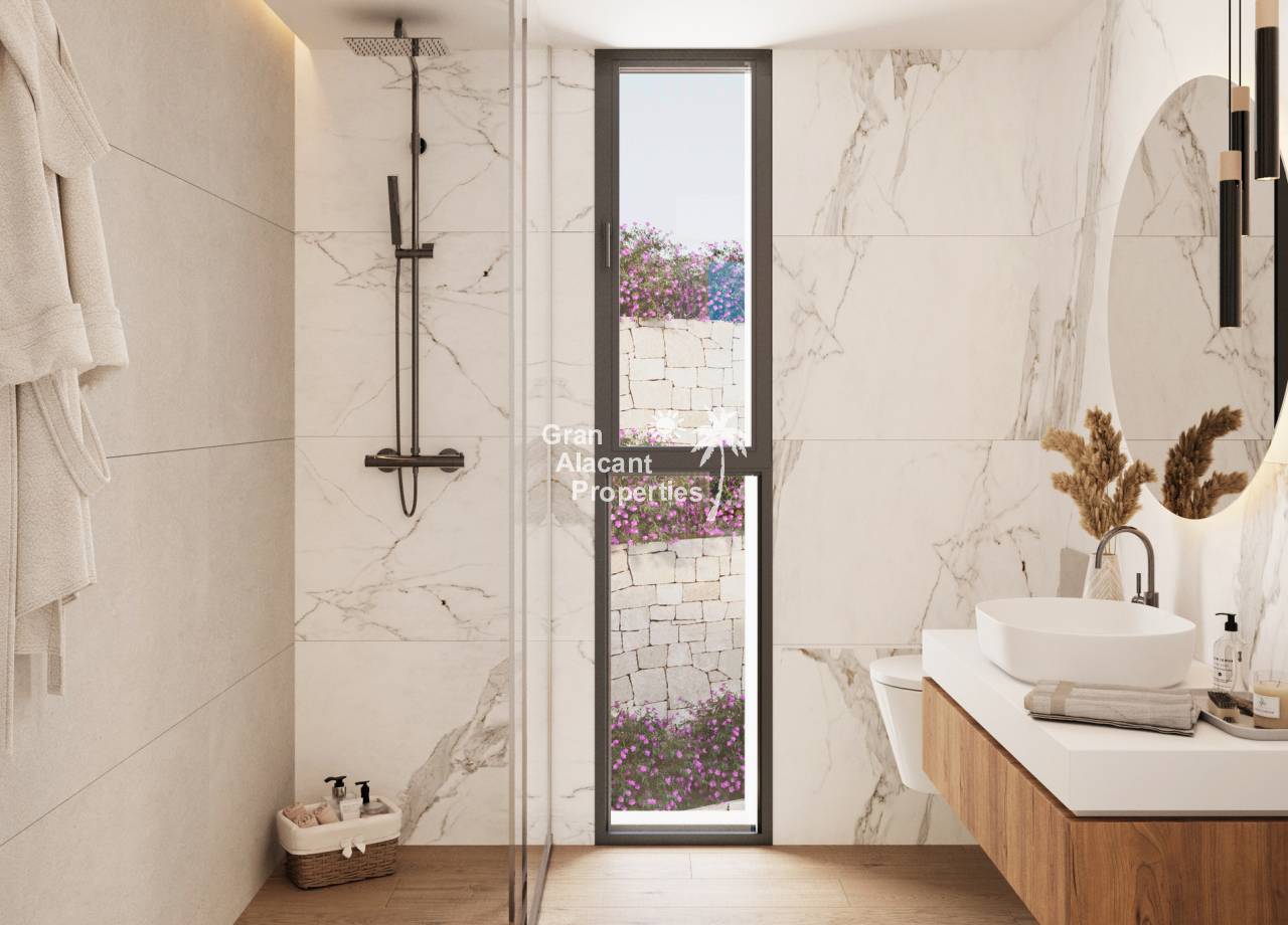 The interiors of the villas in Polop are designed for comfort and style. The open concept kitchens are fully equipped with modern appliances, including hob, oven, extractor hood and sink. The equally equipped bathrooms add a touch of luxury. All villas have a parking space included in the price. The interior spaces are spacious and bright, with high quality finishes that reflect a contemporary and functional design.