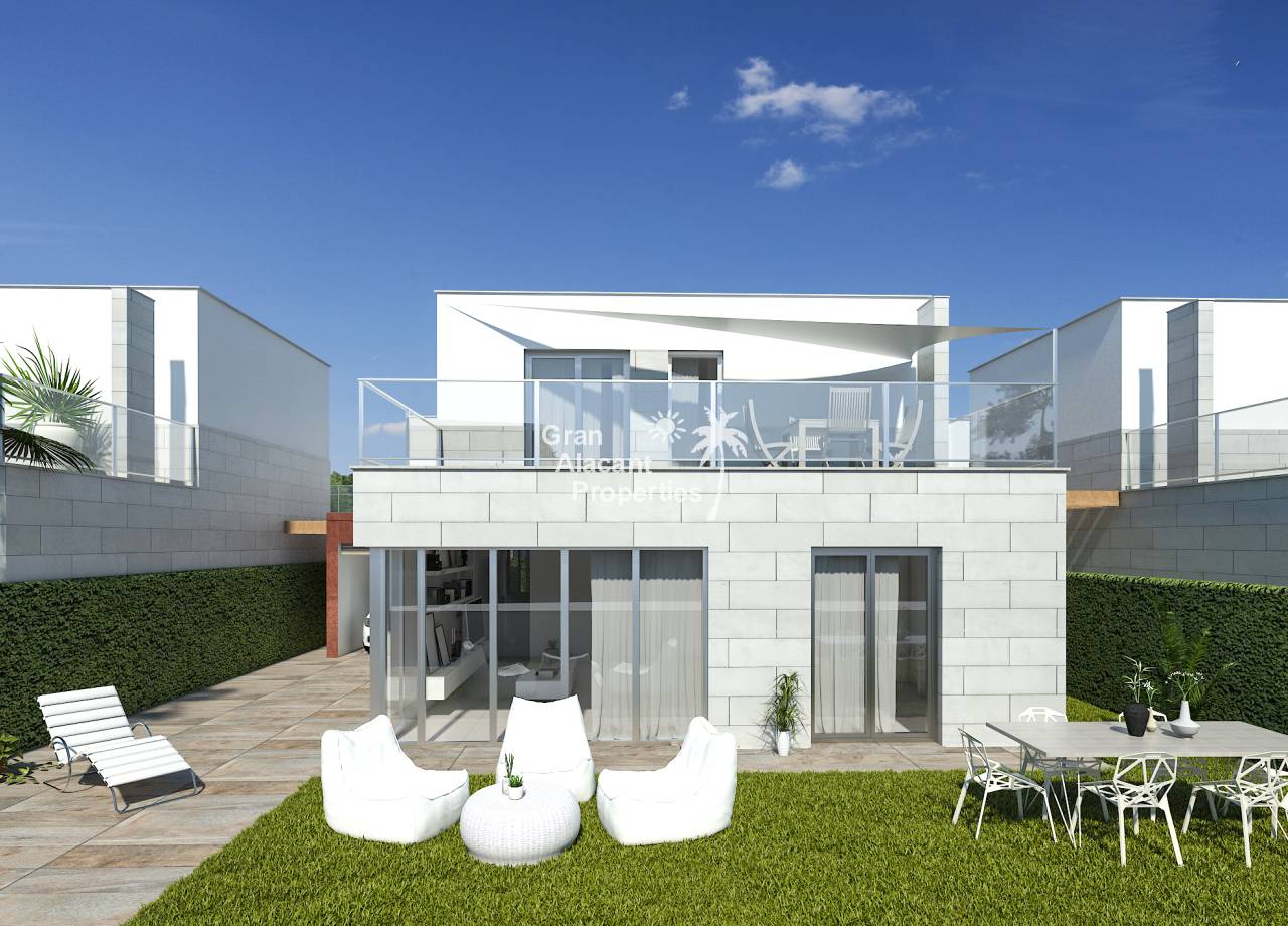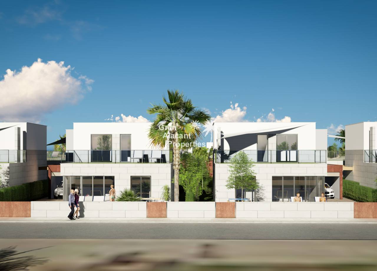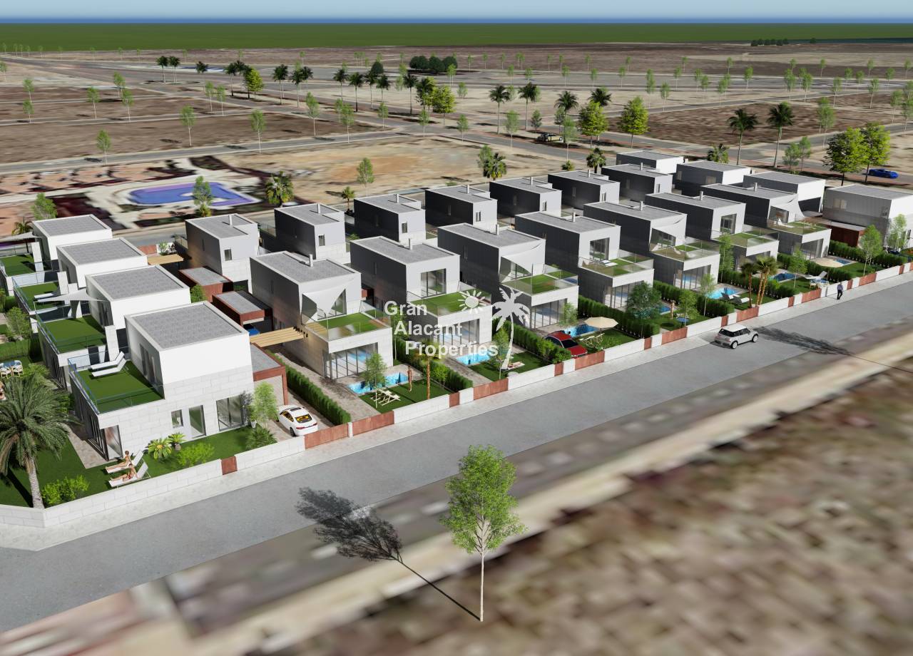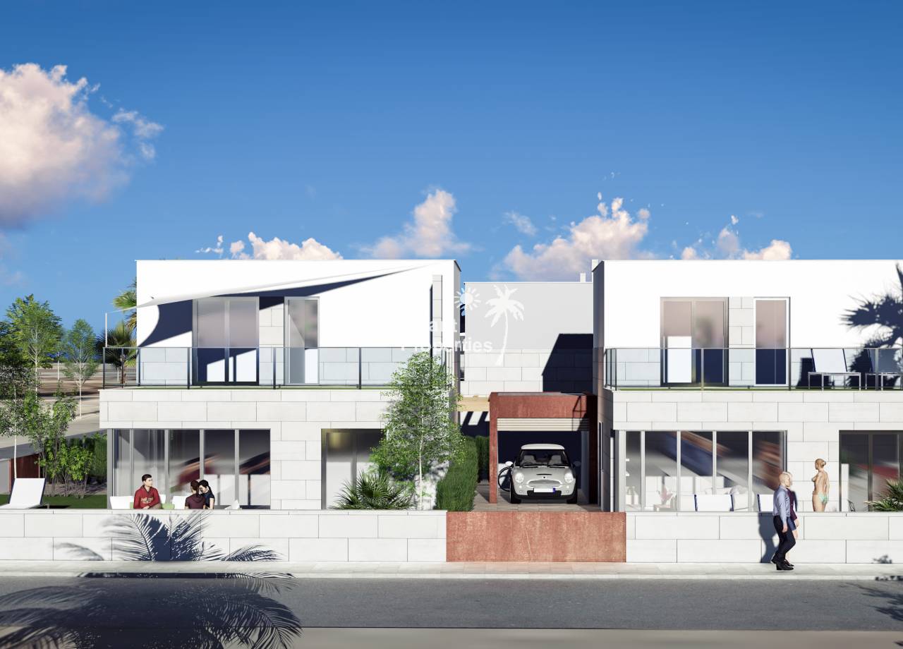 Introducing the exclusive Villas de Obra Nueva in Los Alcázares, a unique opportunity to enjoy a life of luxury and comfort on the beautiful Costa Cálida. These modern design villas feature 3 bedrooms and 2 bathrooms, a fully equipped open plan kitchen and a spacious living room, all finished to the highest standards. Each villa has a private garden with swimming pool, ideal for enjoying the Mediterranean climate, and a garage for added convenience. The kitchens are equipped with Siemens appliances, and all rooms have full installation of ducted air conditioning. Located just 1 km from the beach and close to several golf courses, these villas offer an exceptional lifestyle in a natural and well-connected environment. With easy access to the cities of Cartagena, Murcia and Alicante via the dual carriageway, and only 20 minutes from Murcia Corvera airport, these properties are perfect for both permanent residence and investment.