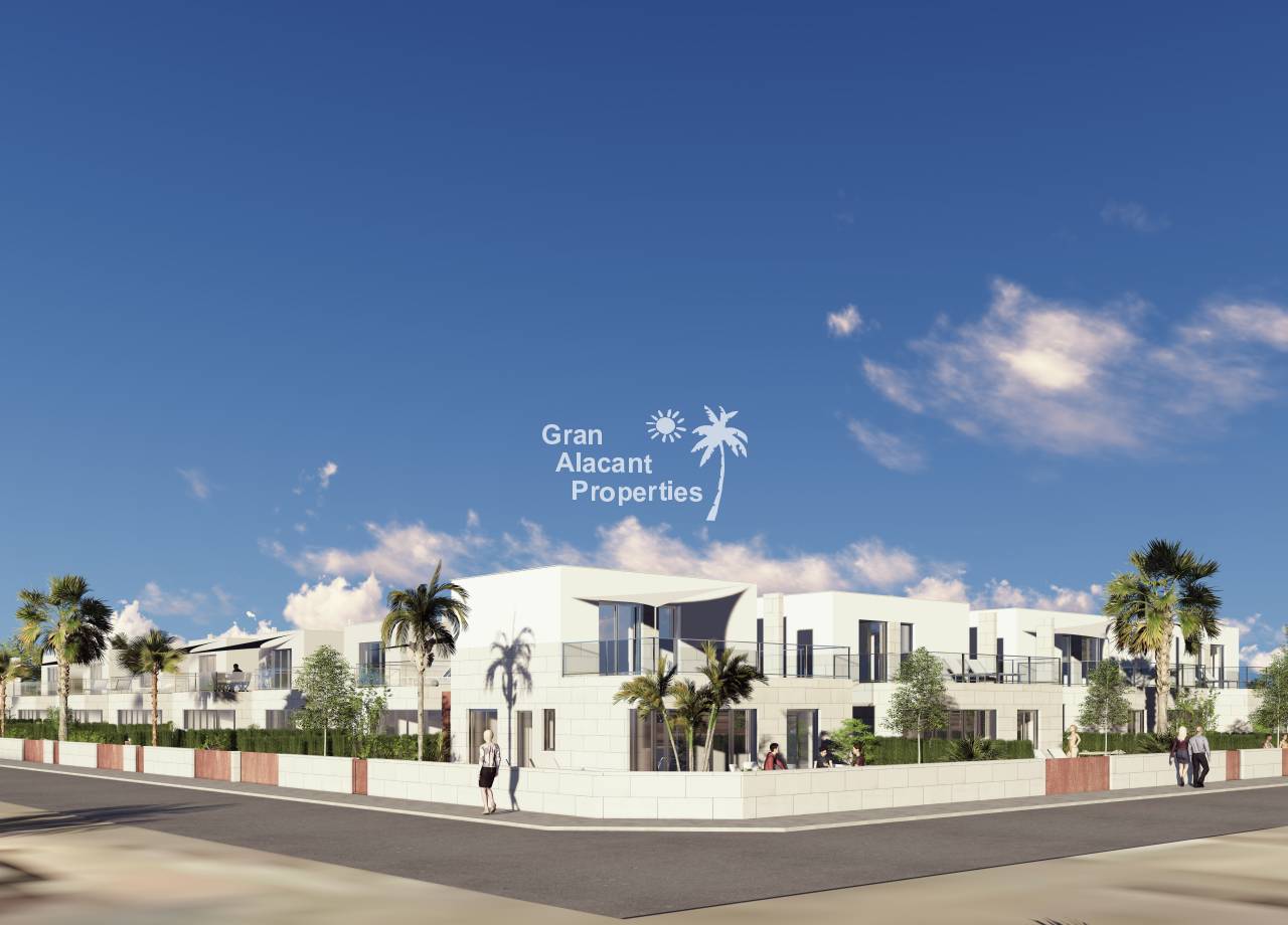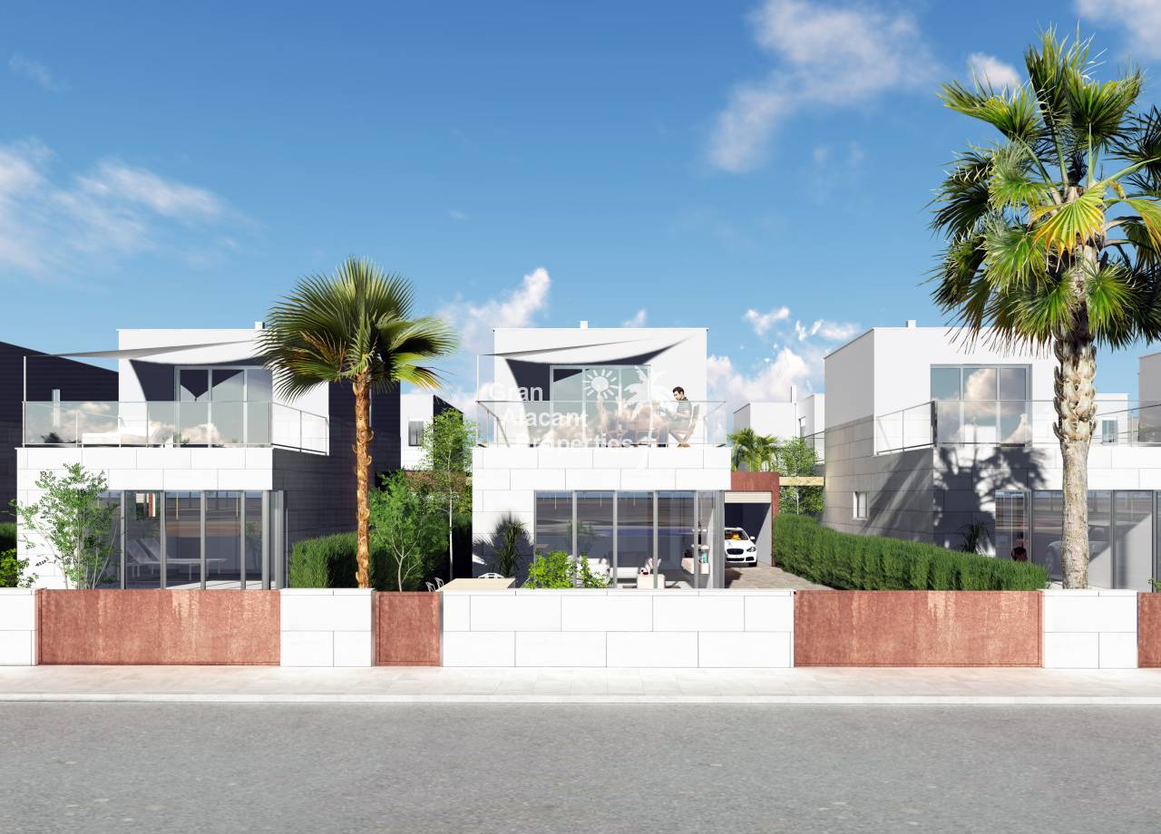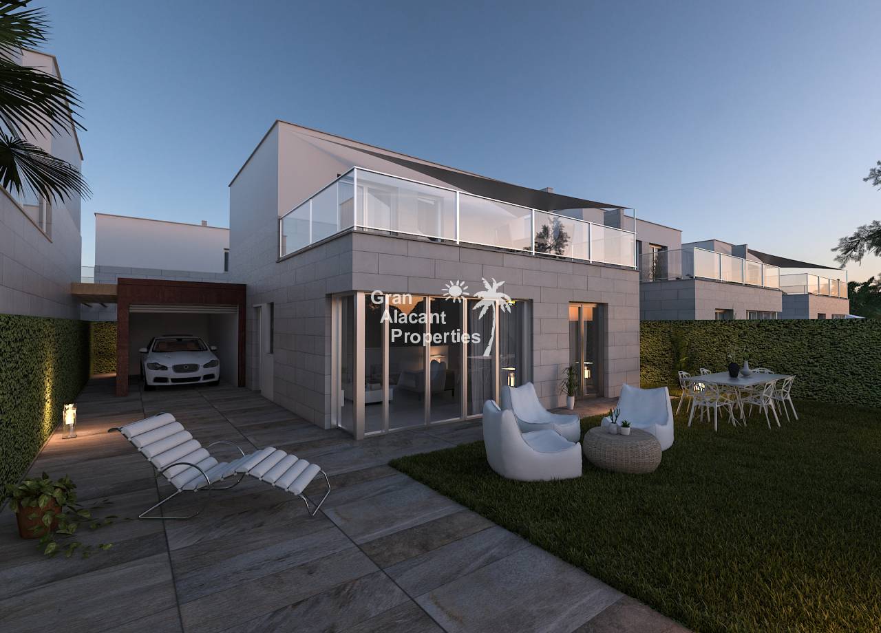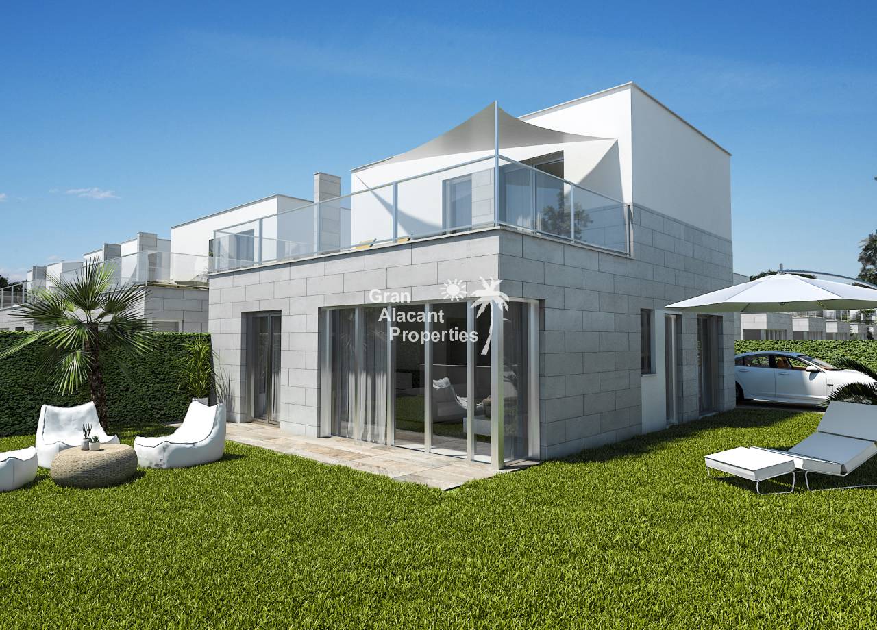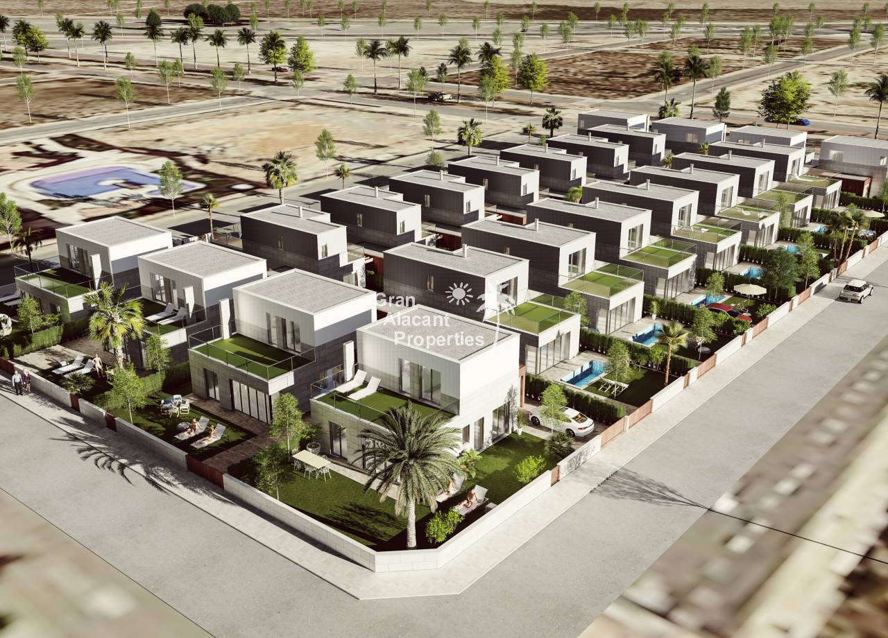 Introducing the exclusive Villas de Obra Nueva in Los Alcázares, a unique opportunity to enjoy a life of luxury and comfort on the beautiful Costa Cálida. These modern design villas feature 3 bedrooms and 2 bathrooms, a fully equipped open plan kitchen and a spacious living room, all finished to the highest standards. Each villa has a private garden with swimming pool, ideal for enjoying the Mediterranean climate, and a garage for added convenience. The kitchens are equipped with Siemens appliances, and all rooms have full installation of ducted air conditioning. Located just 1 km from the beach and close to several golf courses, these villas offer an exceptional lifestyle in a natural and well-connected environment. With easy access to the cities of Cartagena, Murcia and Alicante via the dual carriageway, and only 20 minutes from Murcia Corvera airport, these properties are perfect for both permanent residence and investment.