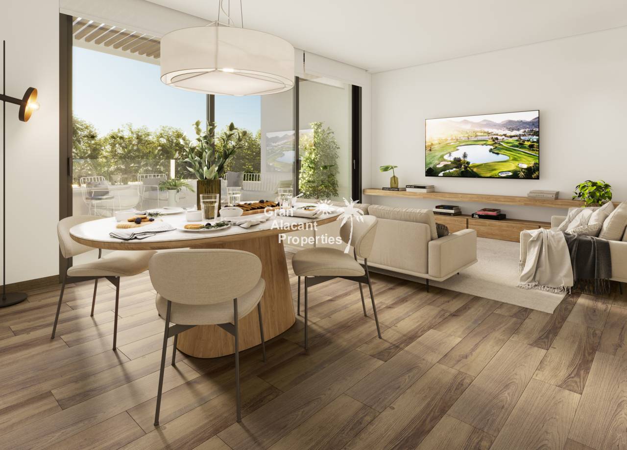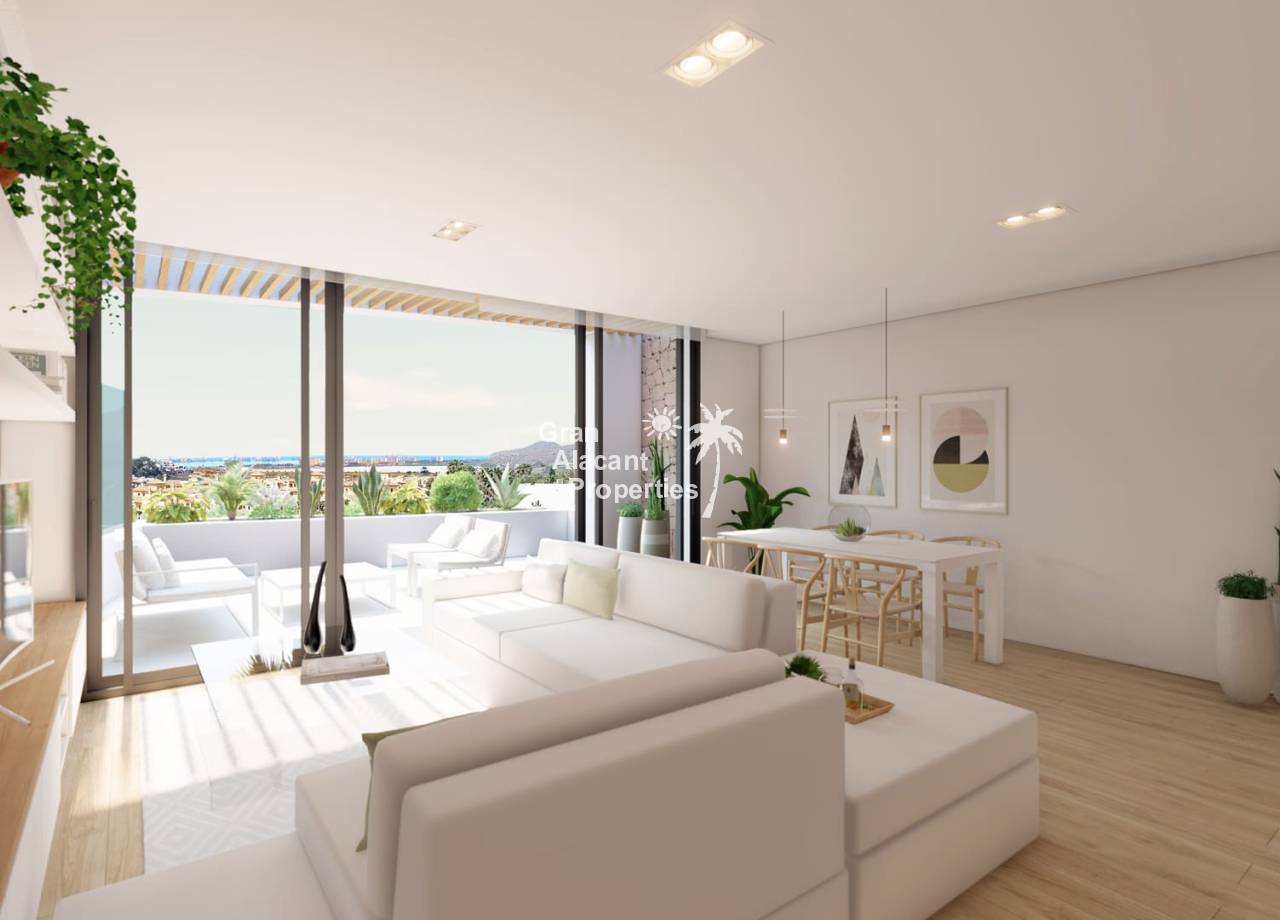 Discover the exclusive new development in La Manga Club Resort, comprising 42 modern and bright flats ideal for personal use or as an investment. This complex, located in one of the most prestigious areas of La Manga Club, offers stunning views of the Mar Menor from its spacious terraces and a communal swimming pool to enjoy the Mediterranean sun. Just a 5 minute walk to all the shops and restaurants, this centrally located development is the ultimate opportunity to purchase a new home in the resort. Sports rights are included and each home comes with a storage room, ensuring convenience and an active, luxurious lifestyle.