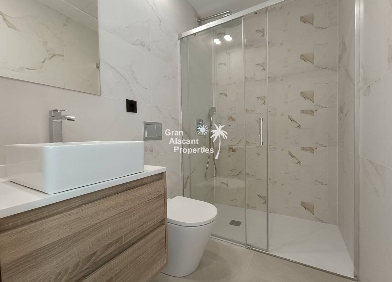 The villas are designed to offer a modern and welcoming atmosphere, with open-plan spaces and a functional layout that makes the most of natural light: Living-Dining Room: Open-plan design that connects the living room, dining room and kitchen, creating a feeling of spaciousness and comfort. Large windows that let in natural light and direct access to the garden and swimming pool. Finishes in neutral tones and high quality materials that provide elegance and warmth. Modern Design Kitchen: Fully equipped kitchen with top of the range appliances, including: Induction hob, Oven, Integrated microwave, Fridge with paneled freezer, Paneled dishwasher, Top quality porcelain stoneware worktop, Ample storage space, with contemporary and functional design furniture. Bedrooms: Three spacious bedrooms with fitted wardrobes, providing a functional and stylish space. The master bedroom has an en-suite bathroom and direct access to the terrace or solarium. Large windows allow natural light and views to the outside areas. Luxury bathrooms: Three complete bathrooms designed with top quality materials. Equipped with designer taps, glass screens and modern furniture. Underfloor heating for greater comfort during the colder months. Equipment and Technology: Fully installed ducted air conditioning (hot and cold). Aerothermal system for hot water and hot water for domestic hot water.