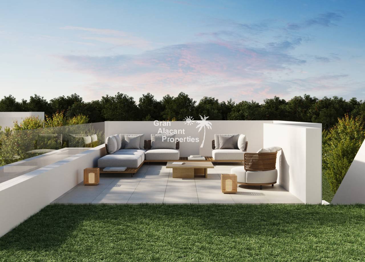Each villa is built on a 453 m² plot, surrounded by private gardens designed for enjoying the outdoors. A private swimming pool with a poolside bar becomes the heart of the outdoor space, perfect for relaxing or enjoying social moments. The terraces and the large 68 m² solarium offer spectacular views of the natural surroundings, allowing you to enjoy the Mediterranean climate all year round. In addition, the villas feature exterior LED lighting, automatic gates and a landscaped design that complements their contemporary style.