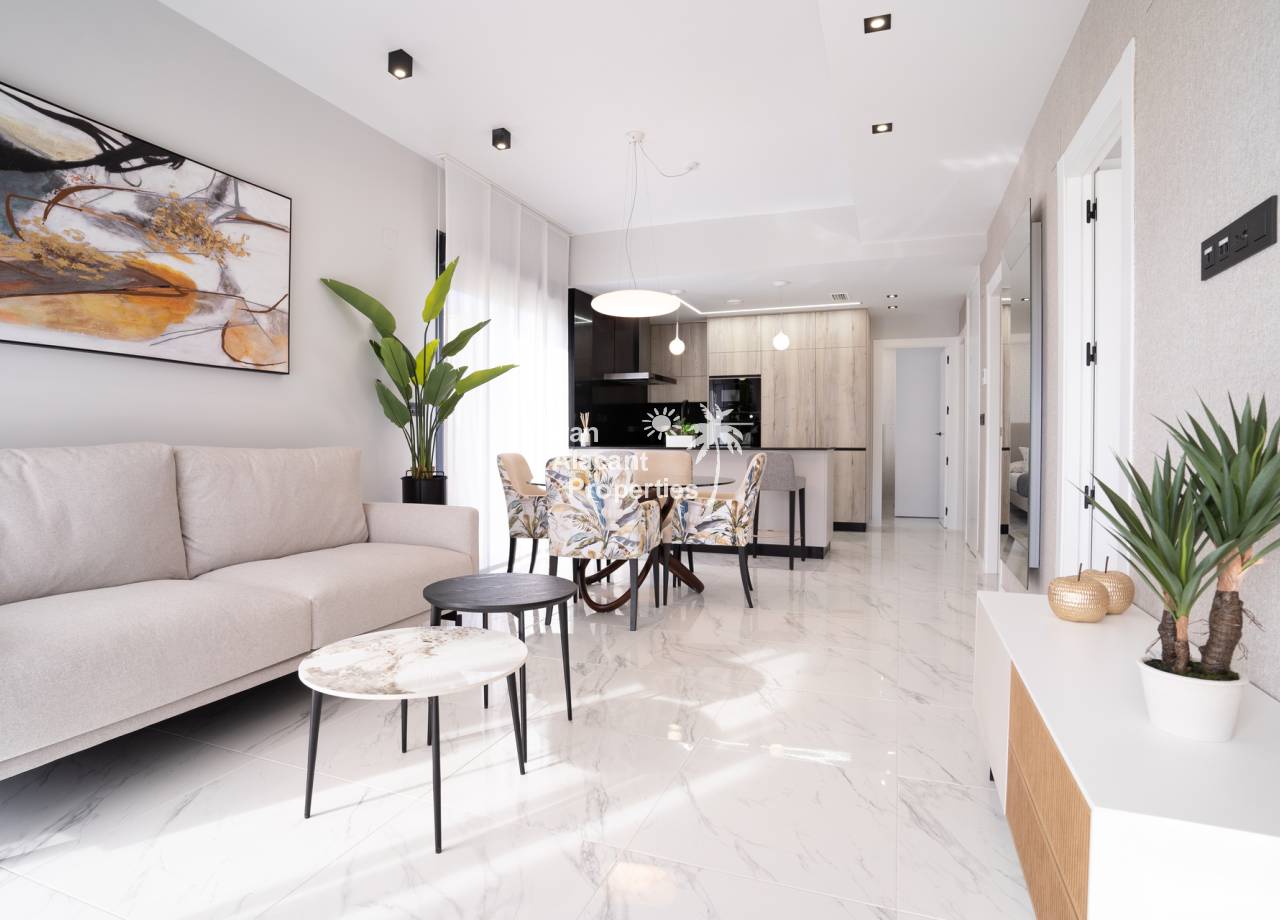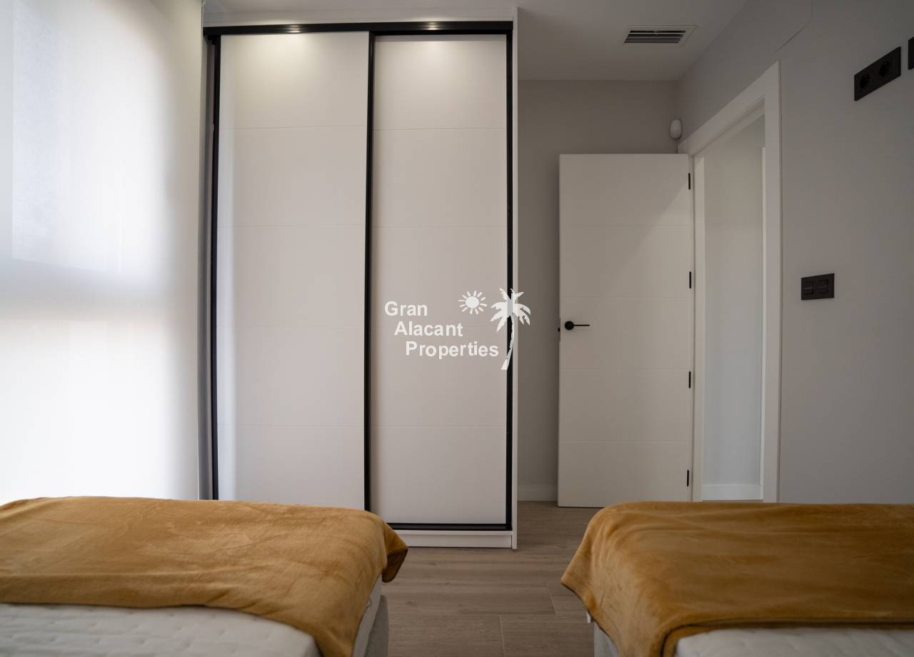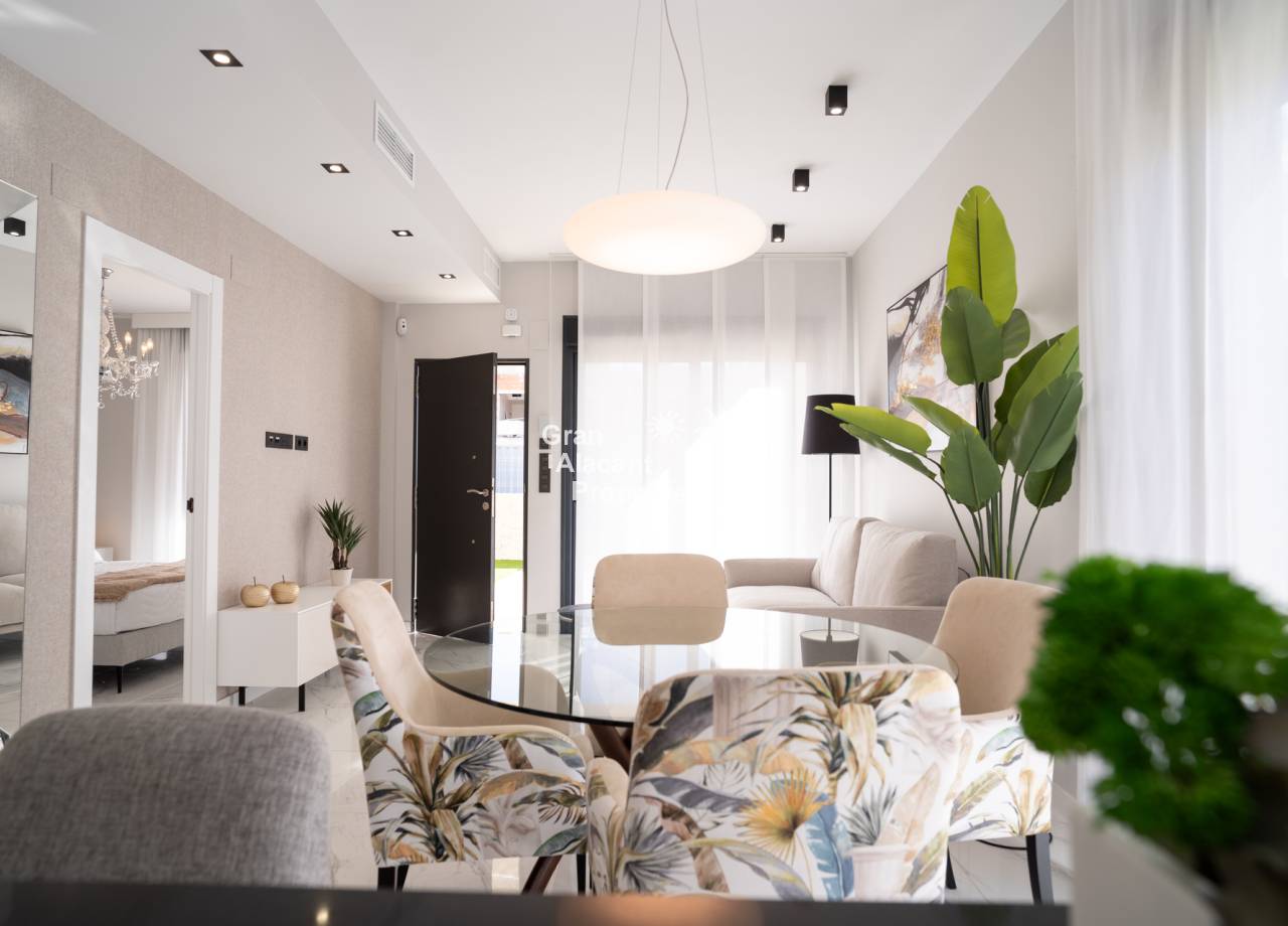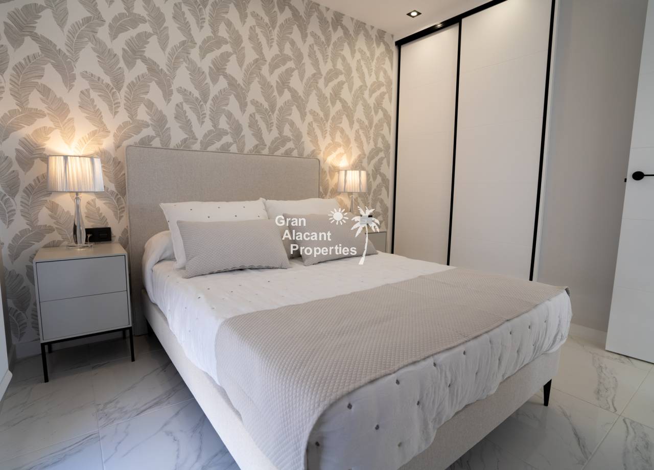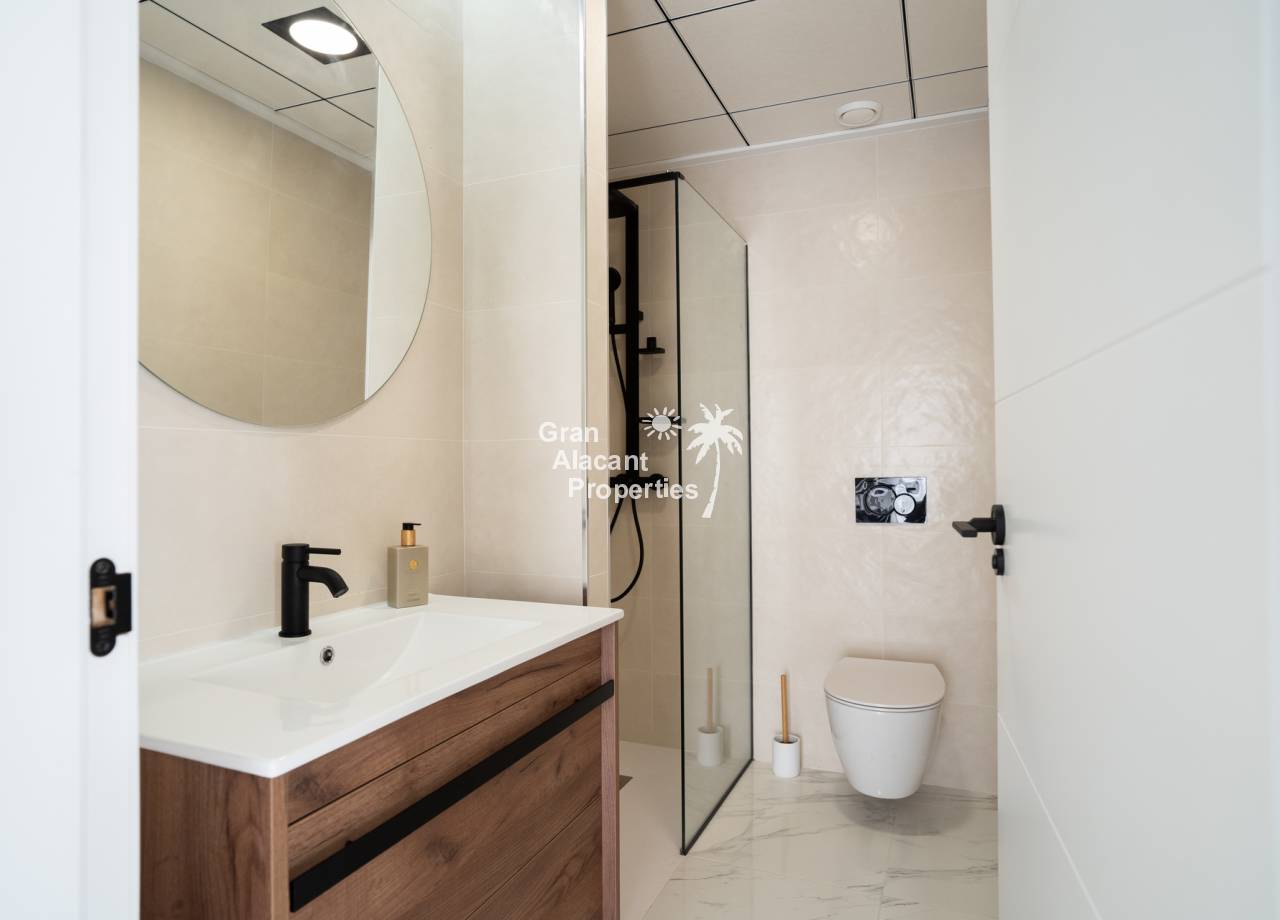 This newly built residential complex offers modern bungalows just 2km from the beach, ideal for enjoying life on the Costa Blanca. With 2 or 3 bedroom options, each property features high quality materials and modern finishes. The bungalows are offered in ground floor with private garden or top floor with private solarium, including exclusive details such as pre-installation of air conditioning, aluminium exterior carpentry and aerothermal system for energy efficiency.