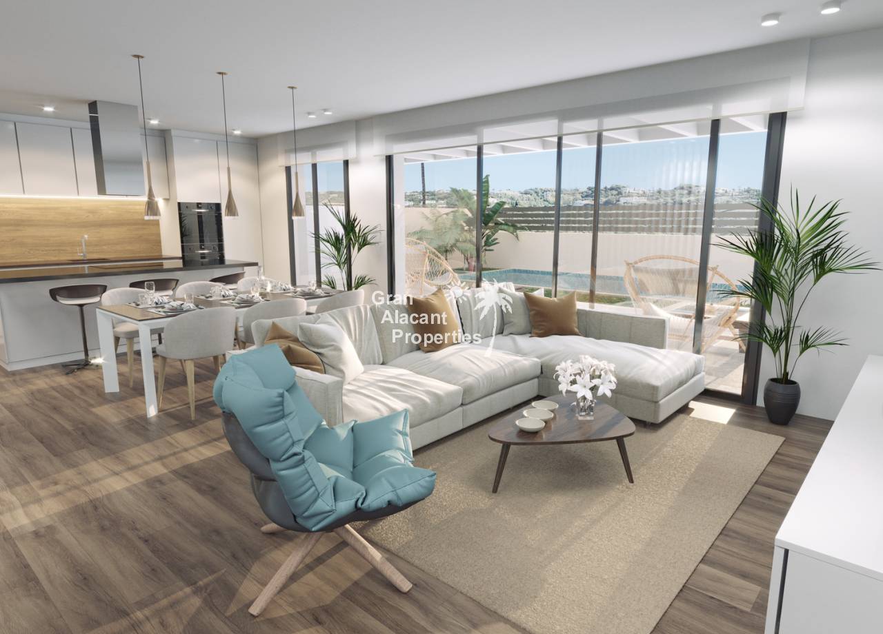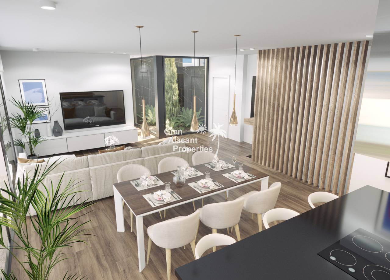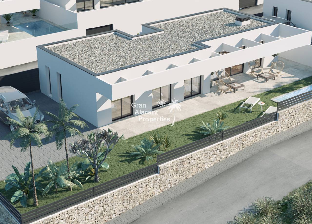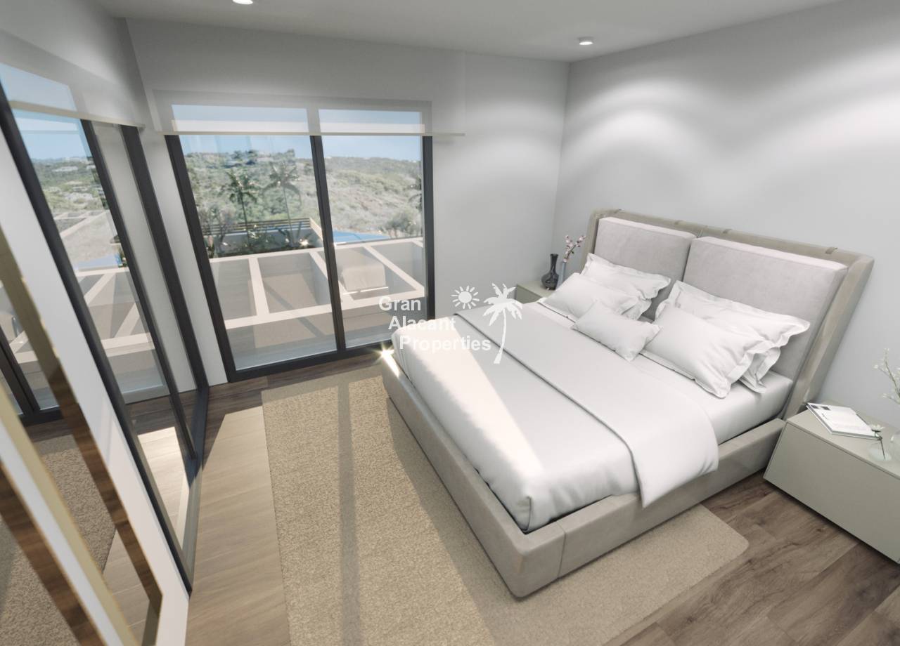 The villas stand out for their contemporary and elegant design, blending harmoniously with the natural surroundings of the Costa Blanca. The facades feature clean, minimalist lines, complemented by glass balustrades that allow for uninterrupted views. The extensive private gardens are designed to offer tranquillity and privacy, with a private swimming pool that includes lighting and a beach area with paving or artificial grass. In addition, some villas have the option of an optional solarium, perfect for relaxing and enjoying the Mediterranean sun.