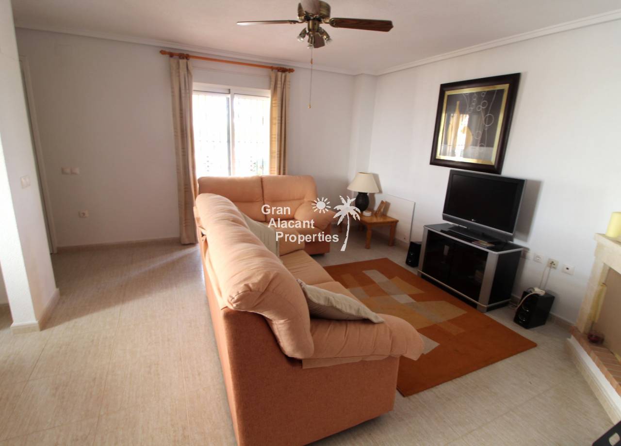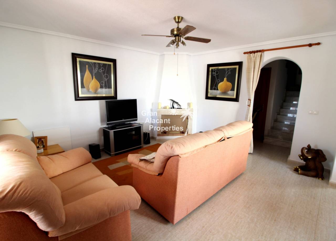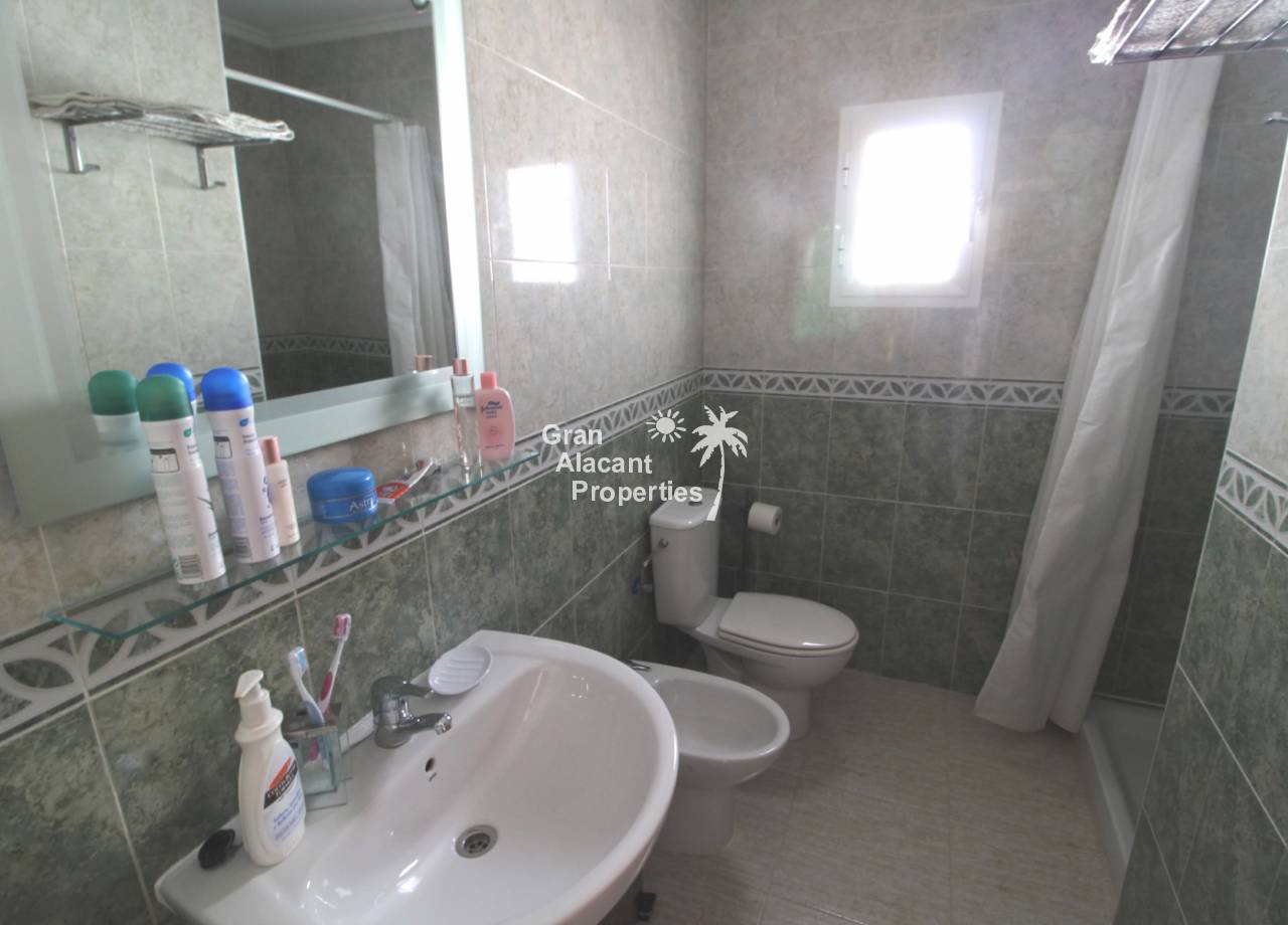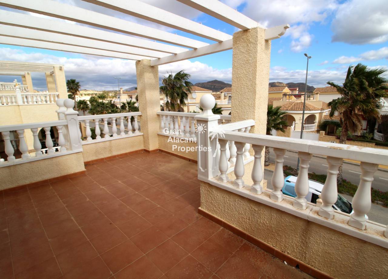 This detached 228 m² “Estrella” style villa is located on a 250 m² plot (approx) with commanding views over mountains, countryside and sea towards Alicante city from the solarium and balcony. Sitting in its own low maintenance gardens, this villa offers plenty of outside space for those barbecues and entertaining or just relaxing in the sun. To cool off there is your very own private swimming pool open 24 hours a day every day.