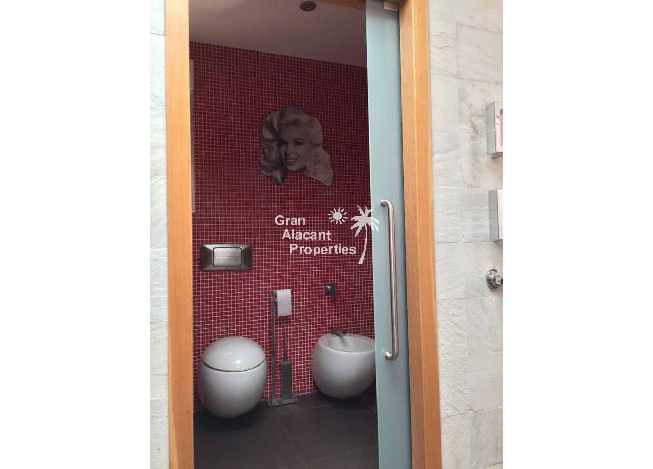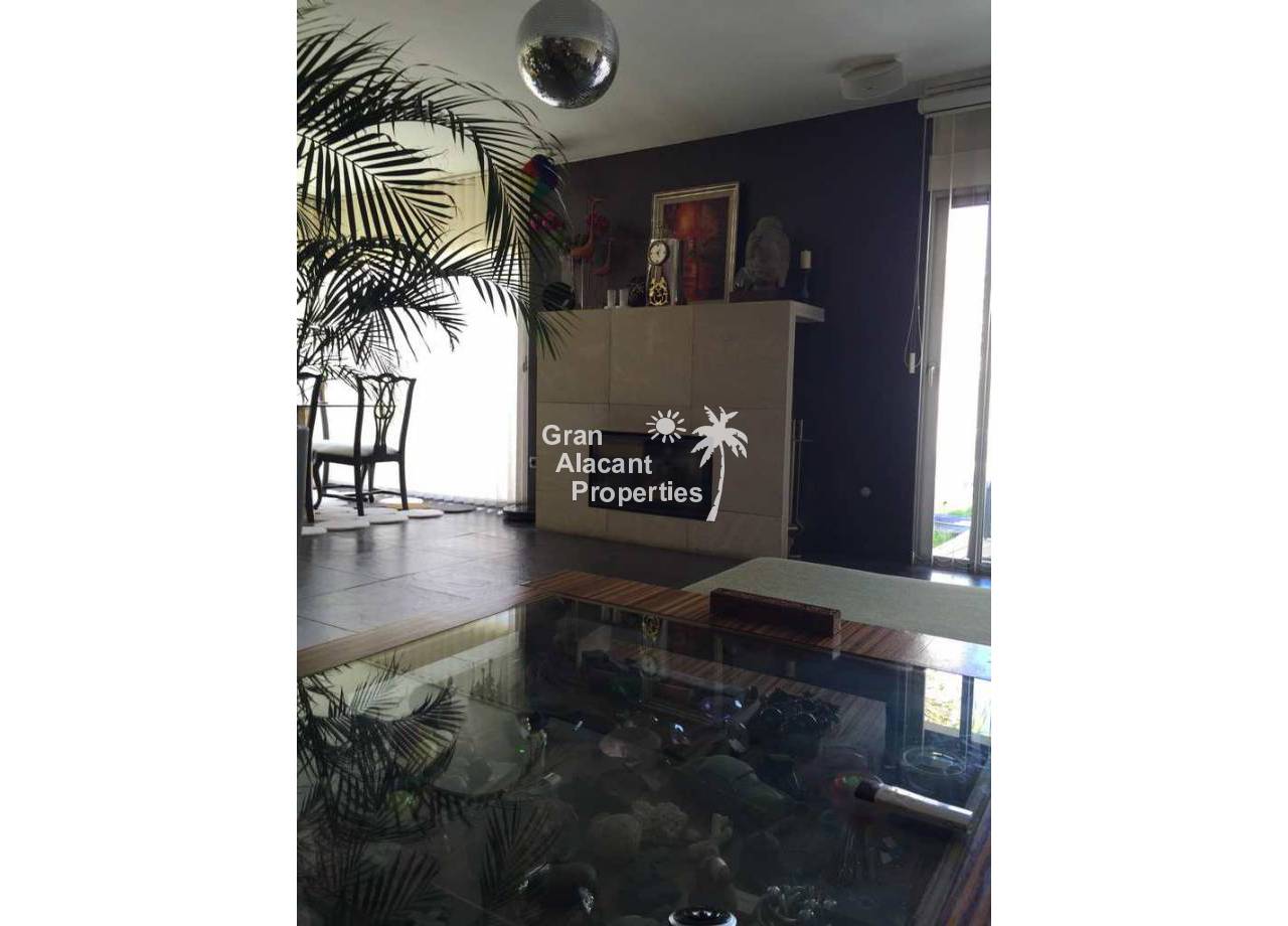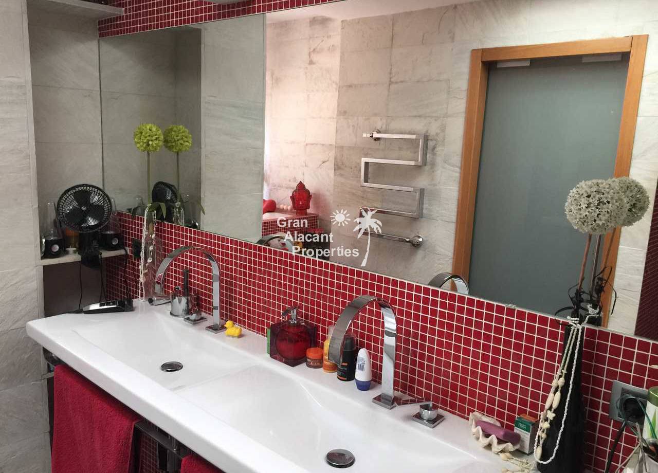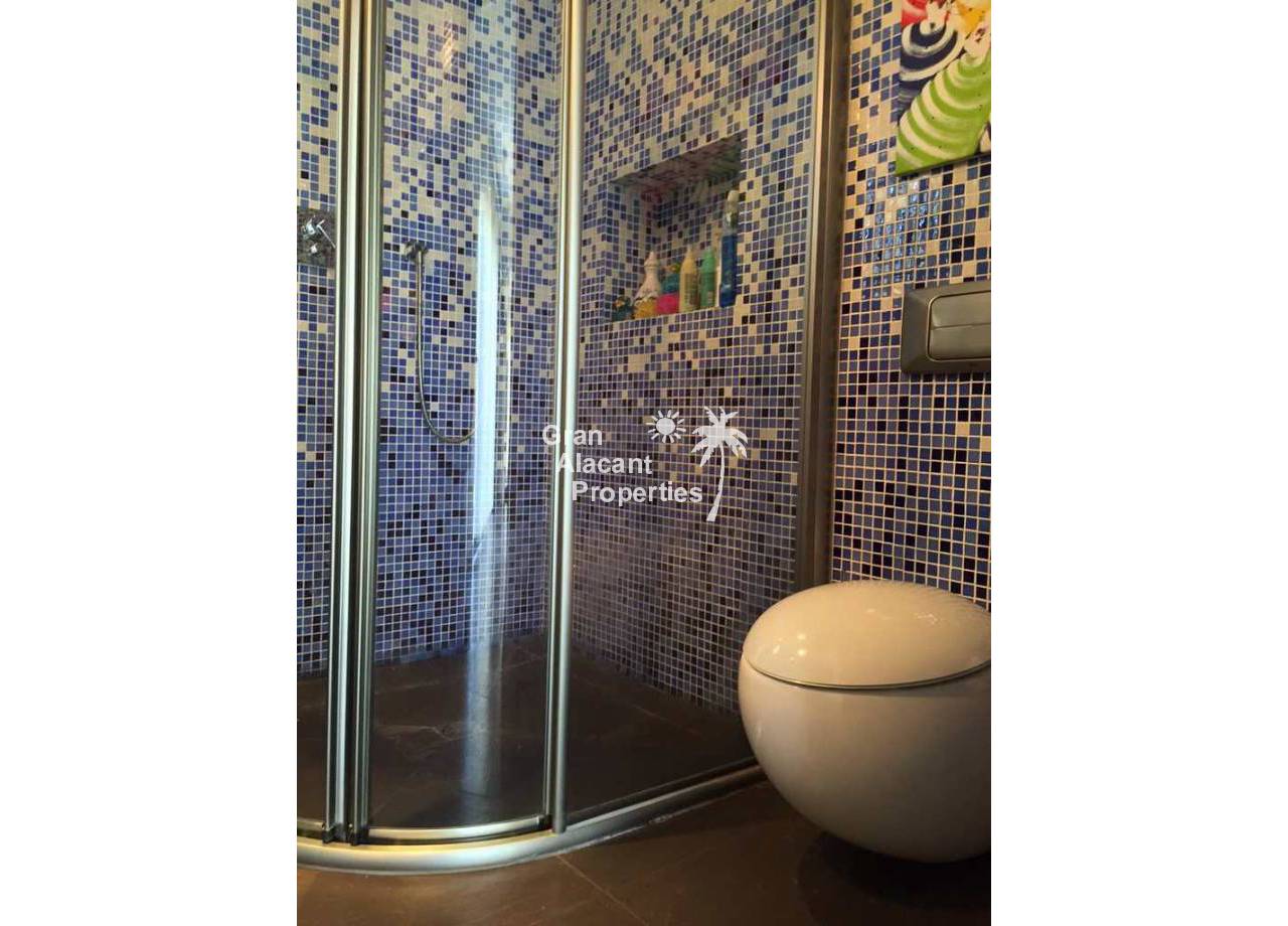 Sitting on a large urban plot of 850 m2, the low maintenance garden is landscaped with a variety of mature trees and plants including citrus and bougainvillia. High walls provide plenty of privacy. There is a lovely modern pool surrounded by a wooden deck with a garden shower. The garden features a pond, lawn, tiled patios plus a barbecue area for entertaining friends and family. A beautiful modern pergola acts an outdoor living room offering a sheltered spot to sit with a book or enjoy la hora del vermut. There are wonderful views of the mountains and green areas as well as the city of Alicante including Alicante Bay, the Med and Santa Barbara Castle. There is a garage and there is parking on the plot for several cars and automatic drive gates for access.