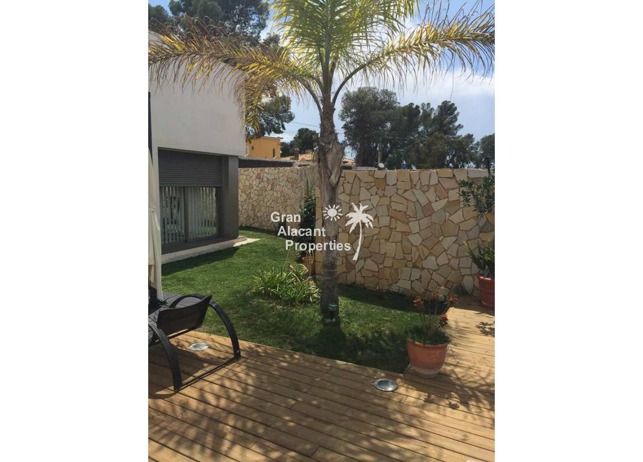 Beautiful detached luxury villa with pool in the exclusive Cabo Huertas neighbourhood of Alicante on Spain's sunny Costa Blanca. Cabo Huertas is one of Spain's best addresses and is probably the most elite neighbourhood on the Costa Blanca. This spacious and modern property offers over 320 m2 of living space including a large living room with fireplace that opens onto the garden, perfect for entertaining. There is a well-equipped independent kitchen with space for a breakfast table, pantry and access to the garden as well as a laundry/utility room and storage. The large master bedroom has an en-suite bathroom with Jacuzzi, dressing room and built-in wardrobes. There are two additional bedrooms and a family bathroom. In the basement there is an additional bedroom and bathroom. Built in 2010, the house is in impeccable condition and features finest quality materials and finishes. The property has Climalit double-glazed windows, security door, natural slate flooring, automatic security shutters, solid wood trim, Sahara stone cladding, sound system and more.