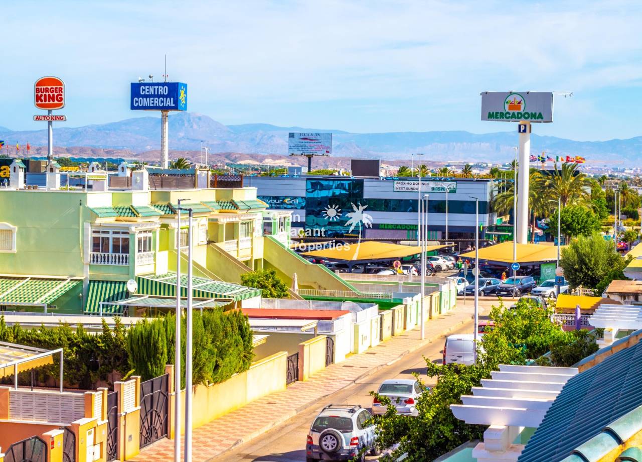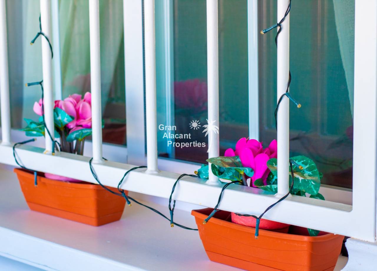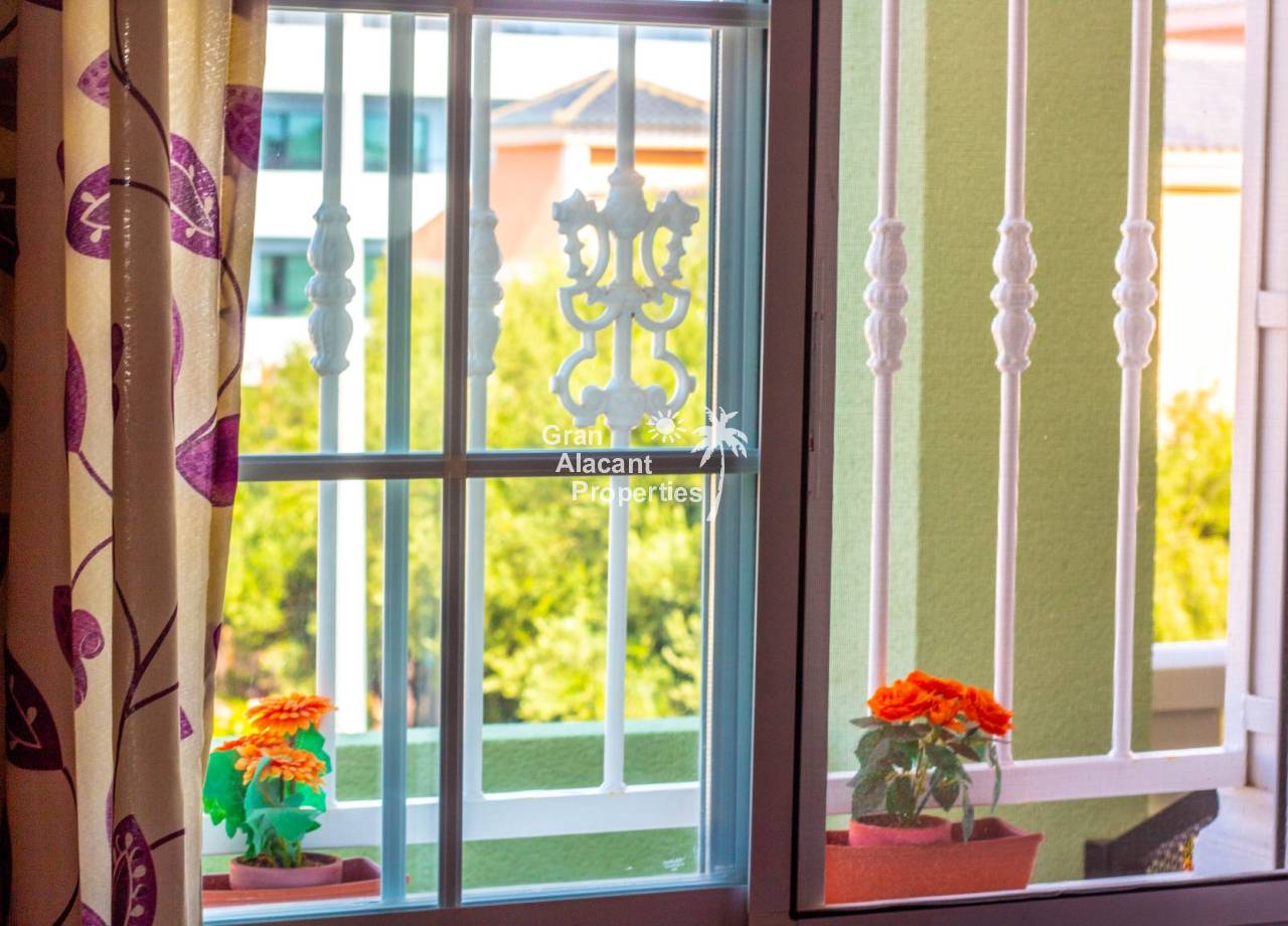 This property has an unbeatable Puerto Marino location in Lower Gran Alacant. The main commercial center Gran Alacant Centro Comercial with a Mercadona supermarket, loads of shops, bars and restaurants is just a few minutes walk away. There is also a recently renovated LIDL and a Consum close by.  A little further down the road, you will find the local church, dog park, several supermarkets, banks, dentists and much more. Nature lovers and bird watchers will love the Clot del Galvany natural park offering acres of unspoiled wetlands to explore as well as ruins of Civil War bunkers. The beautiful sandy beaches of Carabassi and Los Arenales are a 30 minute walk away or you can avail yourself of the readily available public transport which includes a circulator bus and tourist train. At the commercial center, you will also find bus service to Alicante and Santa Pola as well as a taxi stand.