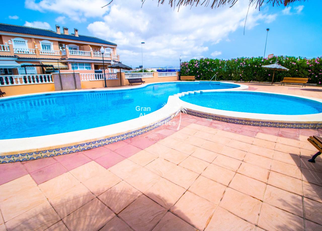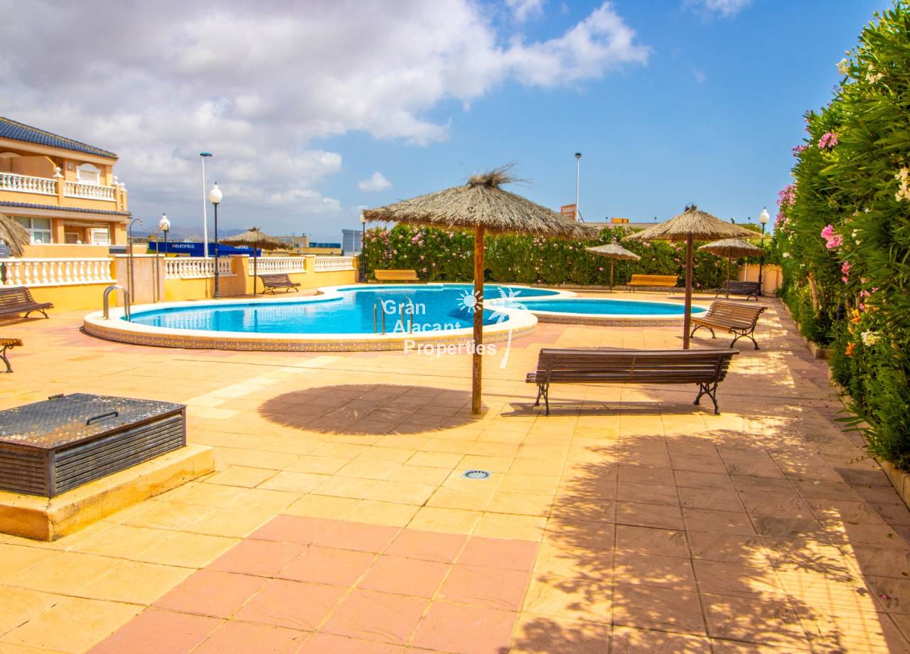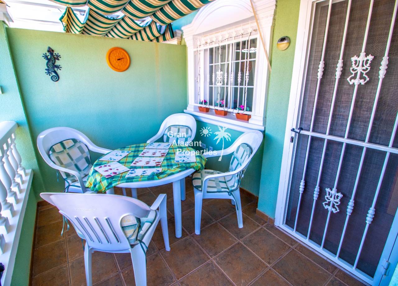 This property has an unbeatable Puerto Marino location in Lower Gran Alacant. The main commercial center Gran Alacant Centro Comercial with a Mercadona supermarket, loads of shops, bars and restaurants is just a few minutes walk away. There is also a recently renovated LIDL and a Consum close by.  A little further down the road, you will find the local church, dog park, several supermarkets, banks, dentists and much more. Nature lovers and bird watchers will love the Clot del Galvany natural park offering acres of unspoiled wetlands to explore as well as ruins of Civil War bunkers. The beautiful sandy beaches of Carabassi and Los Arenales are a 30 minute walk away or you can avail yourself of the readily available public transport which includes a circulator bus and tourist train. At the commercial center, you will also find bus service to Alicante and Santa Pola as well as a taxi stand.