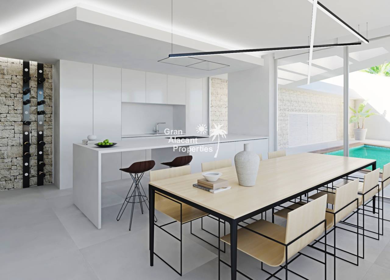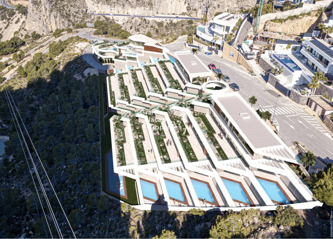This exclusive residential project redefines luxury and seaside living on the iconic coast of Altea. Comprising six private villas and eight elegant flats, it offers a unique experience thanks to its privileged location, just 400 metres from the sea and 350 metres from the exclusive Mascarat marina, from where you can enjoy breathtaking panoramic views of the Mediterranean and the port. The contemporary design of this residential complex blends harmoniously with the natural surroundings, using authentic and natural materials that create a perfect balance between indoor and outdoor spaces. The homes stand out for their spaciousness, luminosity and high quality finishes, designed to offer maximum comfort and exclusivity in a serene coastal setting.