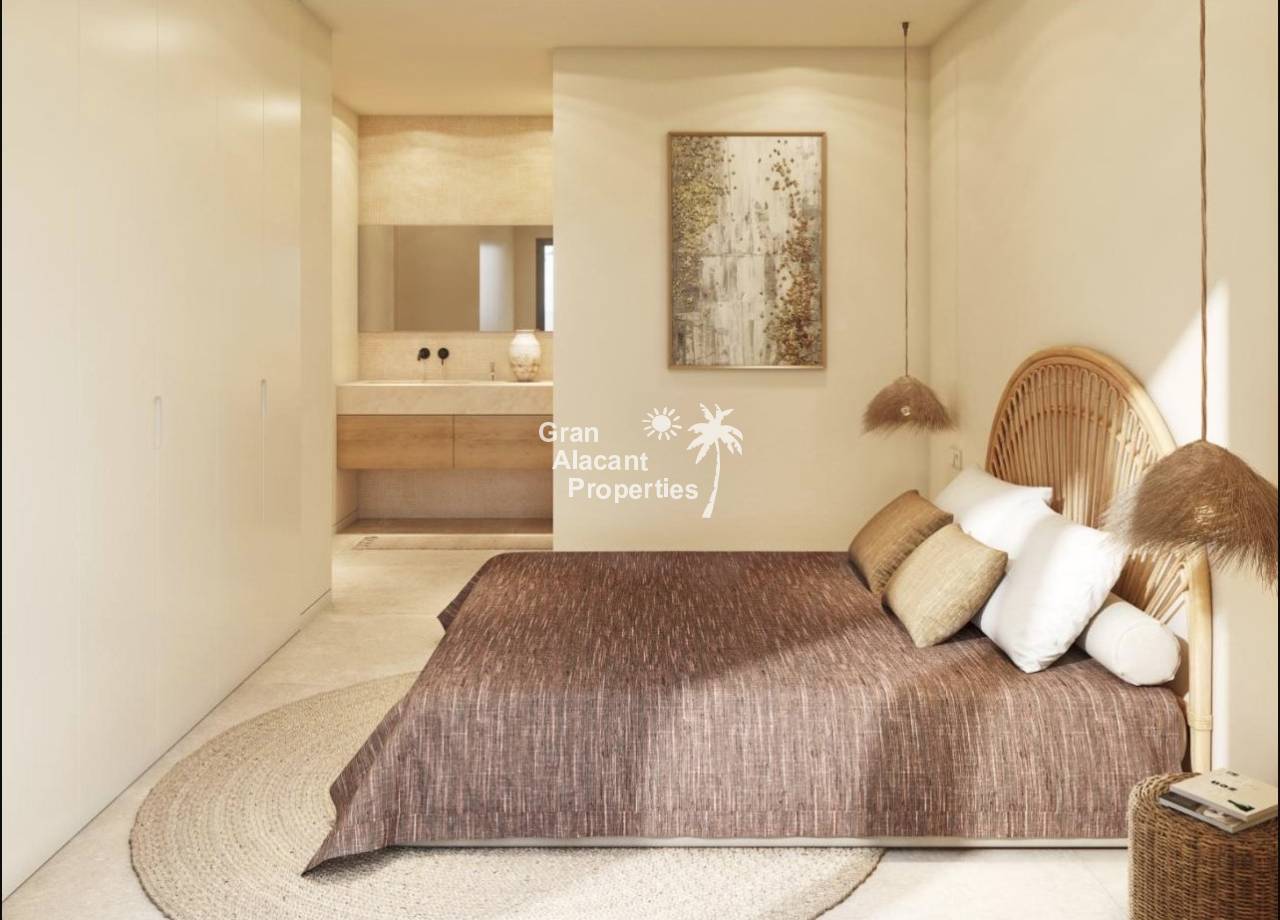 All villas have 3 bedrooms and between 2 and 4 bathrooms, depending on the type of villa. They are fully furnished with designer pieces selected to enhance the elegance of each room, without sacrificing functionality. The interior layout is spacious, with an open-plan kitchen, bright living/dining room and high-end finishes. The master bedroom has a dressing room and en-suite bathroom, and the interior spaces connect fluidly with the exterior, favouring the entry of natural light and unobstructed views. The homes also include a guest toilet and details such as integrated air conditioning and high-efficiency carpentry.