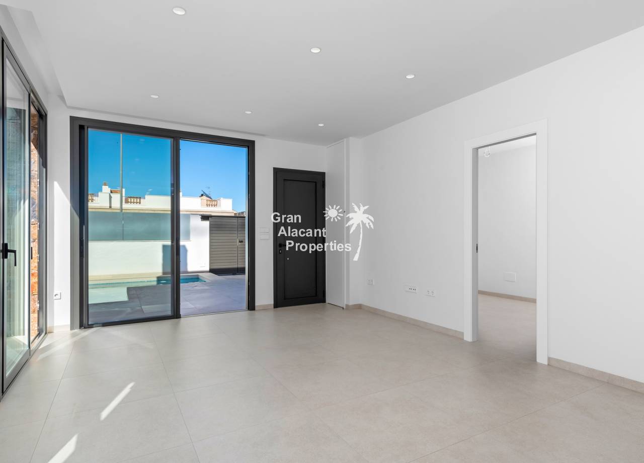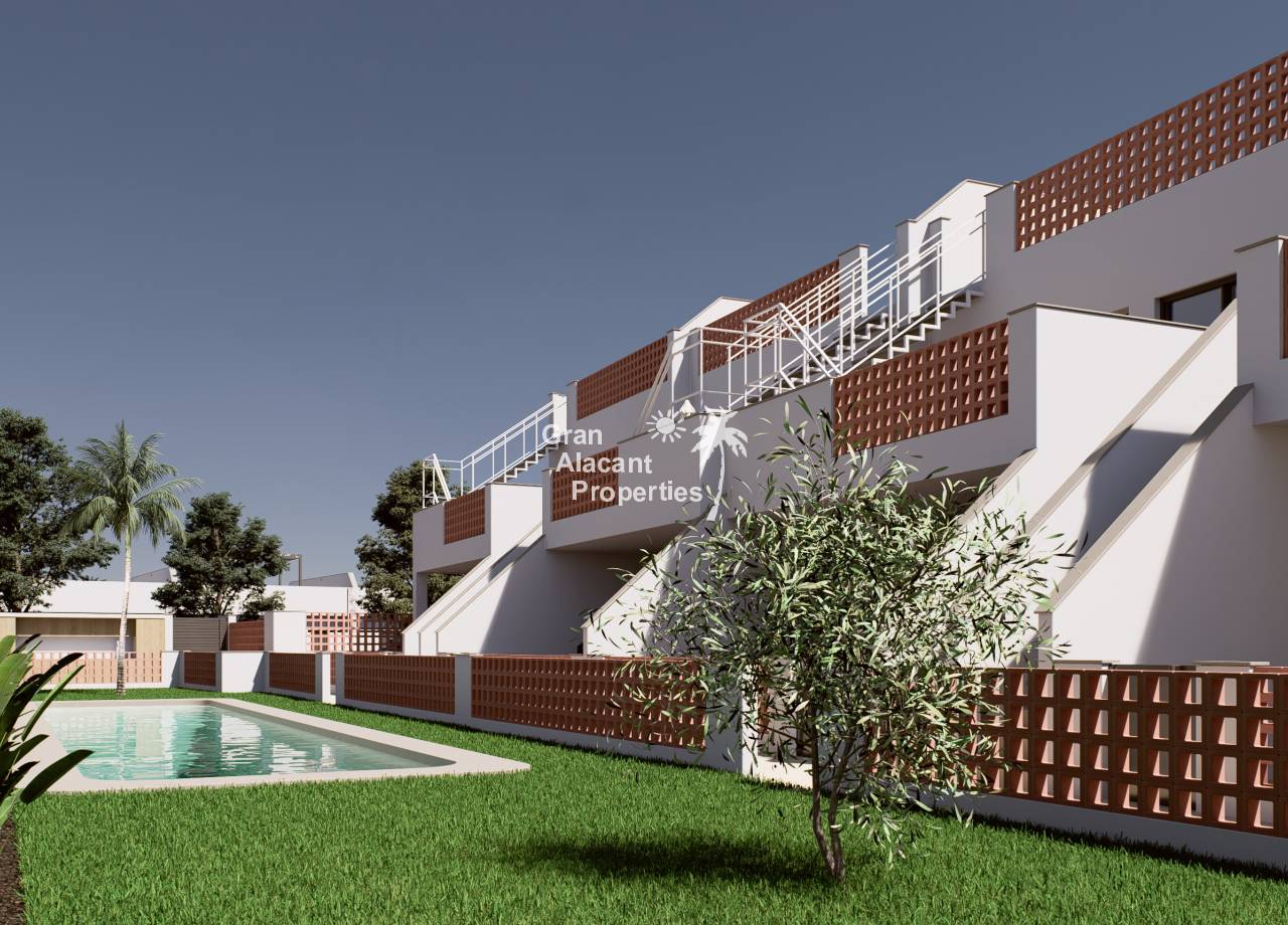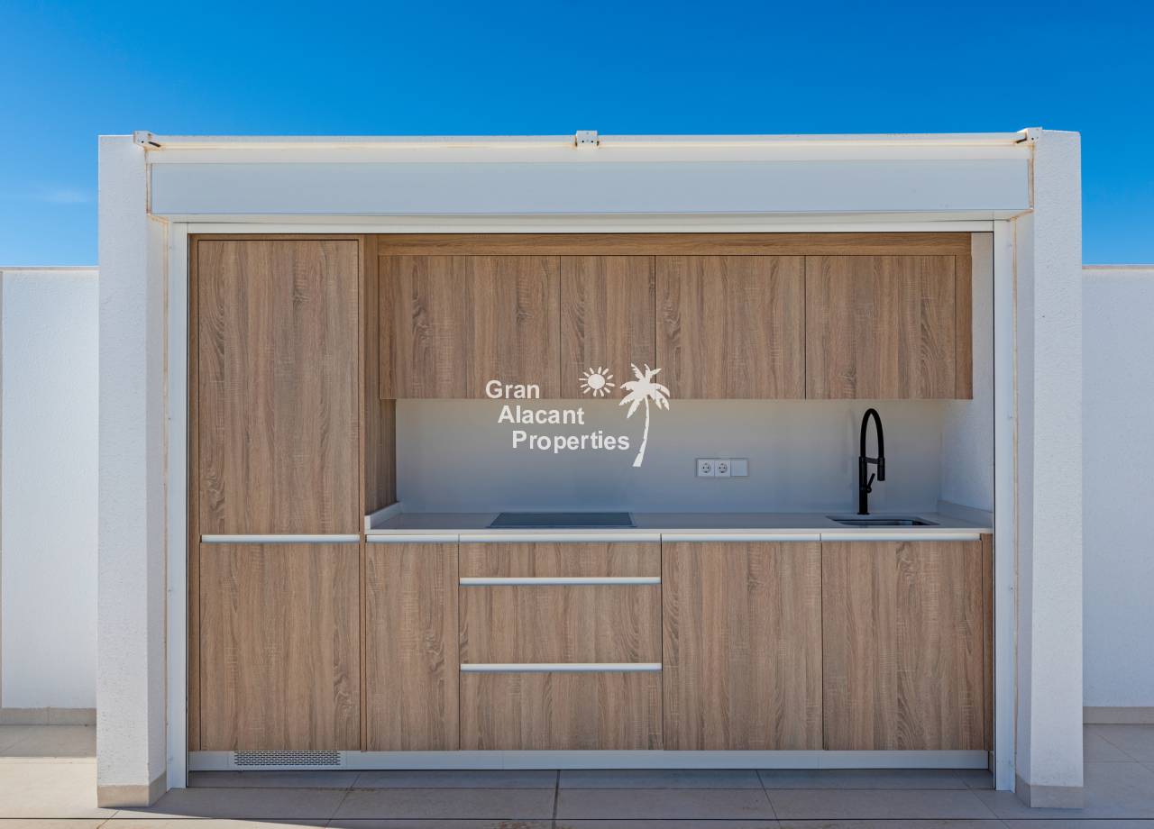 The exteriors of these properties are designed to maximize enjoyment of the Mediterranean climate. Each bungalow features a private garden, perfect for creating a personal green space or enjoying outdoor moments. The spacious terraces offer an ideal place to relax or share with friends and family, while the solarium provides additional space for sunbathing or enjoying the views. The community also features common garden areas, adding a touch of nature and freshness to the environment.