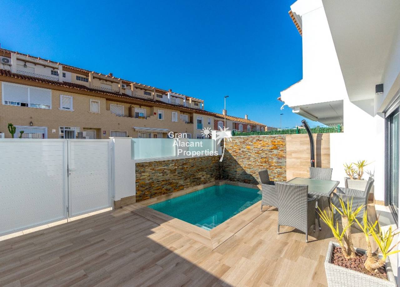 The exteriors of these townhouses are designed to maximize enjoyment of the Mediterranean climate. Each property features a private garden, perfect for creating a personal oasis of relaxation or for enjoying outdoor activities with the family. The terrace is another standout space, ideal for outdoor dining or simply enjoying the views and surroundings. Additionally, each townhouse includes a solarium, providing additional space for sunbathing in privacy. The inclusion of a private pool in each home adds a touch of luxury, allowing for refreshing dips on the hottest days without leaving home.